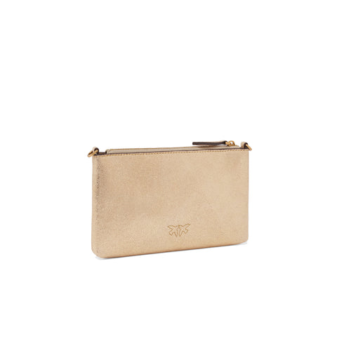 • Borsa a mano Pinko Mini Flat Bag in pelle scamosciata glitterata