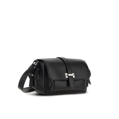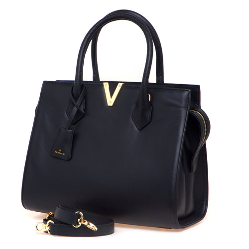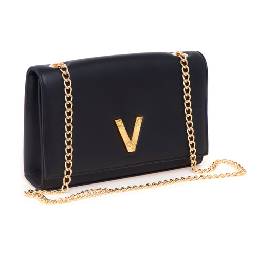 • Tracolla Via Roma 15 in pelle con patta e "V" zigrinata gold