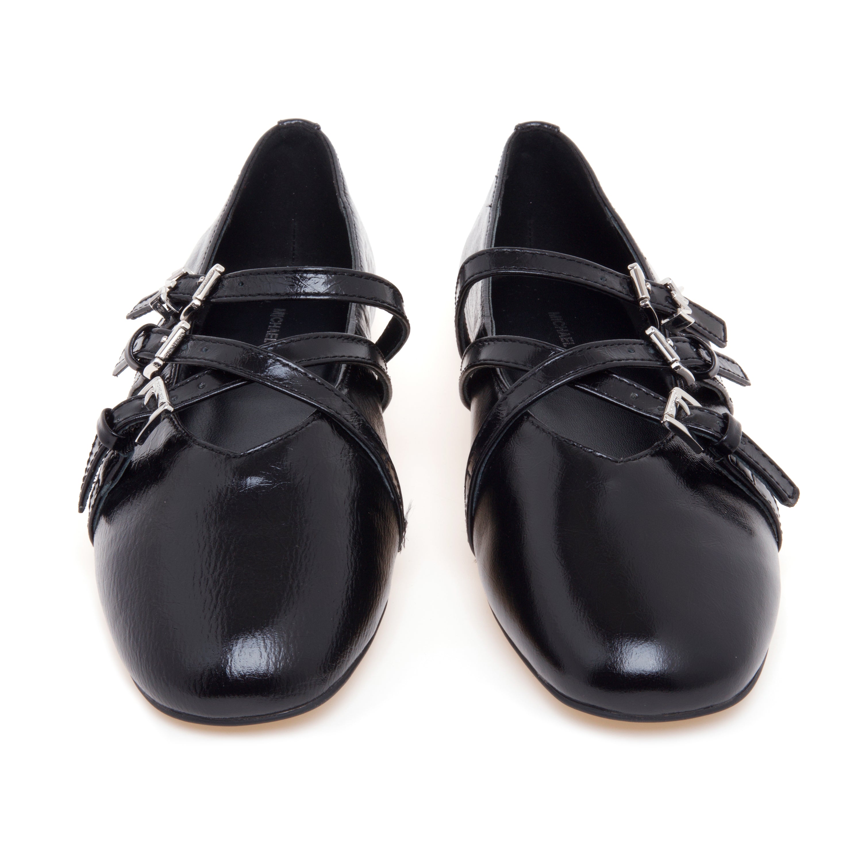 Michael Kors Indie Flex reinterpreta la ballerina con un’allure contemporanea: la tomaia in pelle è valorizzata dallo scollo a V che affina la linea del piede, mentre i cinturini incrociati sul collo aggiungono ritmo al design e favoriscono una calzata stabile.