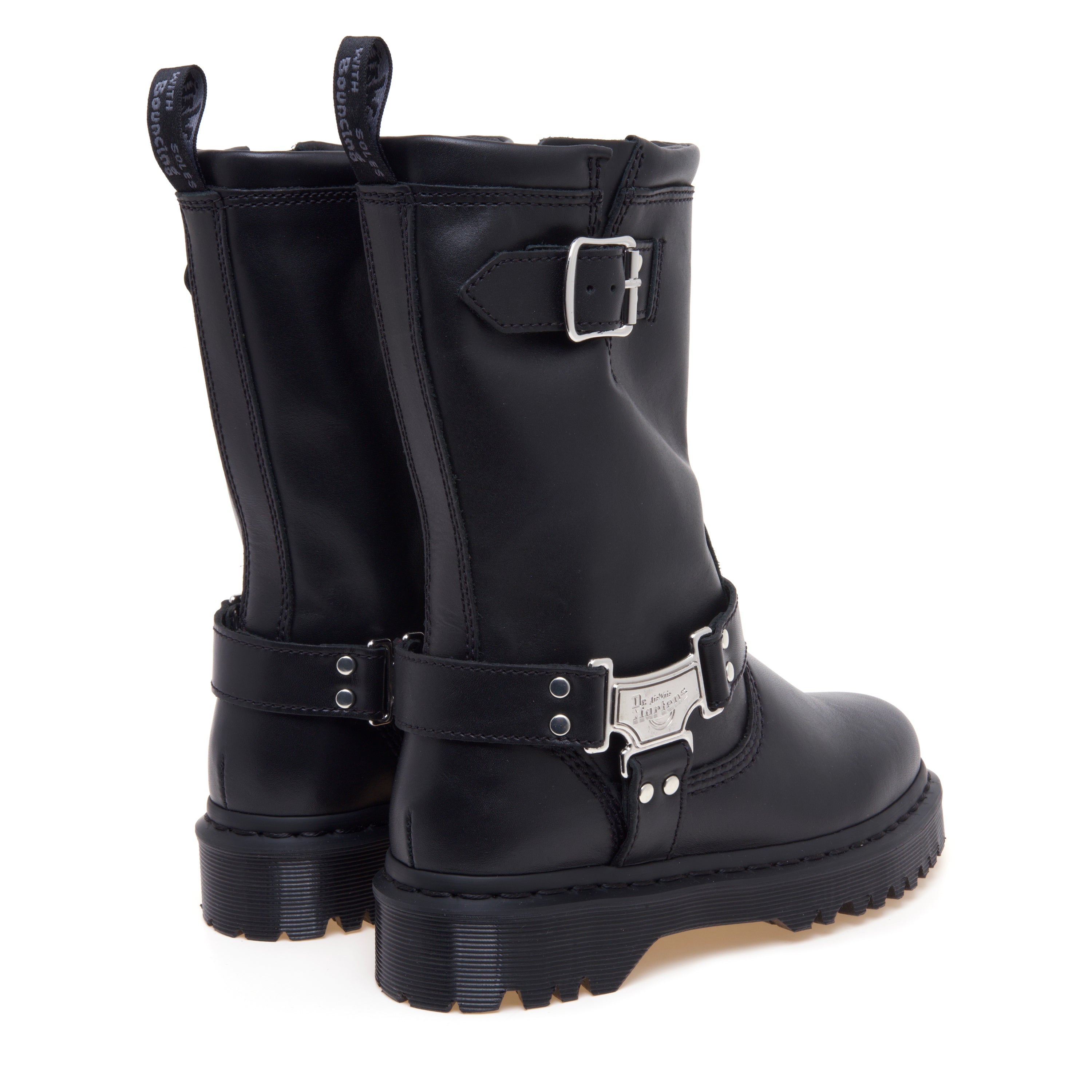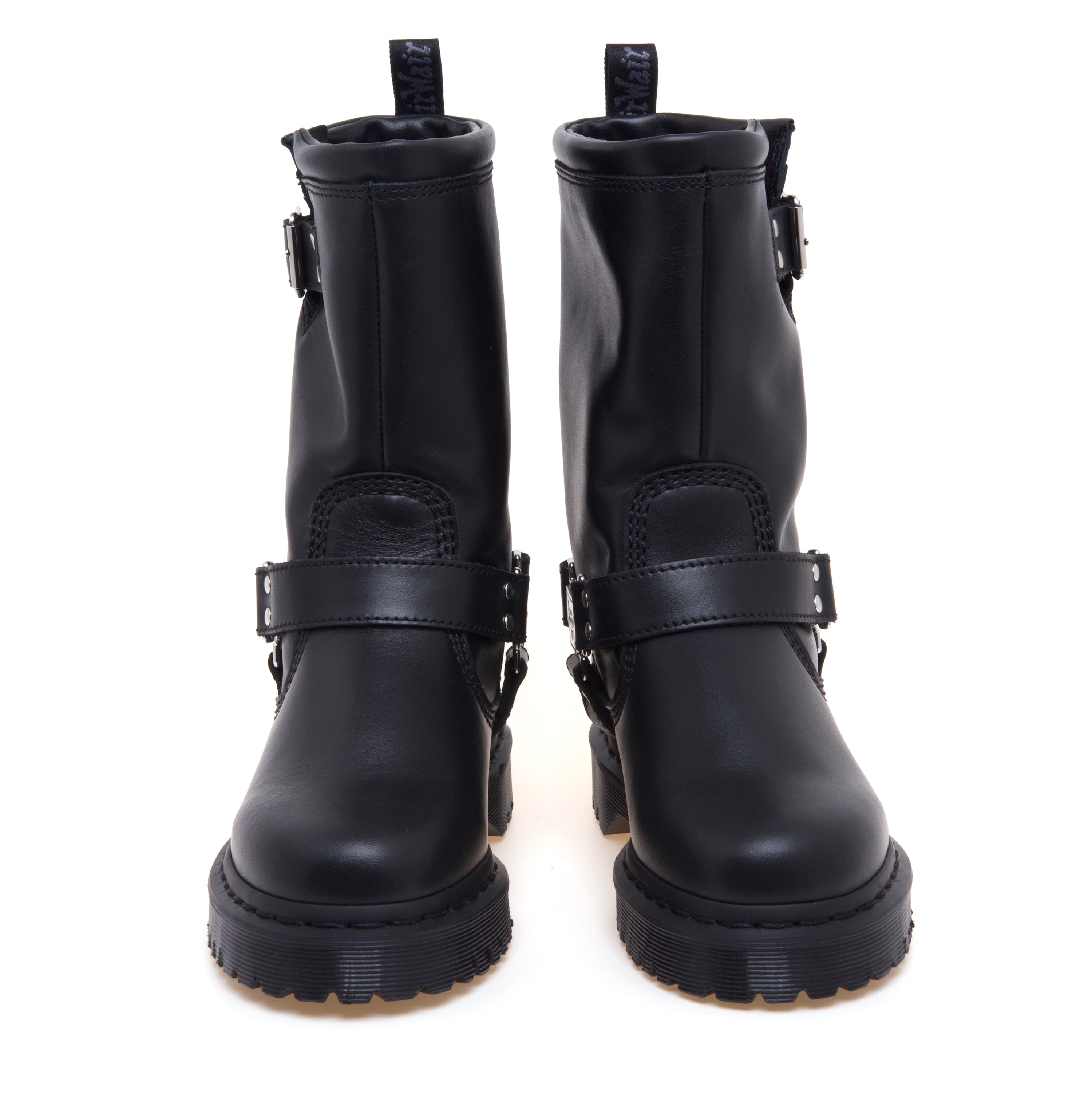 Dr Martens con il modello Anistone Hi in pelle liscia nera reinterpreta il biker boot con un’estetica pulita e contemporanea.