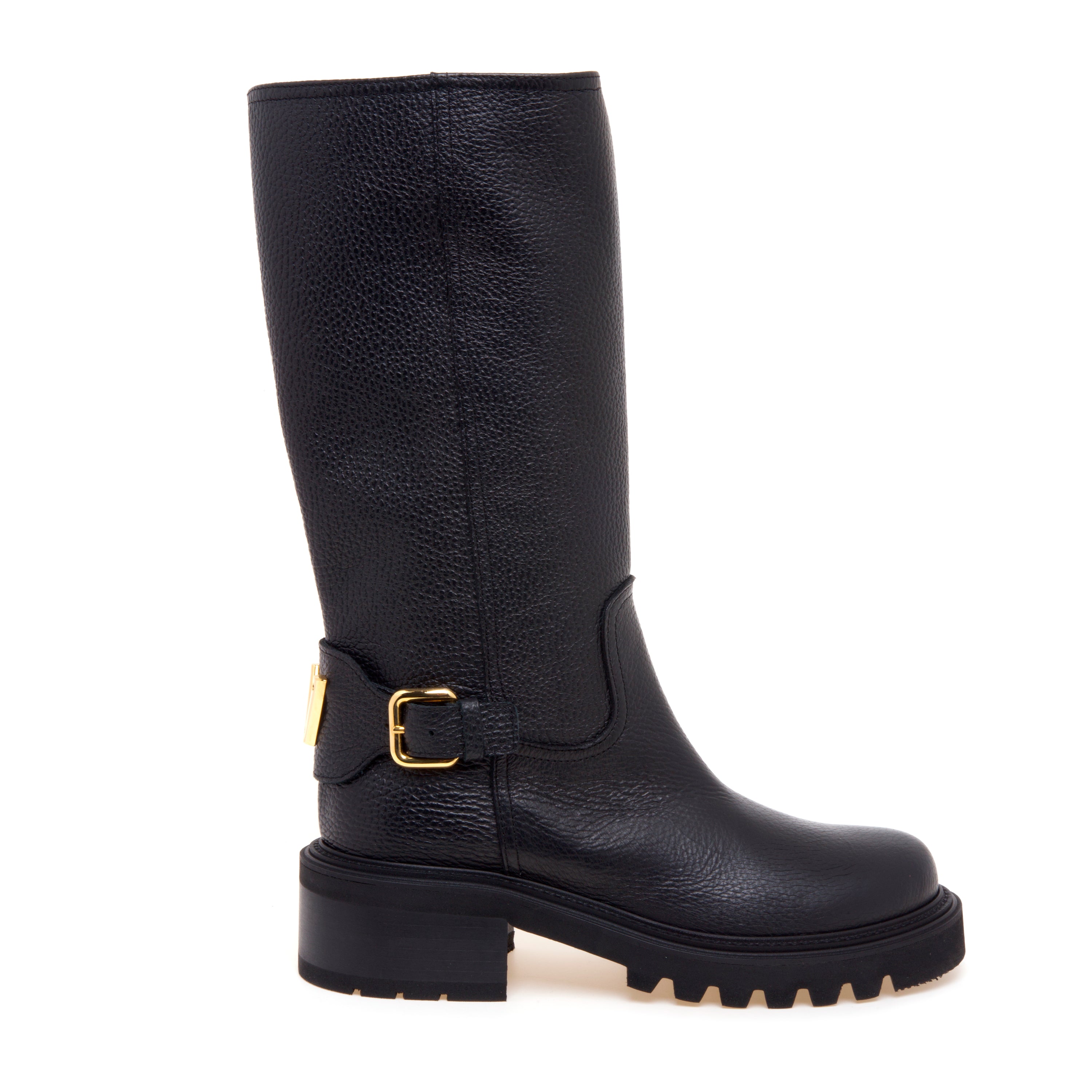 via roma 15 Biker Via Roma 15 in pelle martellata con gambale 3/4 e fibbia con "V"