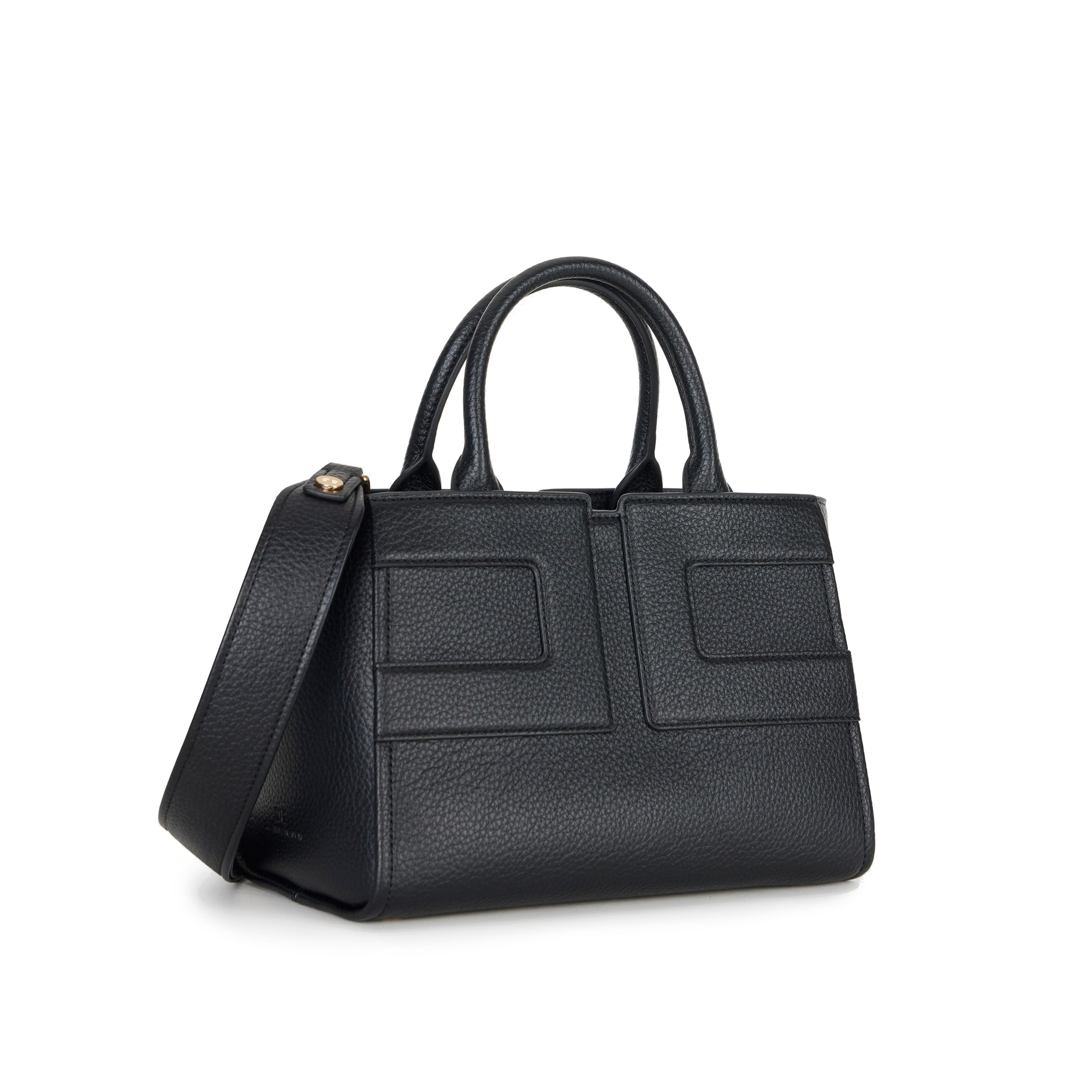 Realizzata in materiale effetto pelle grain con una linea strutturata e profili curati, si distingue per il maxi logo tono su tono che firma il frontale in modo discreto ma deciso.