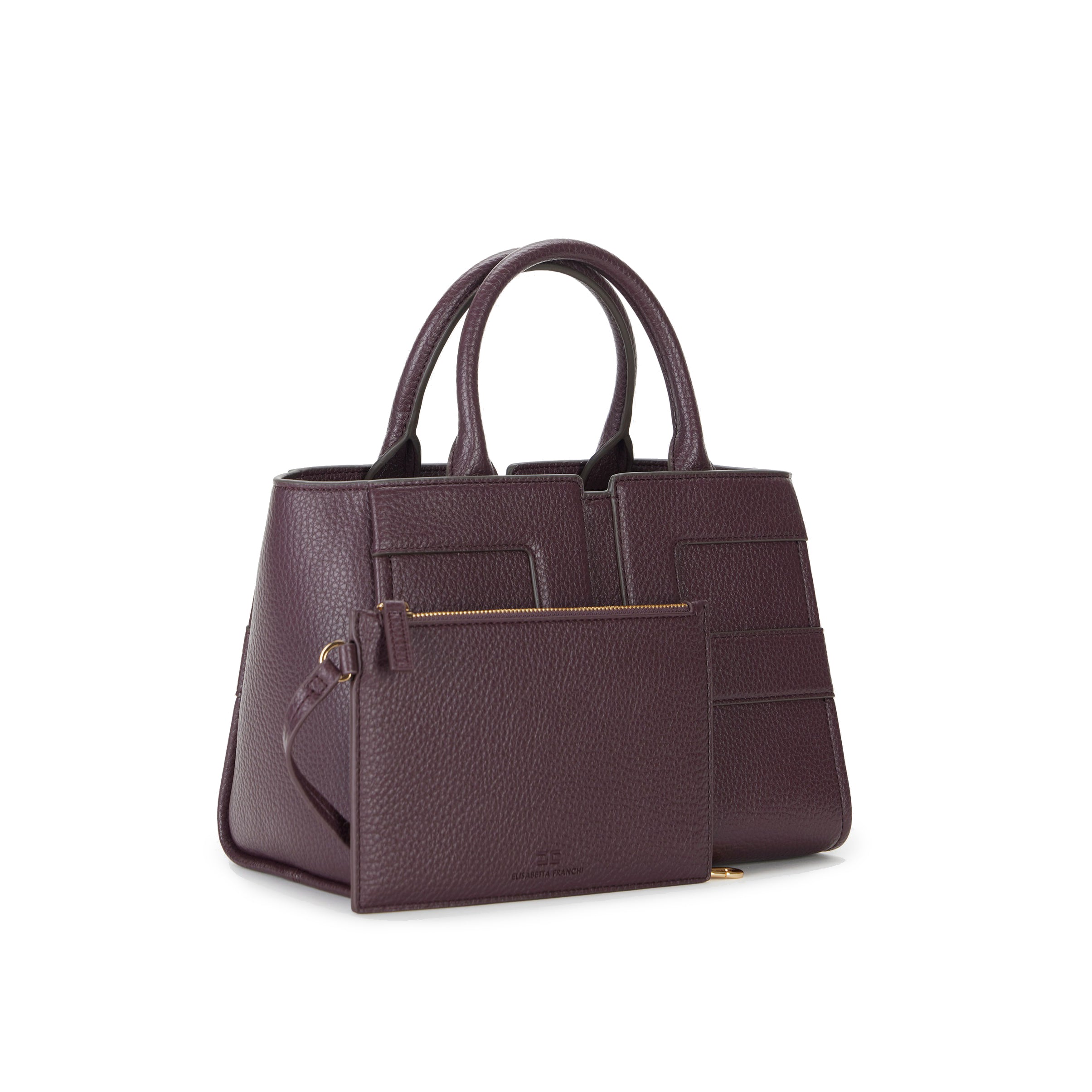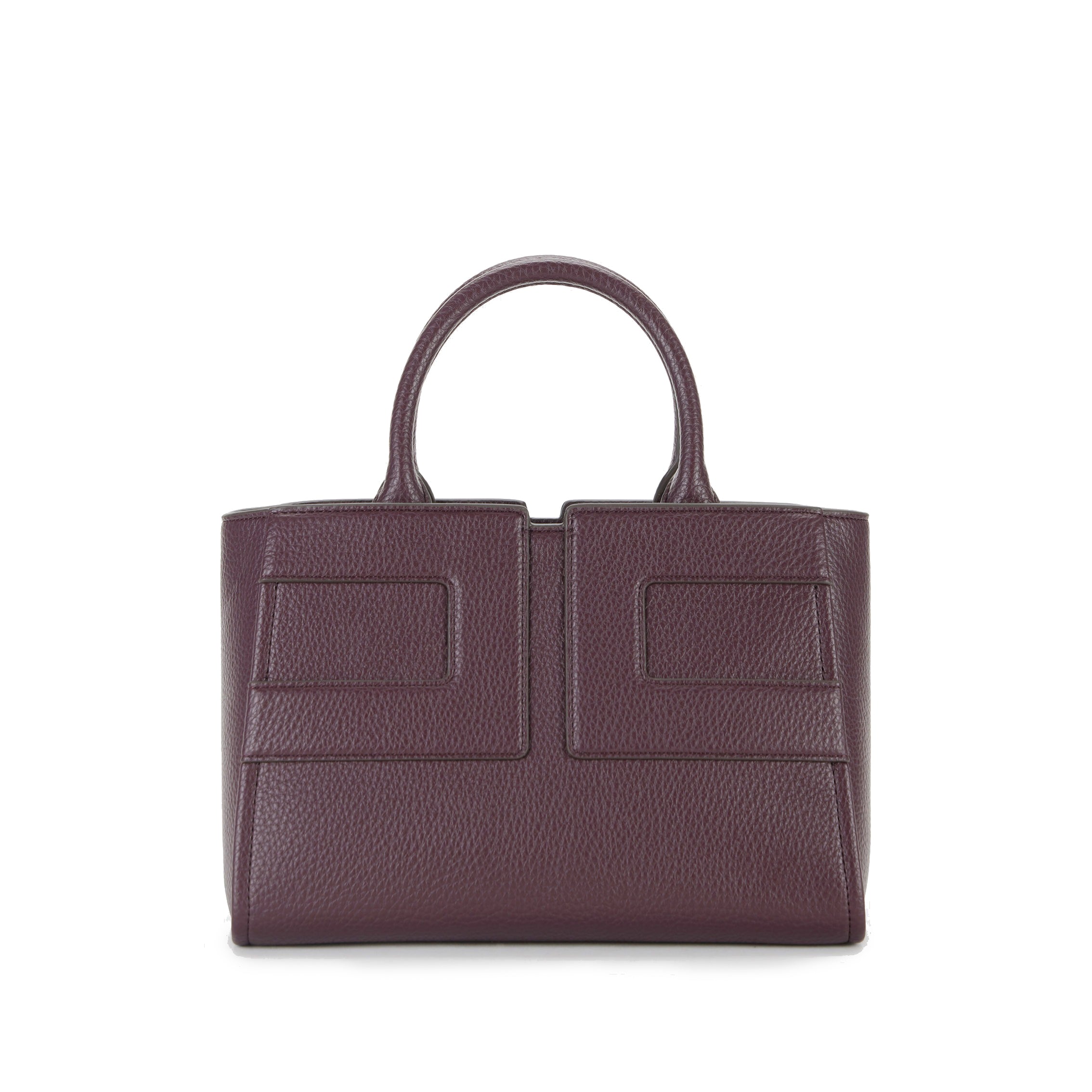 Realizzata in materiale effetto pelle grain con una linea strutturata e profili curati, si distingue per il maxi logo tono su tono che firma il frontale in modo discreto ma deciso.