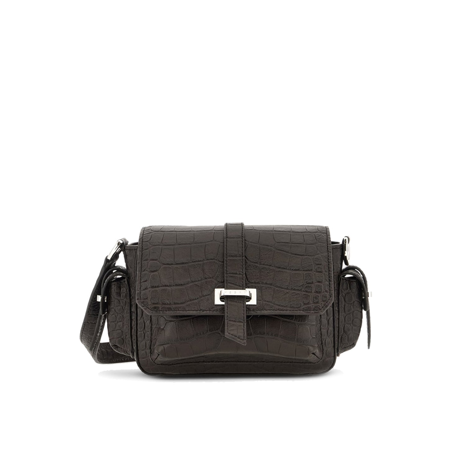 La Borsa Flap Hogan da donna si presenta in una versione più audace e sofisticata grazie alla pelle con stampa coccodrillo, che conferisce texture, profondità e un tocco distintivo al design. Un accessorio compatto ma capiente, pensato per accompagnare la quotidianità con carattere e raffinatezza.