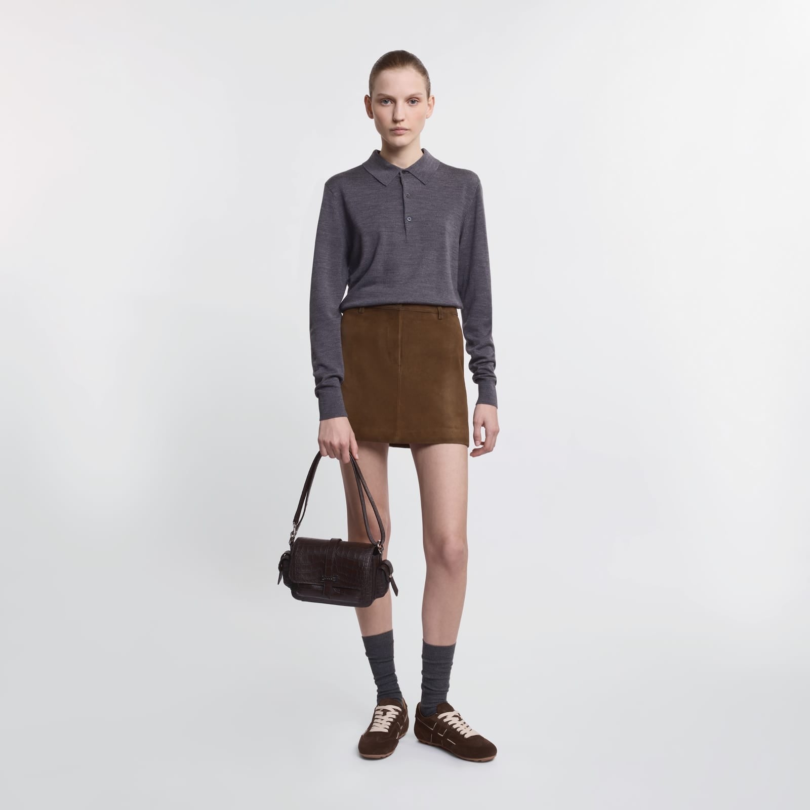 I dettagli funzionali incontrano l’estetica ricercata: la pattina con listino e passante in metallo personalizzato definisce con eleganza sia il vano centrale sia le due tasche laterali, mentre una tasca frontale seminascosta aggiunge praticità e discrezione per gli oggetti di uso immediato.