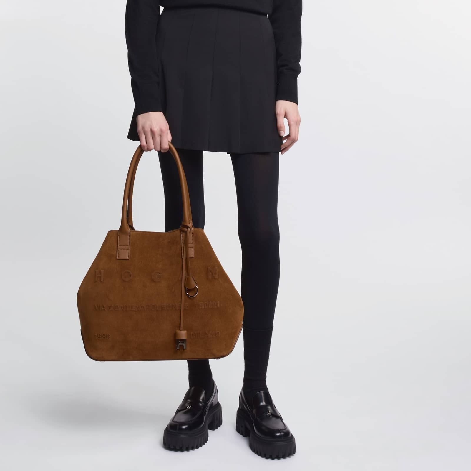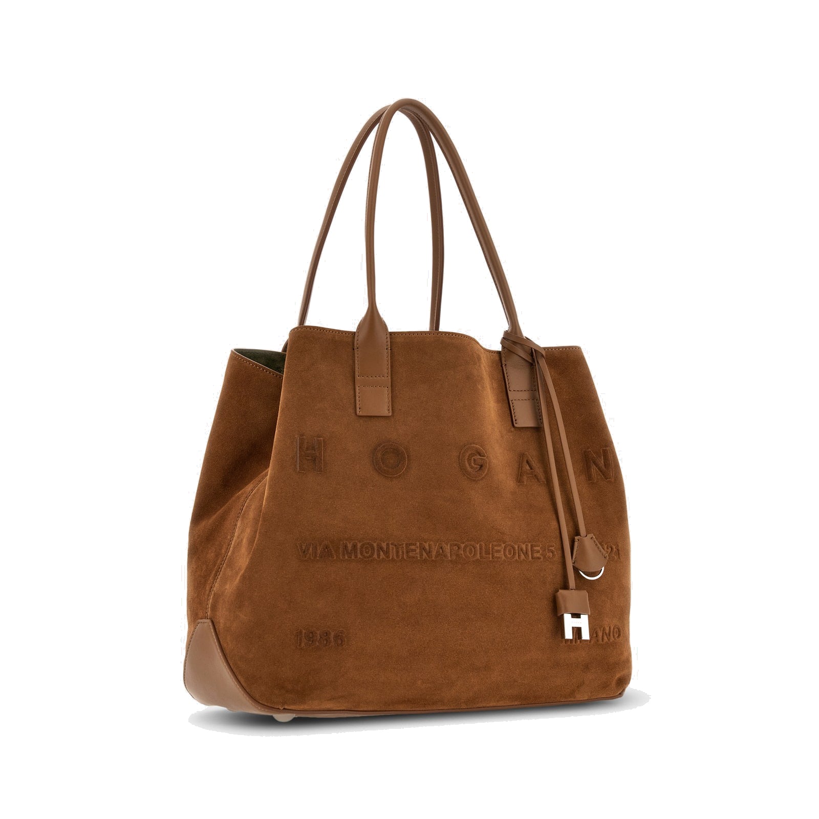 Borsa shopping Hogan Script Media in camoscio con indirizzo rilievo