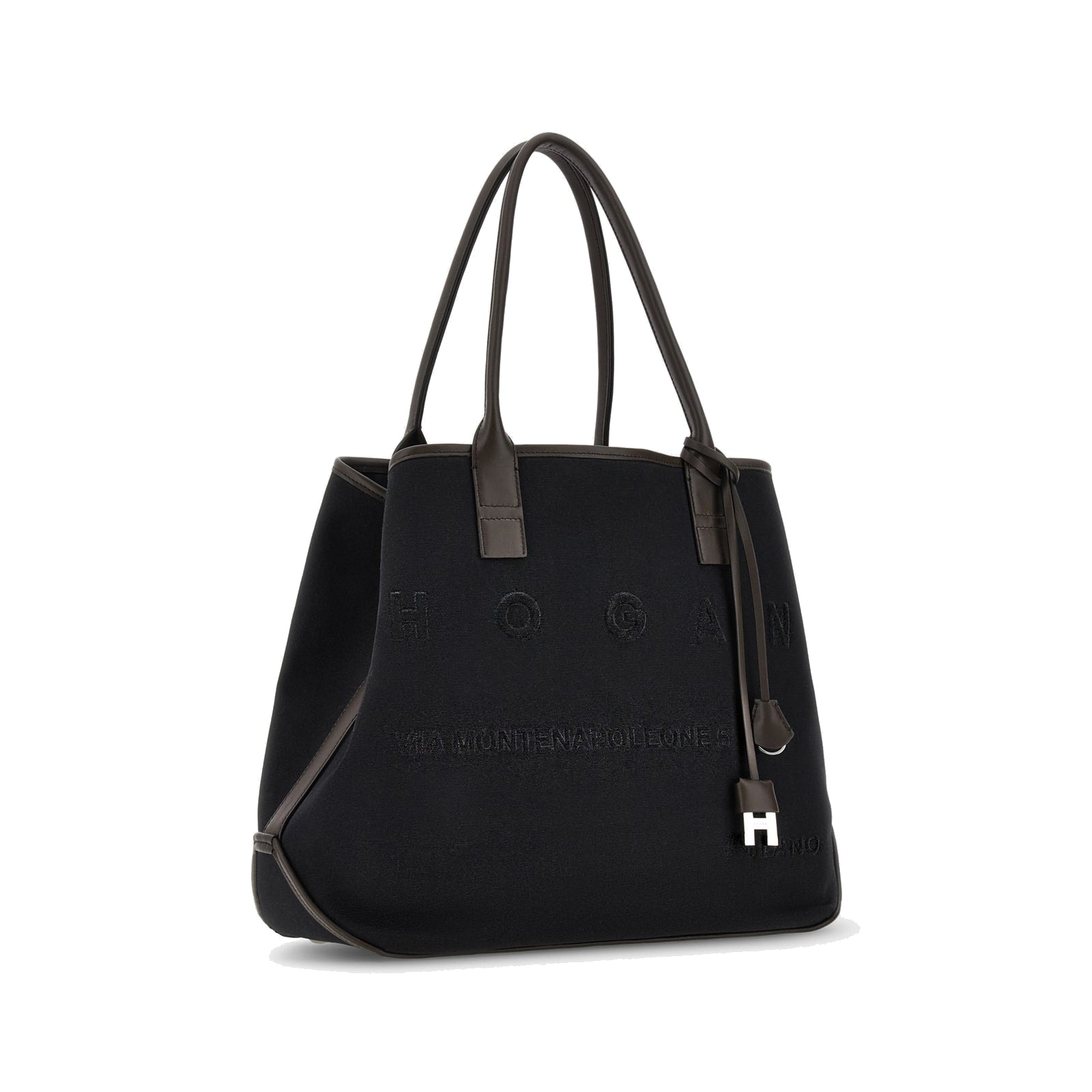# Logo Hogan in rilievo con indirizzo Monte Napoleone.