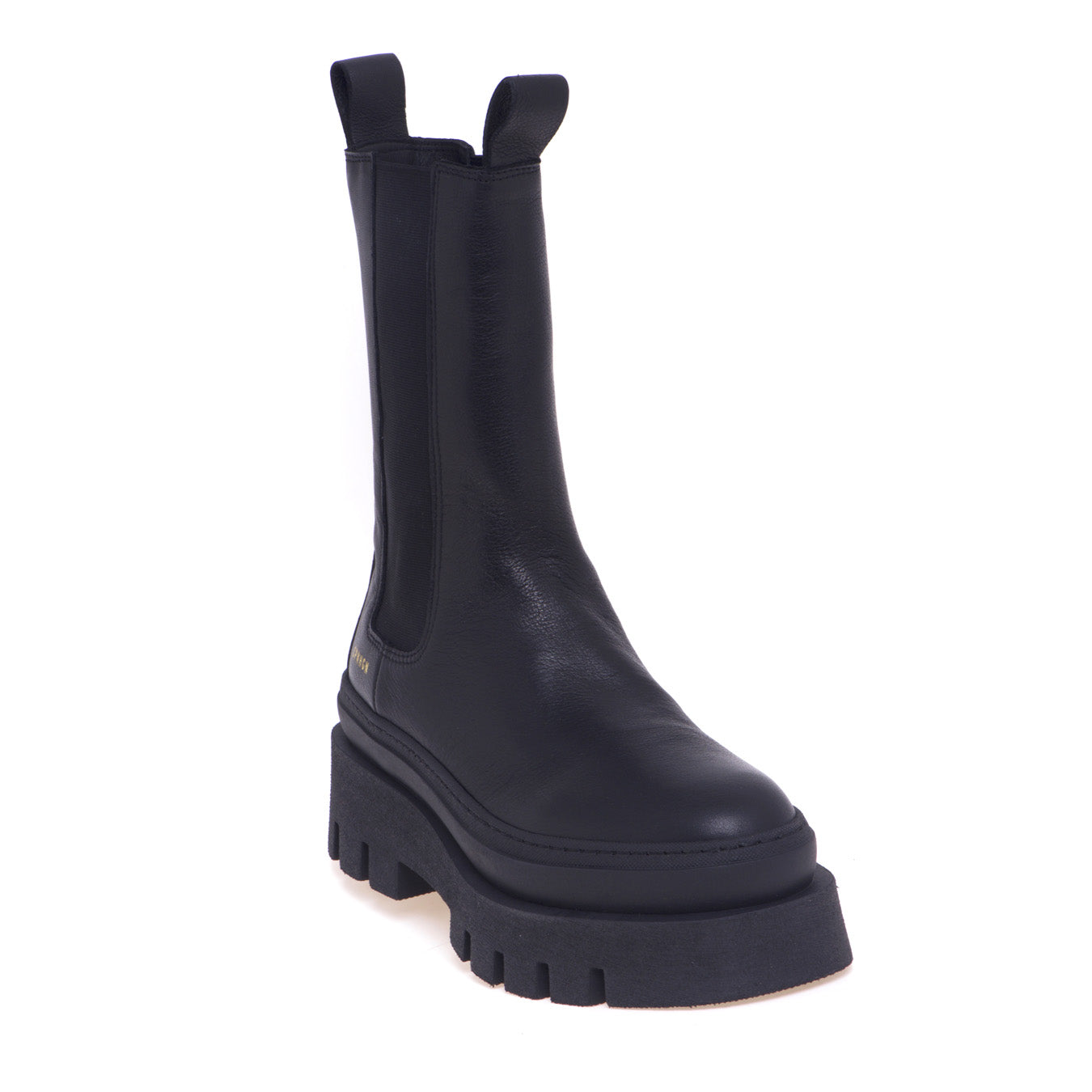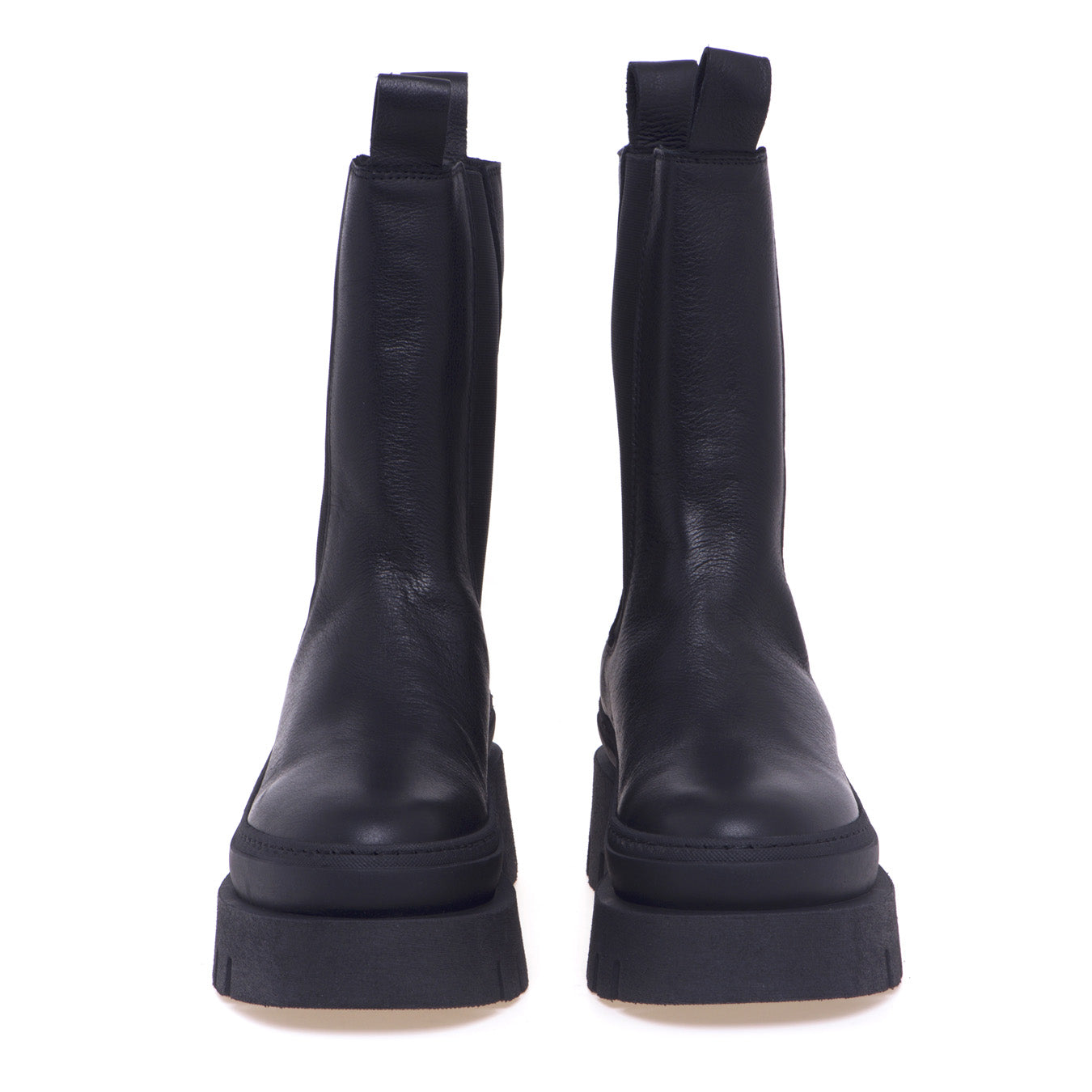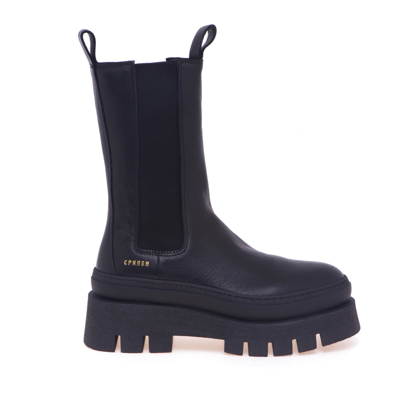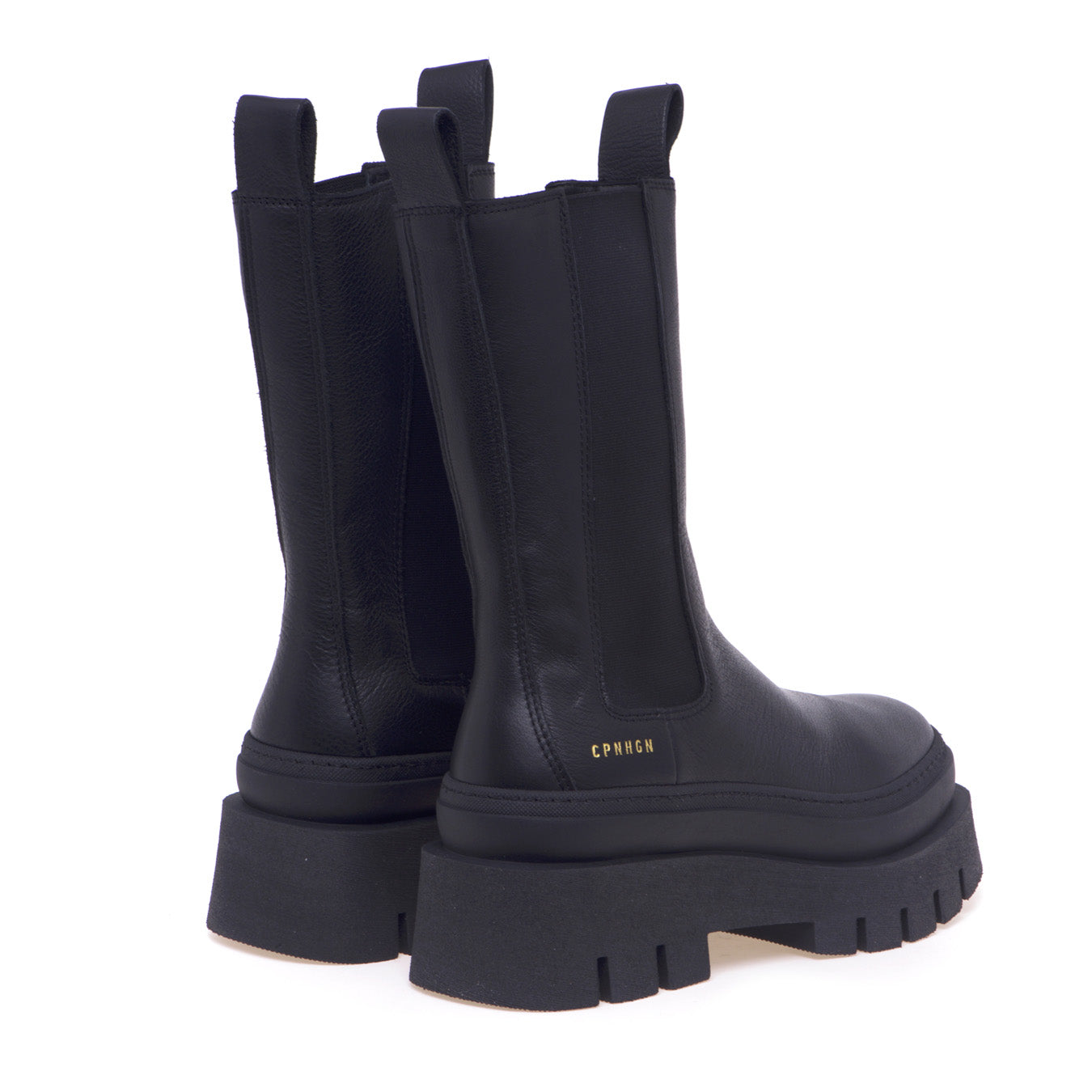 Copenhagen reinterpreta il Chelsea boot in chiave urbana e contemporanea: la tomaia in pelle liscia dal design minimale incontra un maxiplatform in gomma extralight che alleggerisce il passo pur mantenendo volumi decisi.