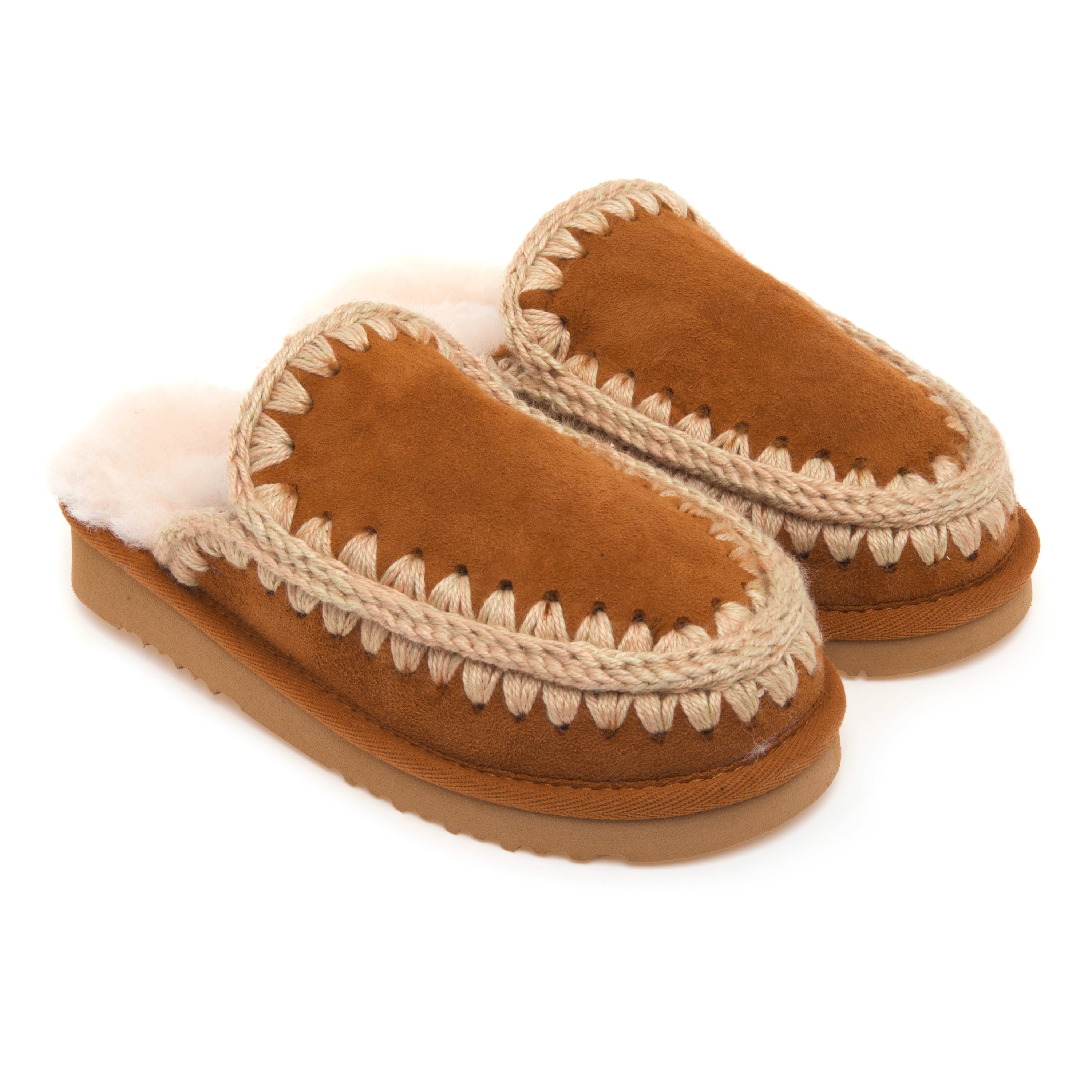 La slipper “Eskimo” firmata MOU è un modello iconico che combina artigianalità e comfort naturale.