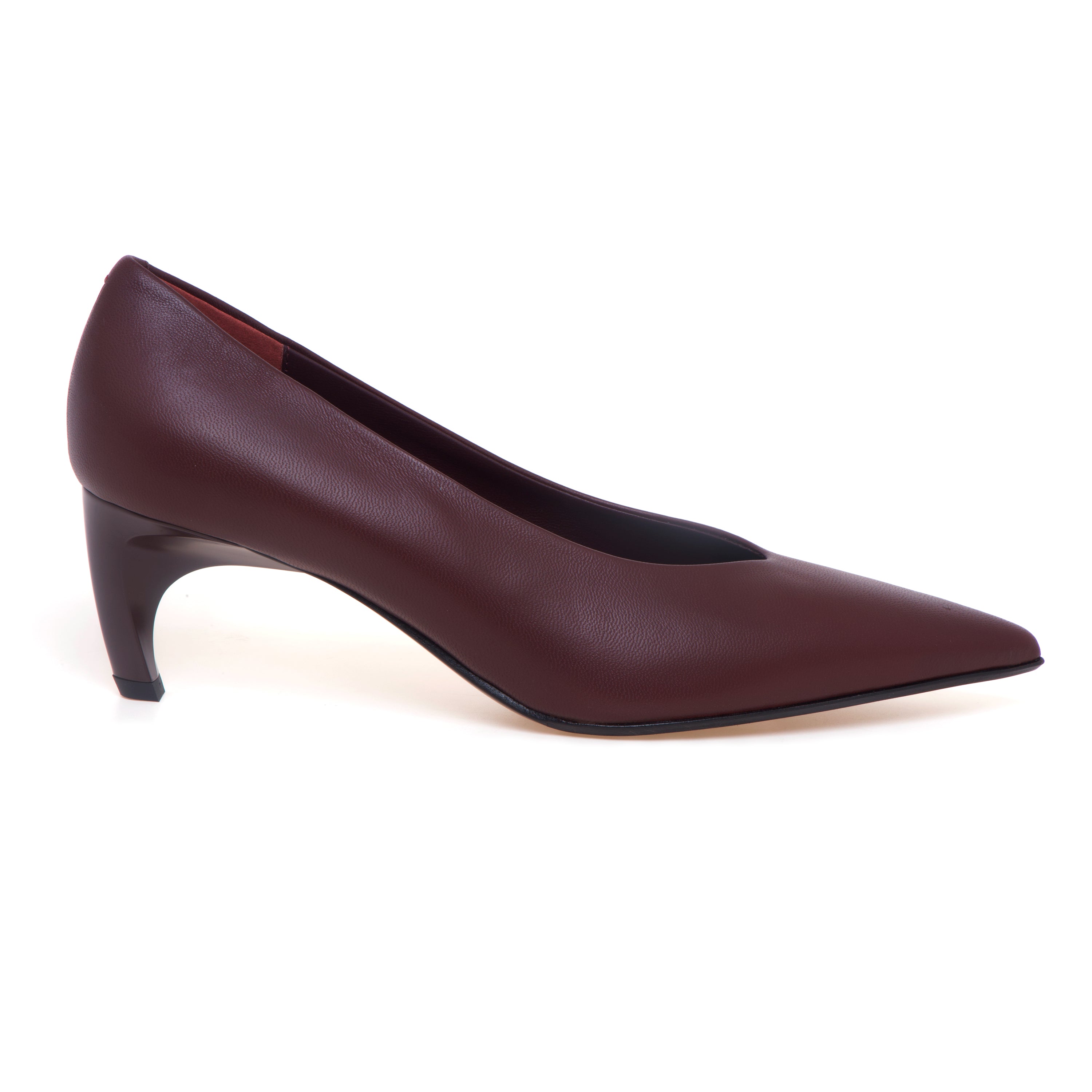 Decolletè Sergio Levantesi in vitello dal look ricercato caratterizzato dal nuovo tacco a virgola che insieme allo scollo a "v" gli dona una personalità e uno stile unici.