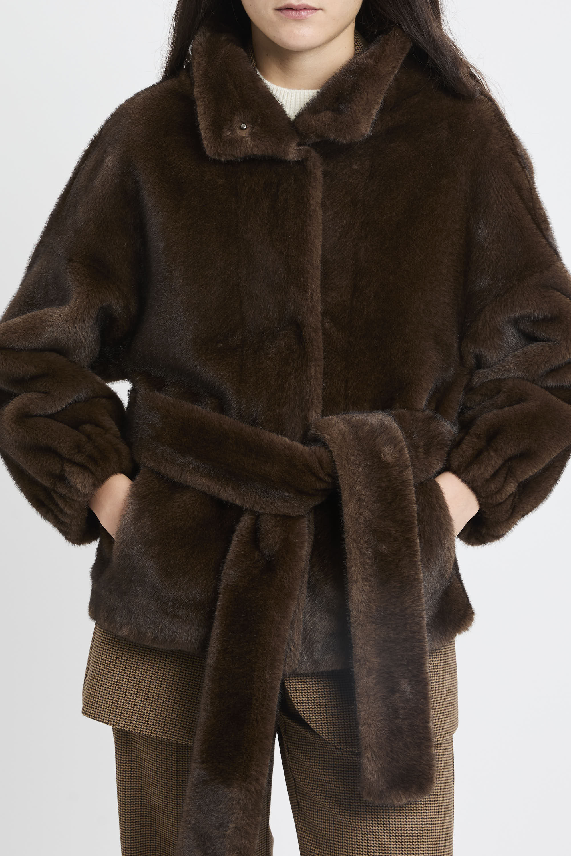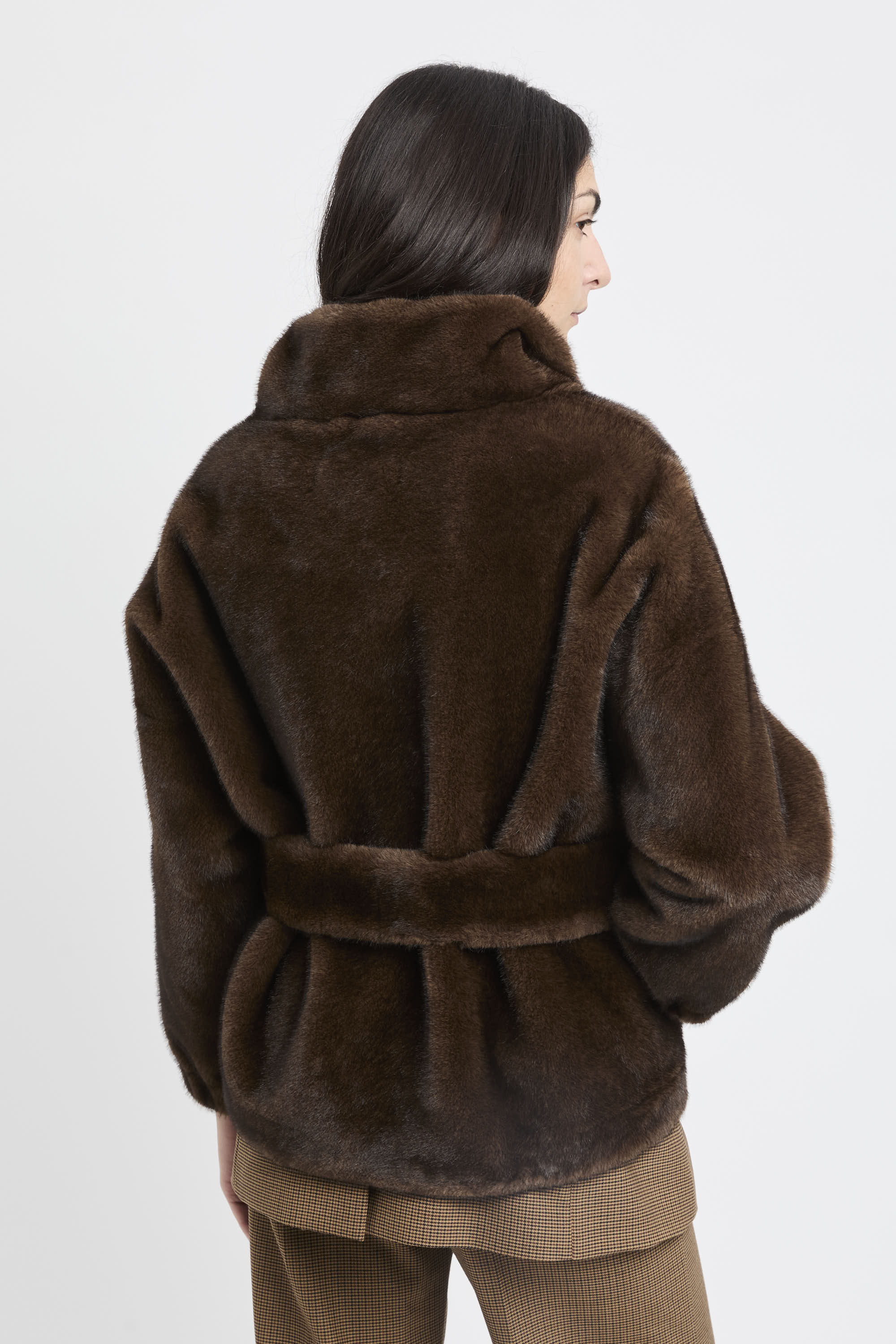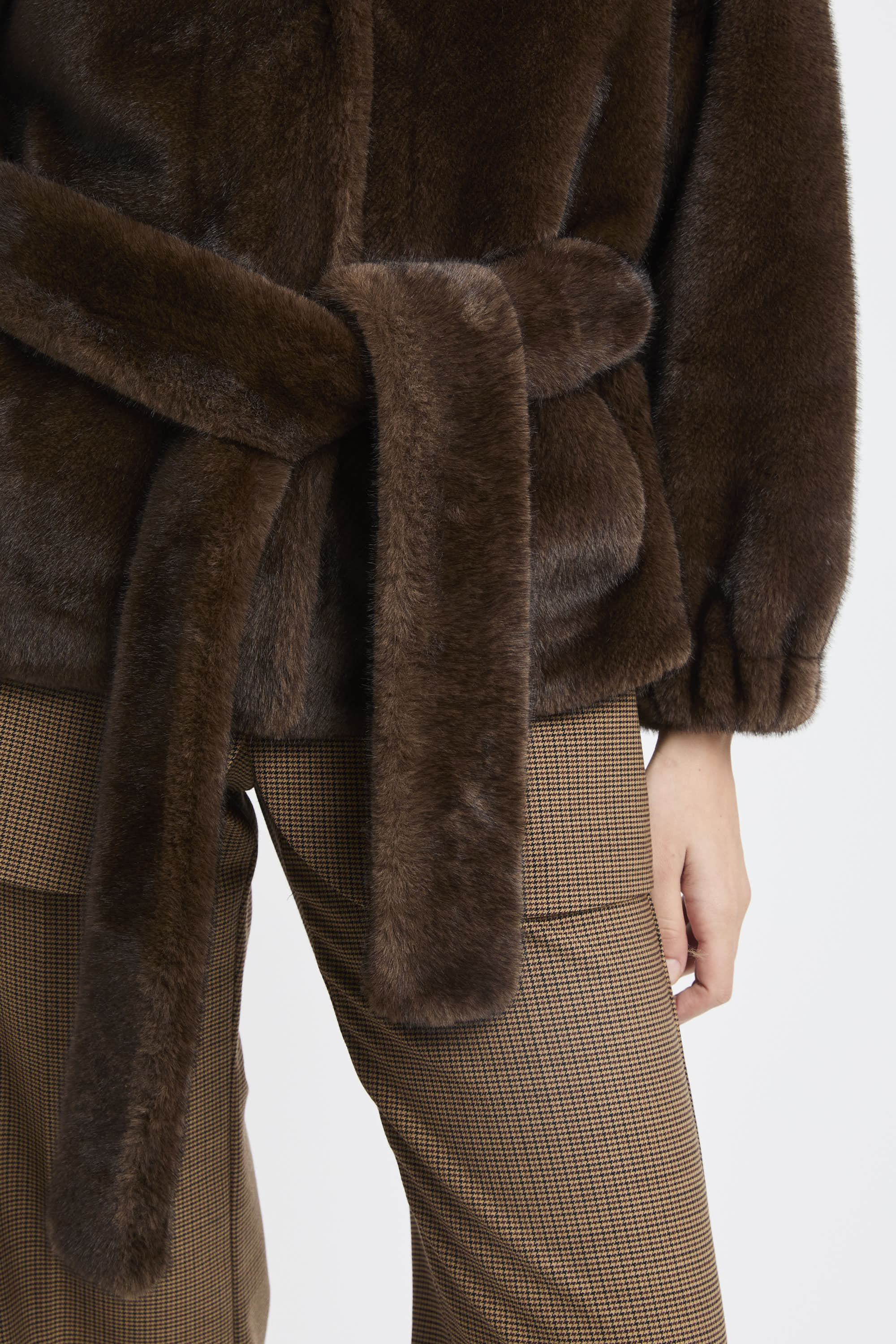 # Ecopelliccia corta con cintura removibile.
