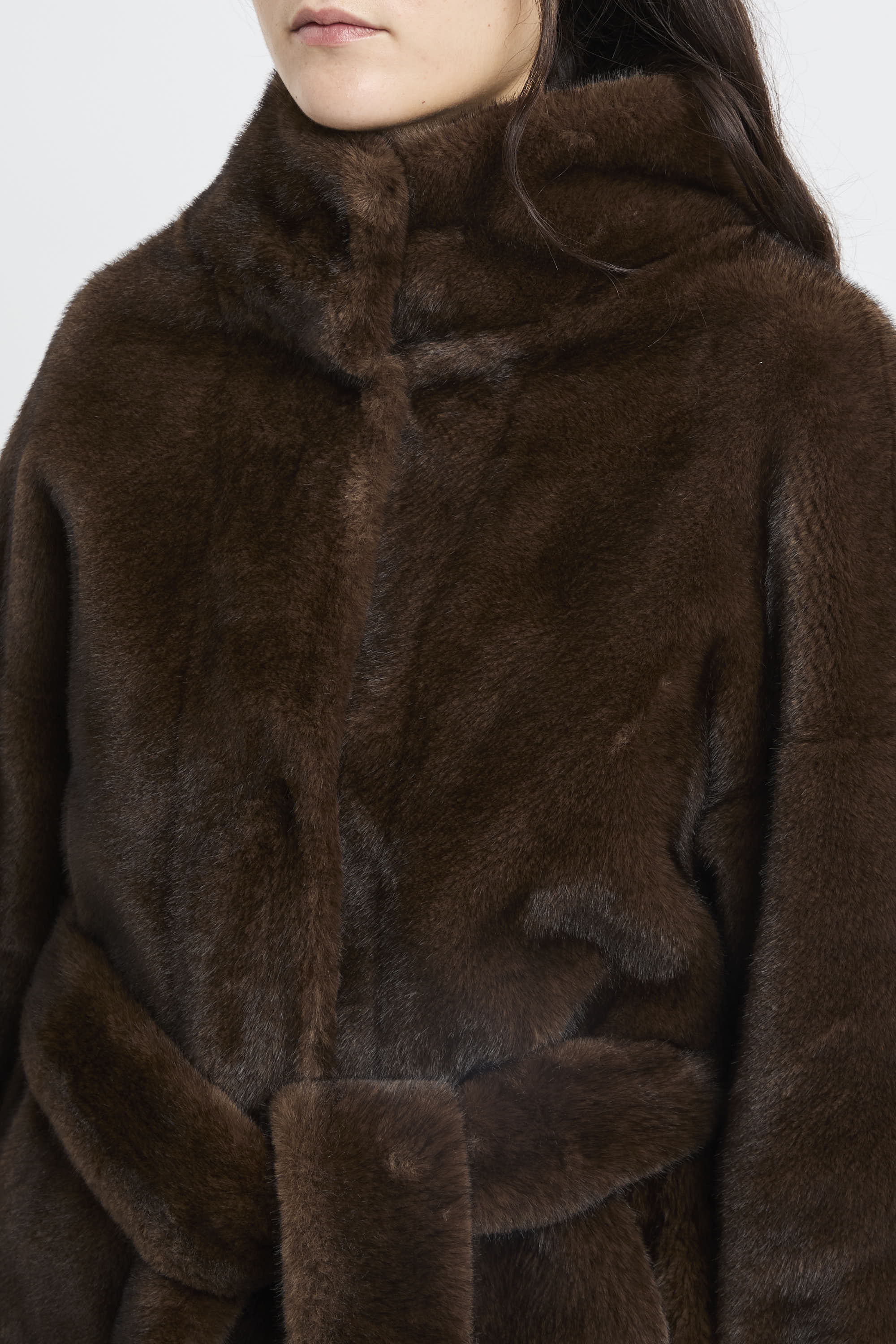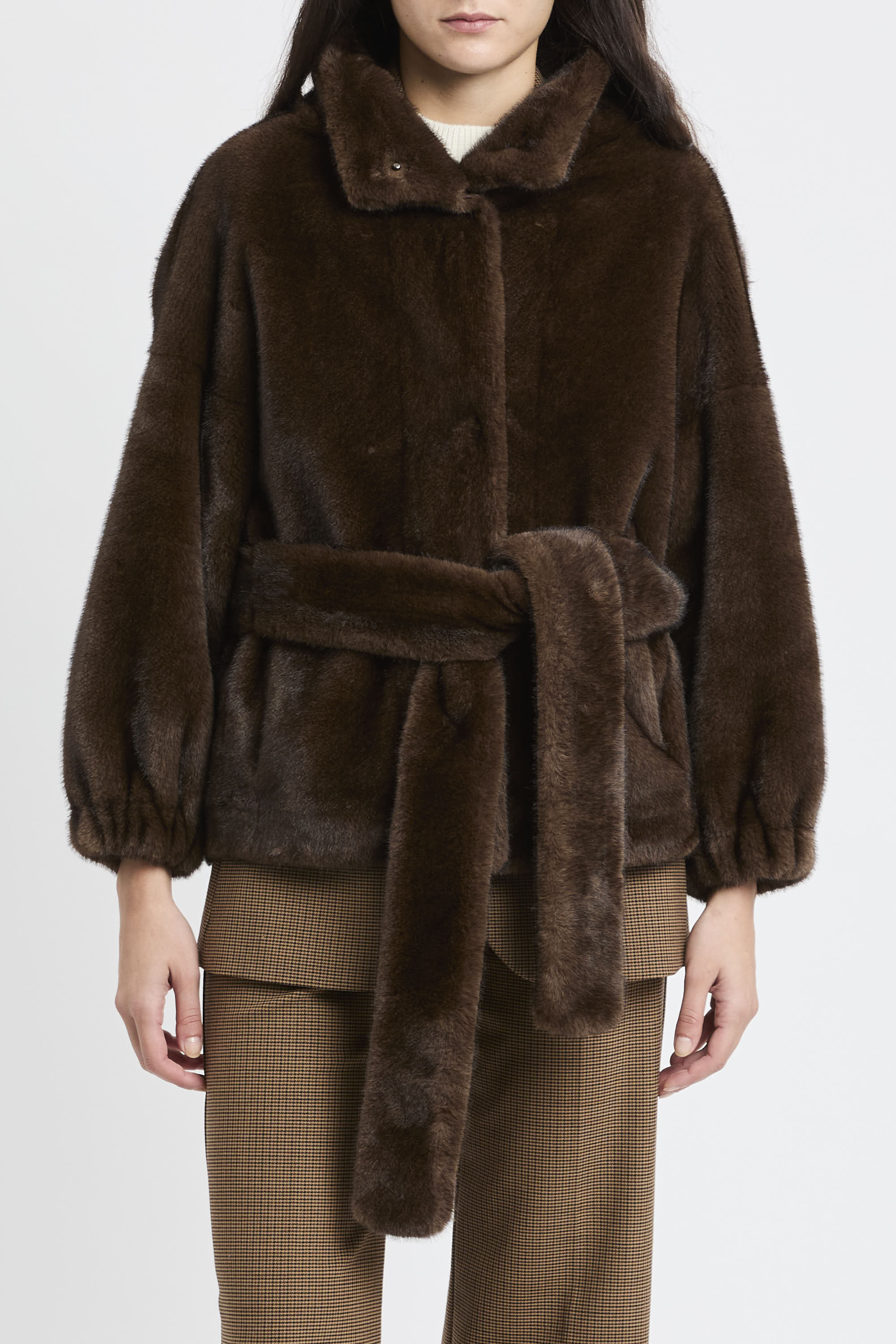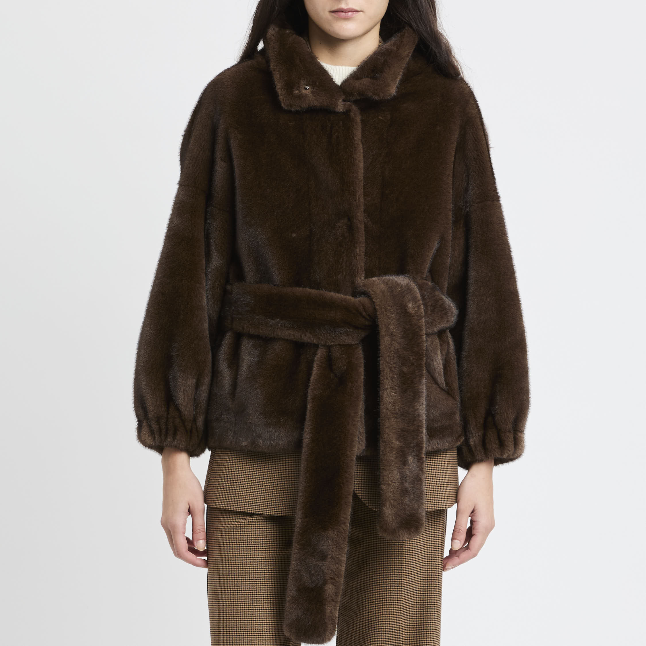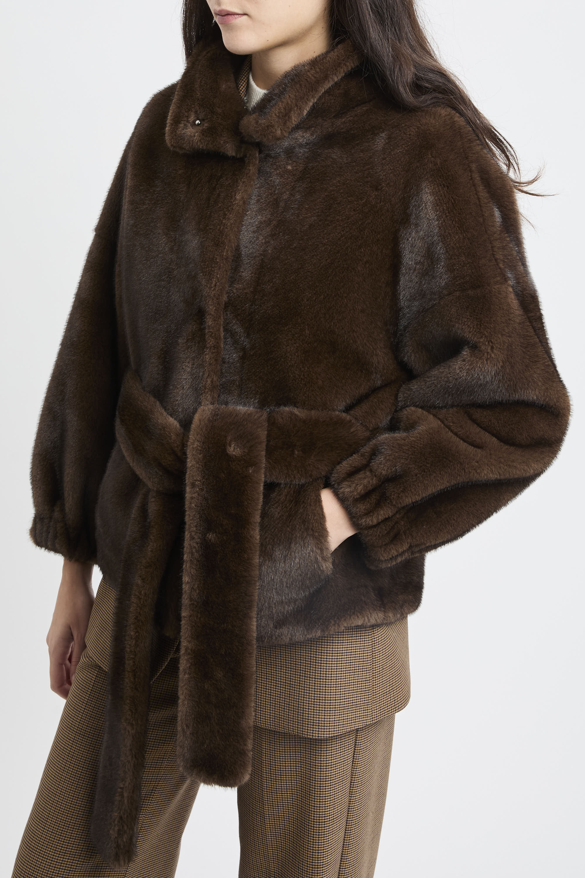 # Ecopelliccia corta con cintura removibile.