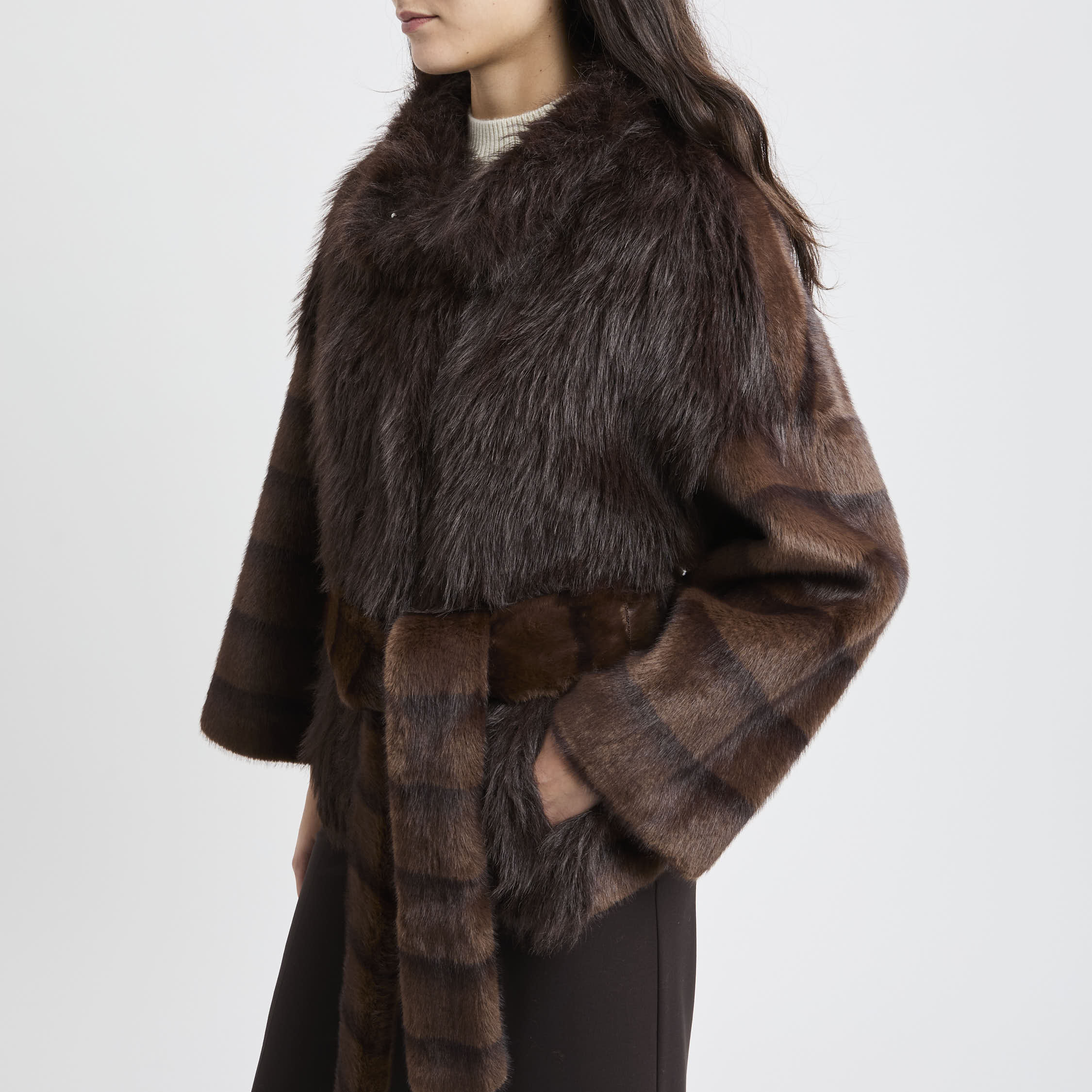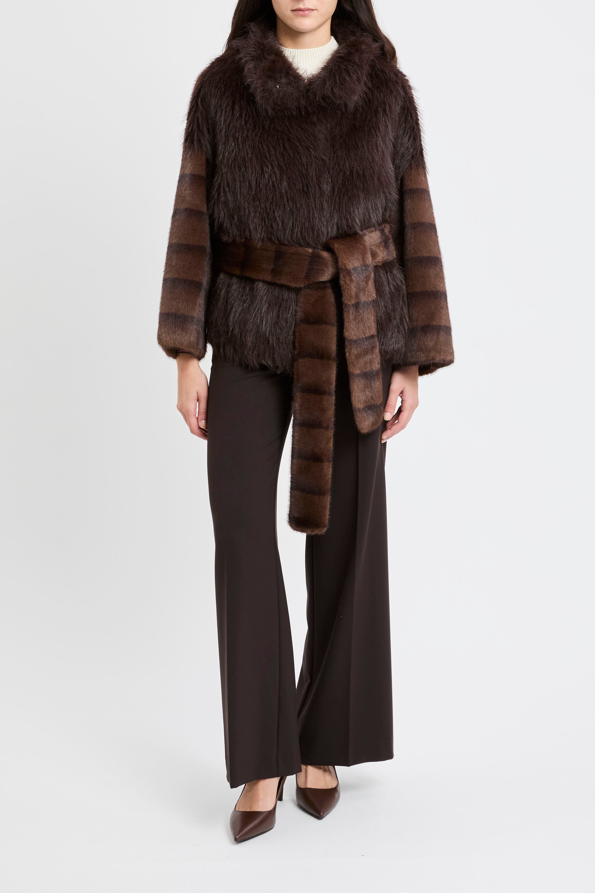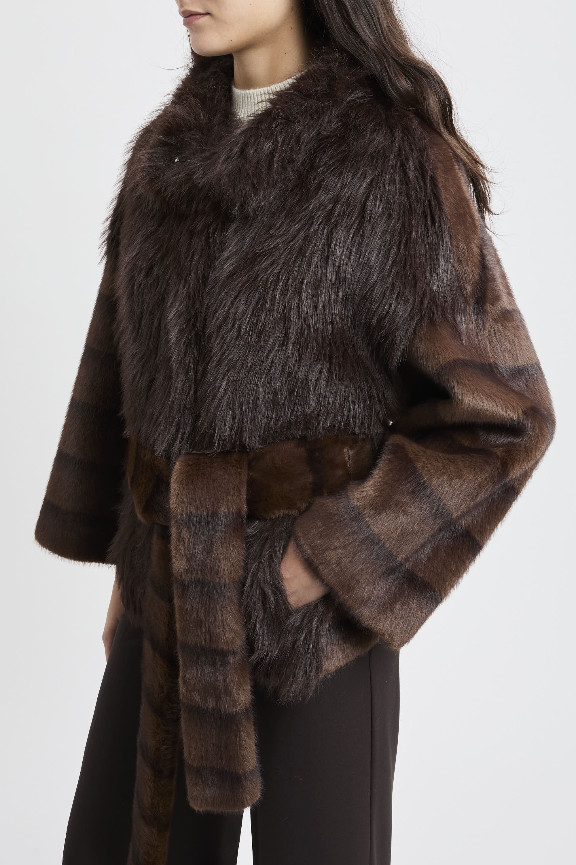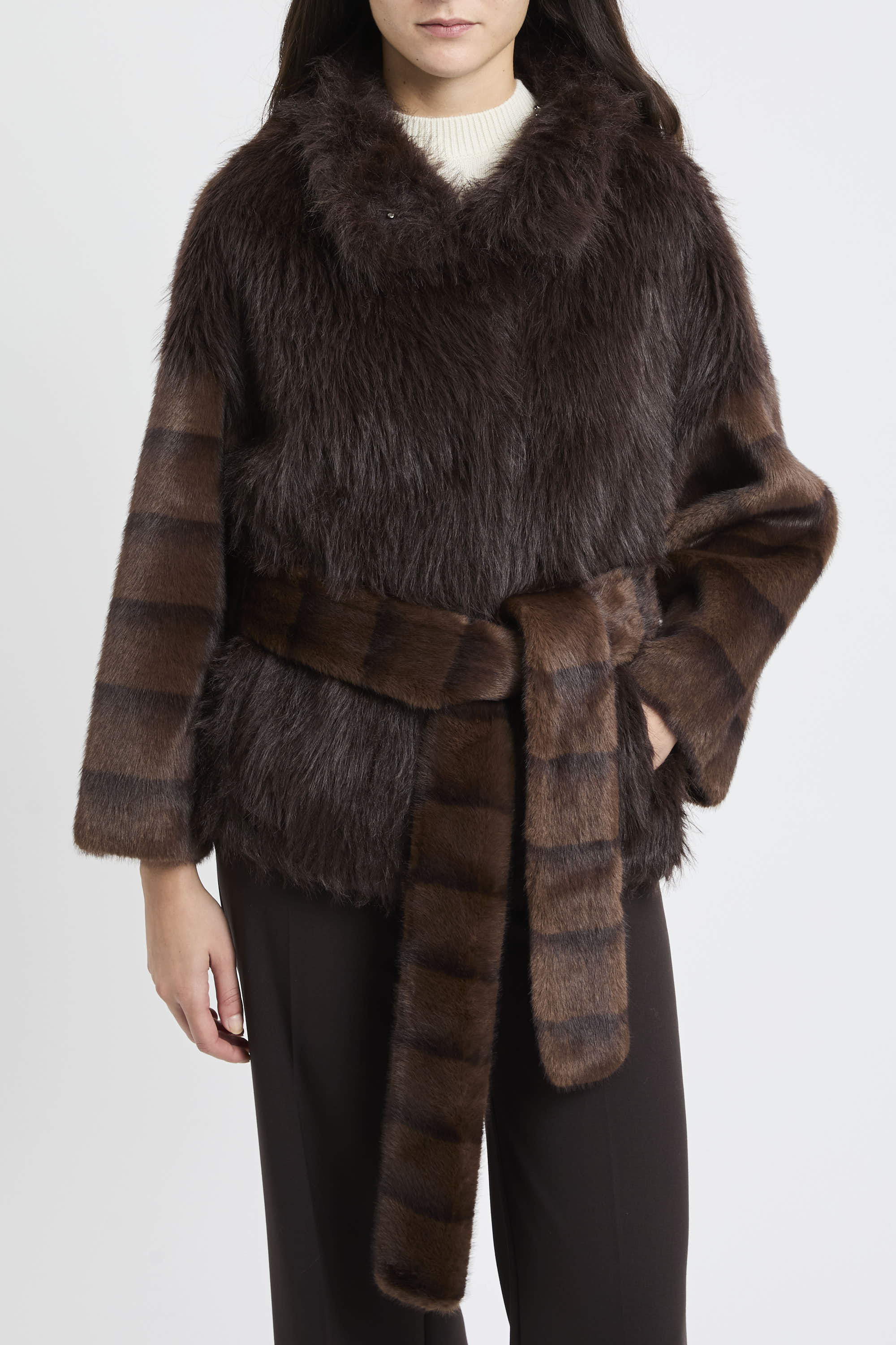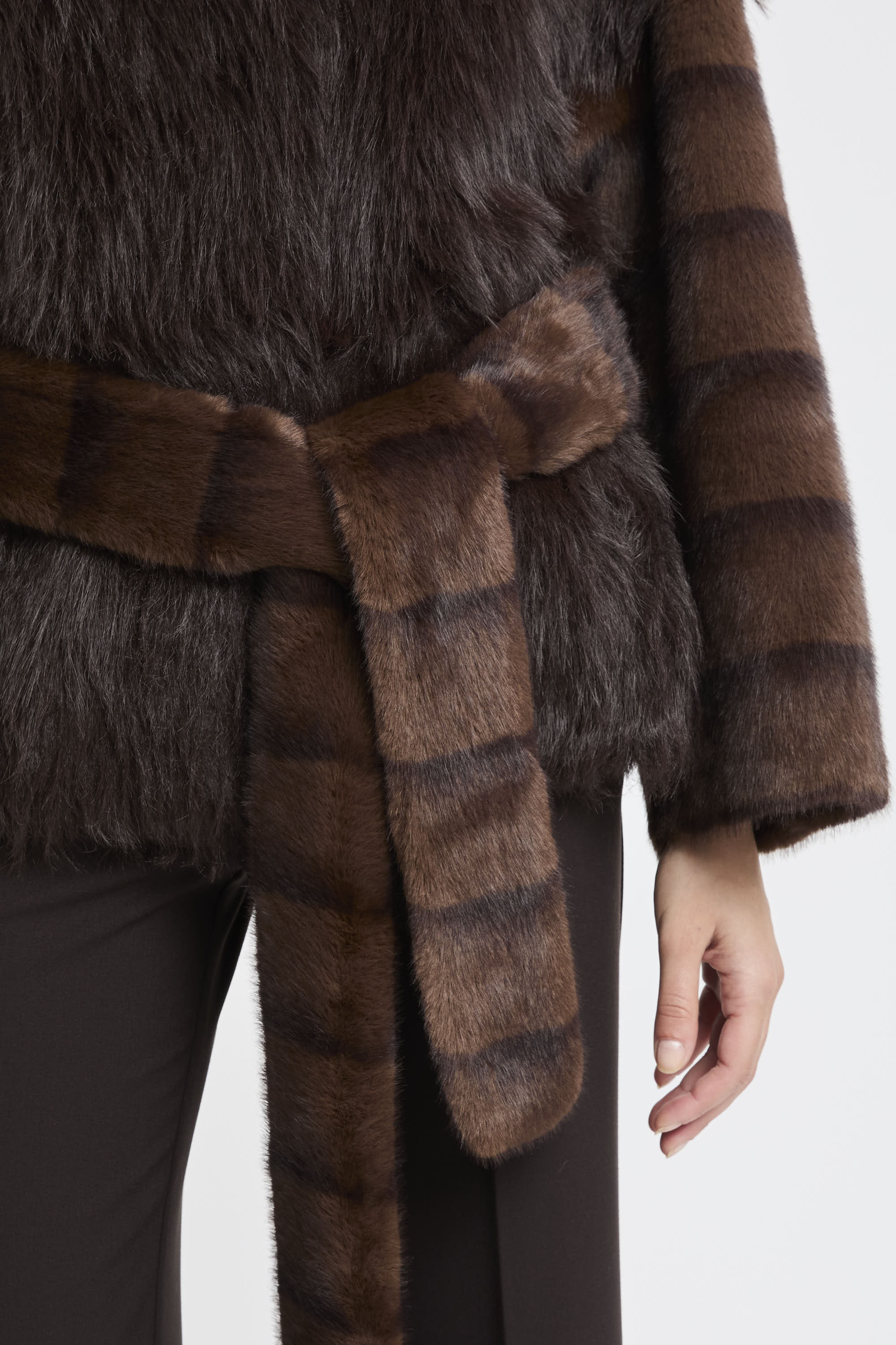 # Ecopelliccia corta con cintura removibile.