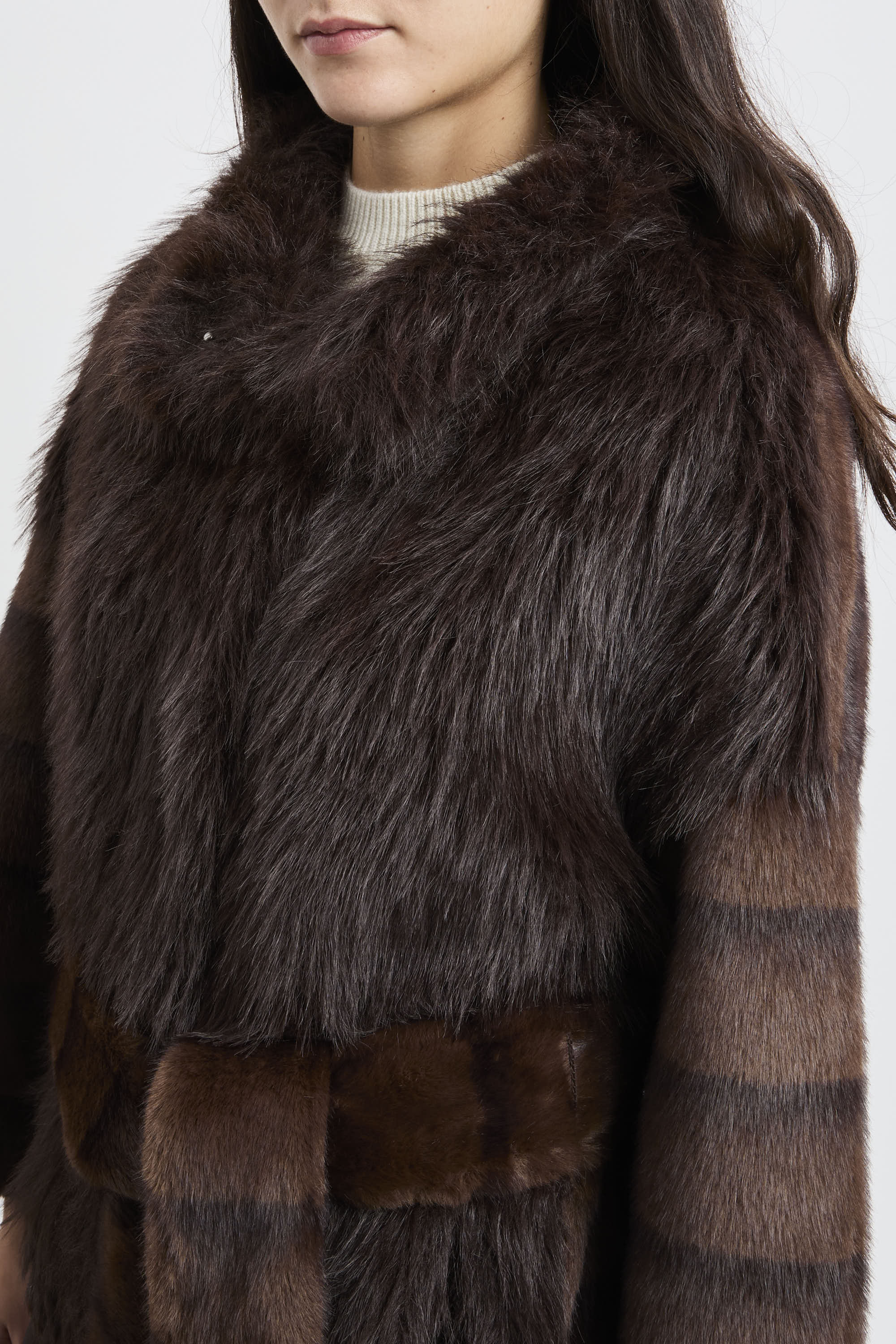 # Pelo differenziato: lungo davanti/collo, corto su maniche/fianchi/retro.