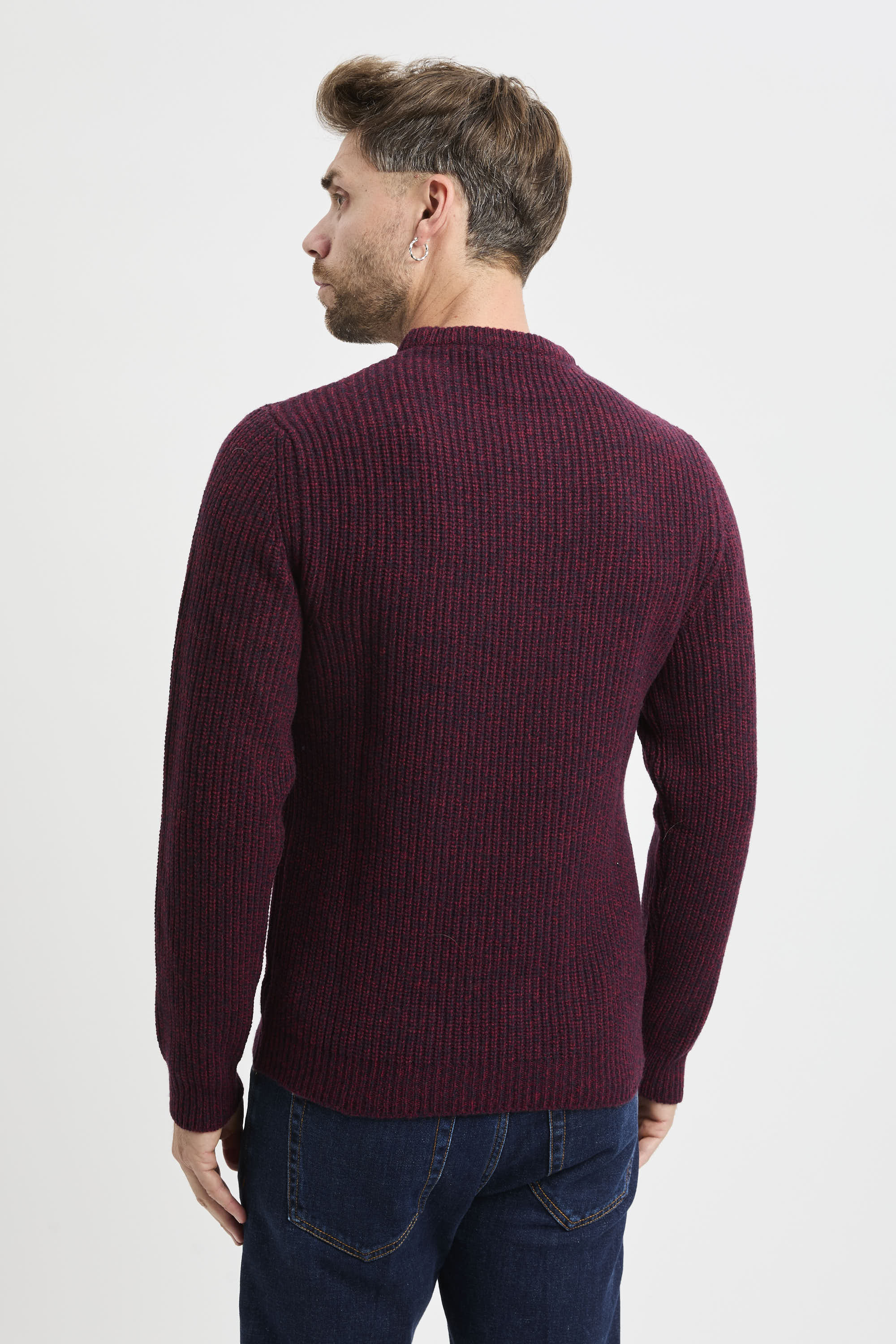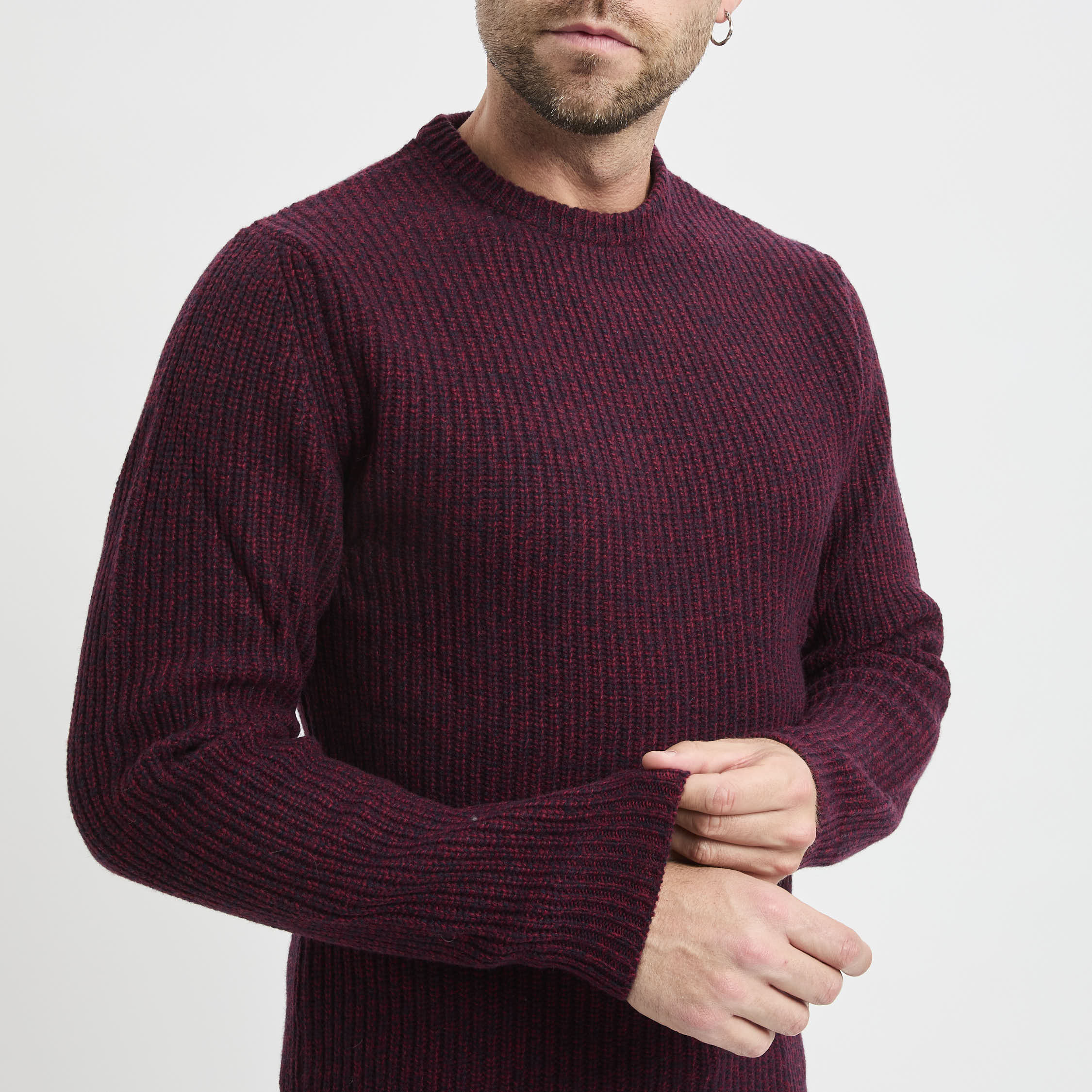 Il filato bicolore crea un elegante effetto chiaro-scuro su tutta la maglia, mentre la lavorazione a coste inglesi dona volume e carattere mantenendo un mood casual e contemporaneo. Pensata con peso invernale, è un capo confortevole per tutta la stagione fredda. Made in Italy.