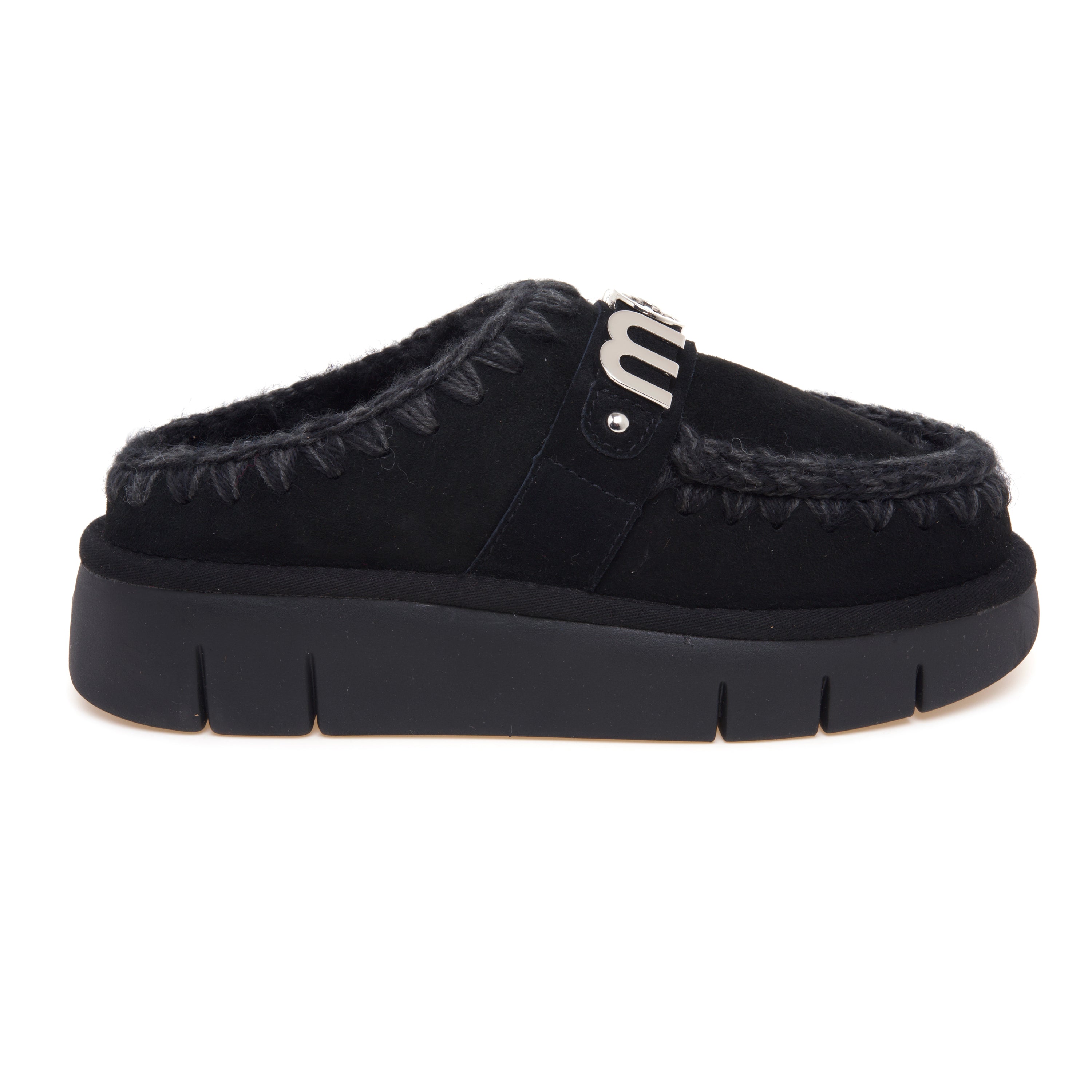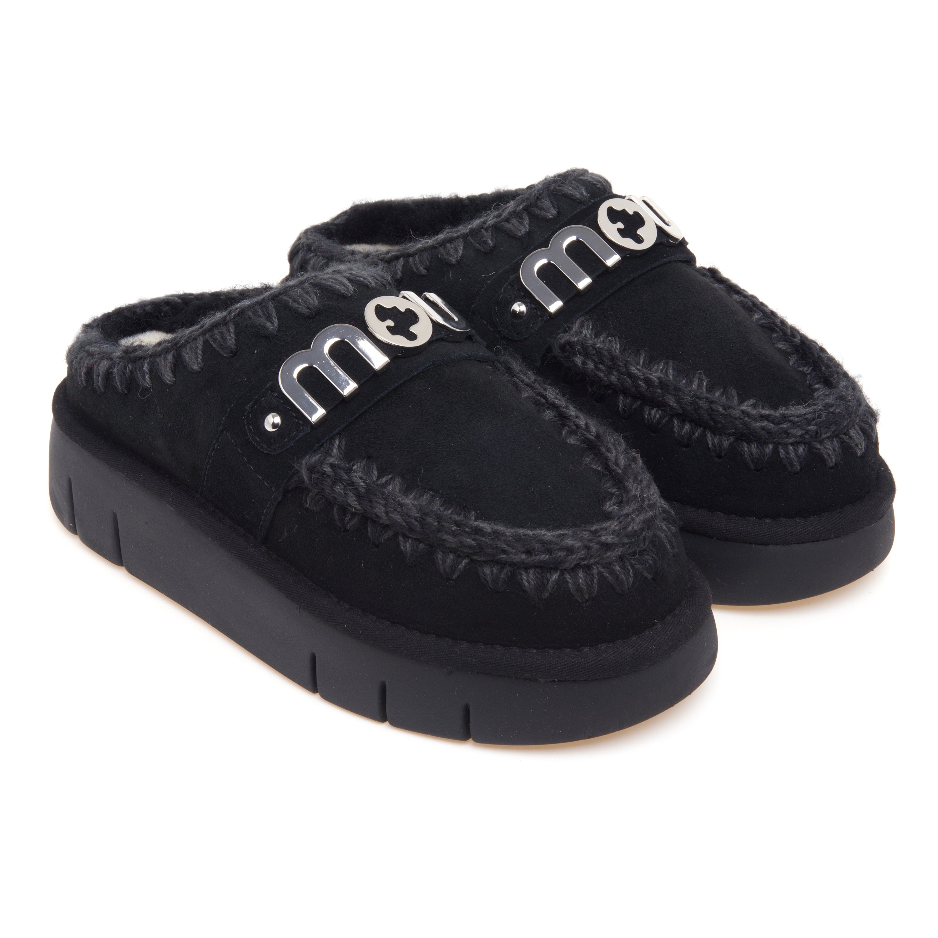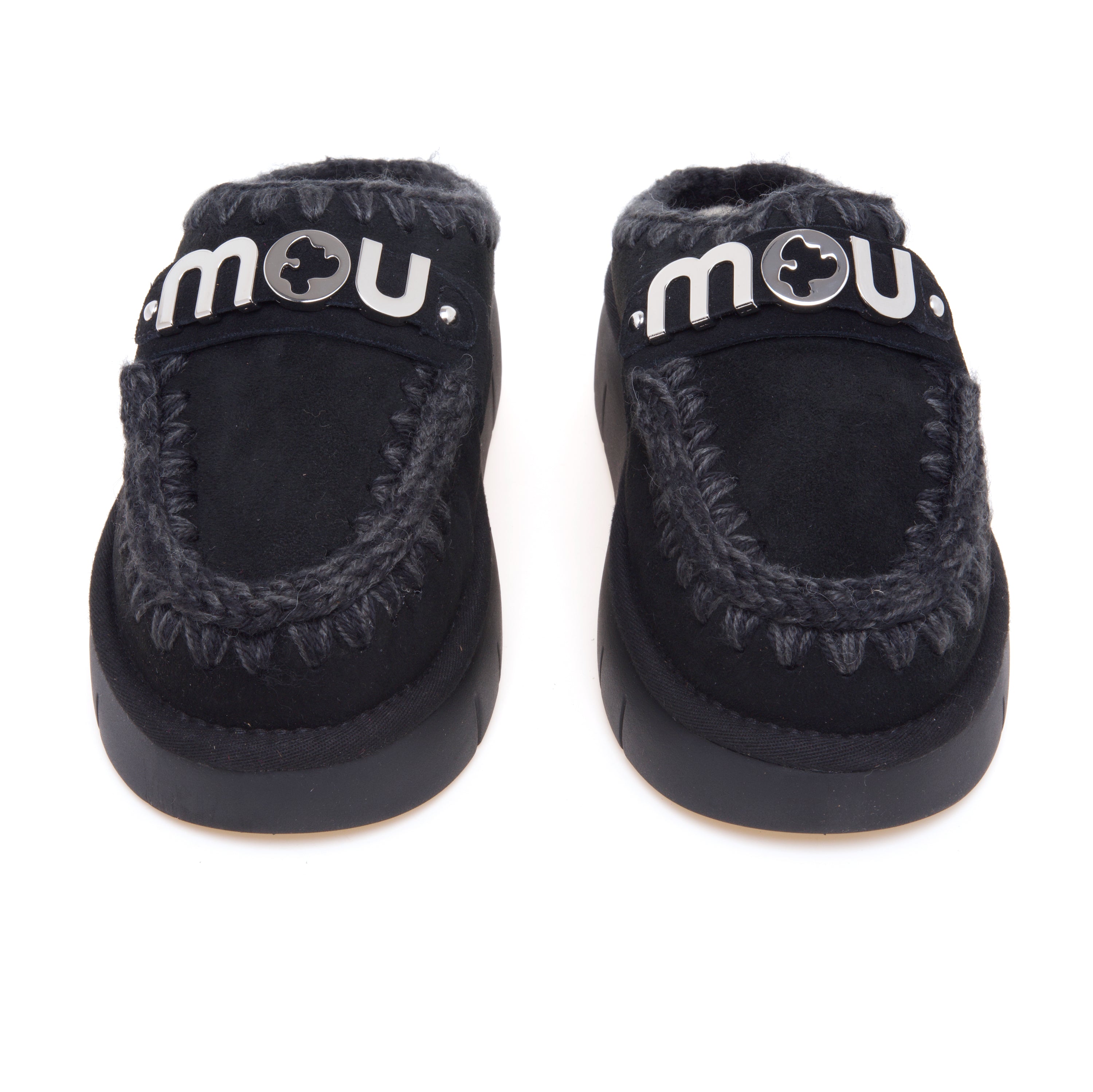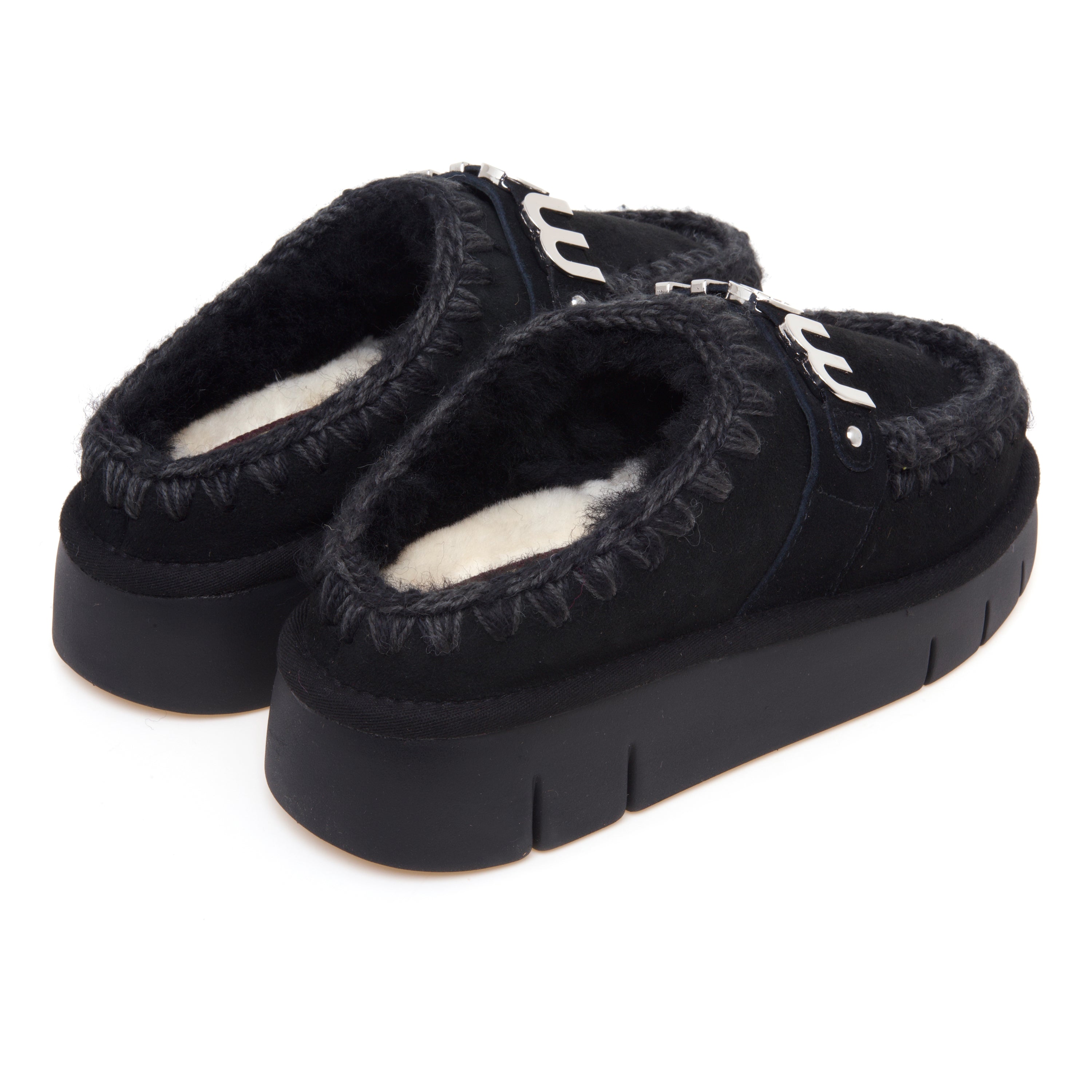 Realizzate a mano in vero montone double face, sono rifinite dalle iconiche cuciture all’uncinetto in lana e impreziosite dal lettering metallico MOU applicato sul collo del piede.
