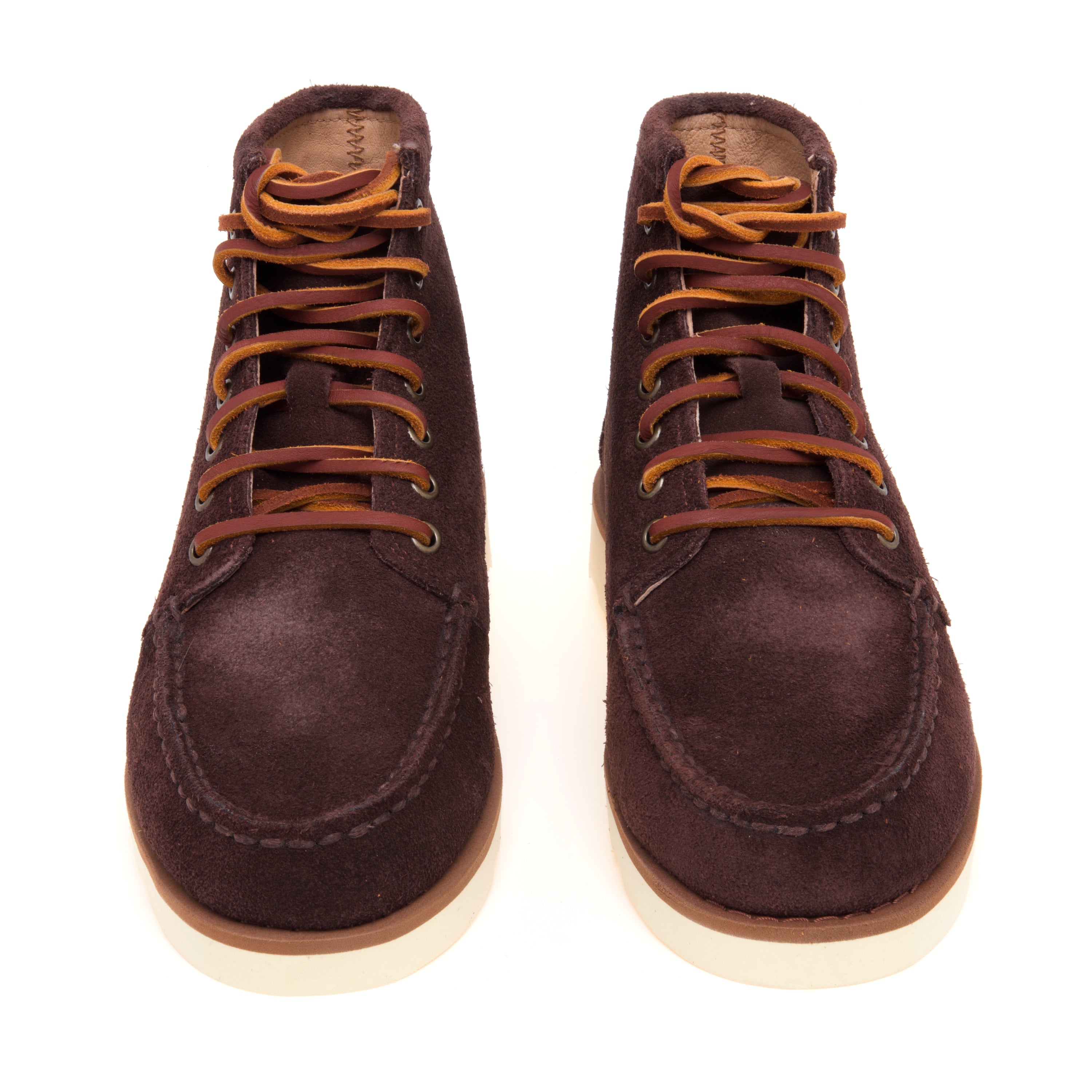 Sebago Tala rende omaggio alle origini del brand con uno scarponcino ispirato alle calzature dei nativi americani. La pelle scamosciata, trattata con una ricca combinazione di oli, offre un effetto tattile pieno e profondo. La vaschetta sulla punta presenta cuciture fatte a mano, mentre la chiusura con lacci squadrati in cuoio richiama la tradizione Navajo. A completare la struttura, la suola in EVA leggera intagliata a rilievo assicura aderenza su diverse superfici. Sul lato, la label in tessuto con il nome Sebago firma il modello con discrezione.