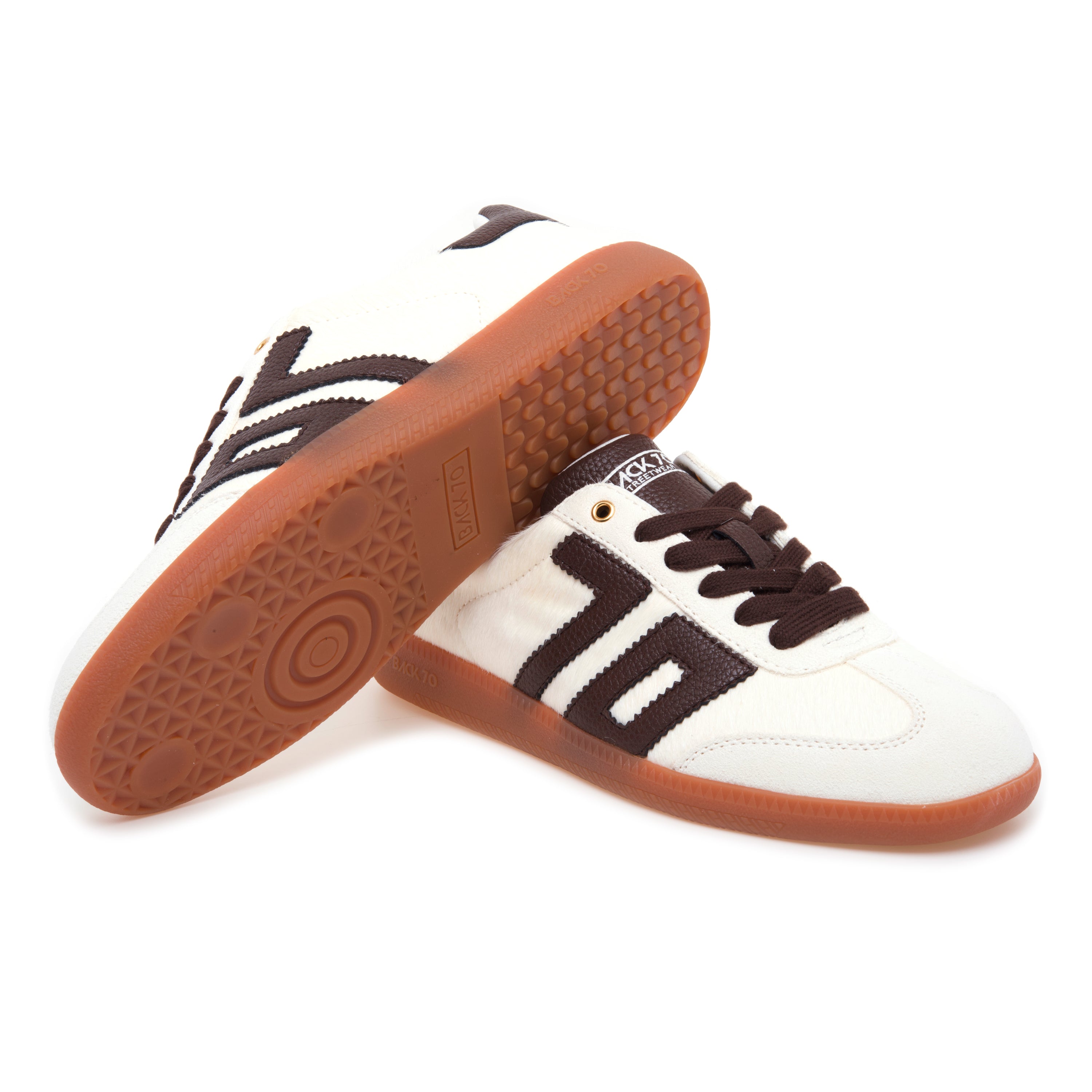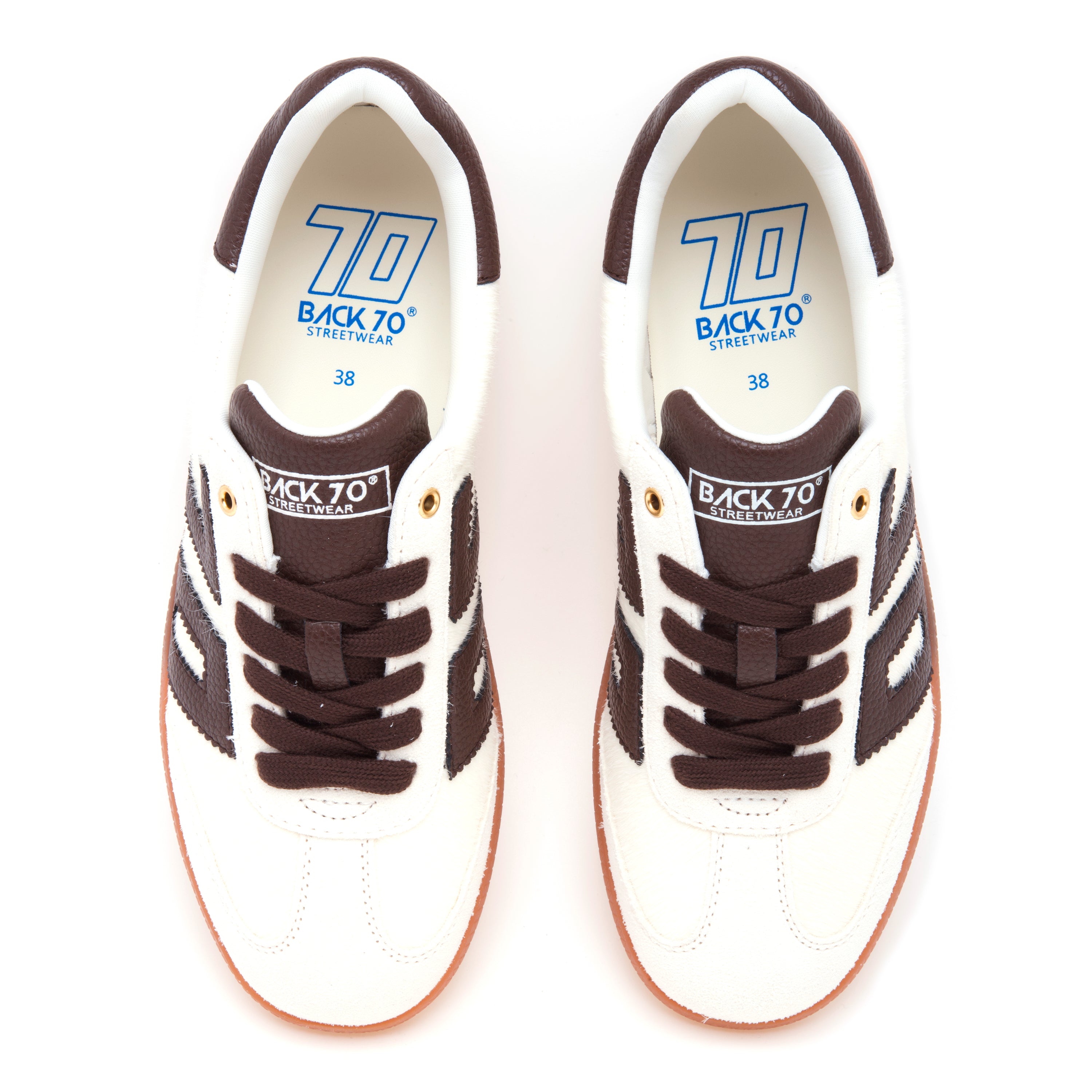 Back 70 Cloud da donna punta su un contrasto cromatico raffinato: la tomaia in cavallino color burro regala morbidezza visiva e tatto pieno, mentre logo e talloncino in pelle martellata testa di moro definiscono il profilo con un accento intenso e materico. Restano protagonisti comfort e praticità quotidiana: linguetta e collarino imbottiti avvolgono il piede, la soletta anatomica in memory foam attenua gli impatti e la suola in gomma flessibile favorisce una rullata naturale. I lacci monocolore coordinati completano una sneaker trasversale, facile da abbinare dal mattino alla sera. Caratteristiche principali: # Modello donna Back 70 Cloud. # Tomaia in cavallino color burro. # Logo e talloncino in pelle martellata testa di moro. # Suola in gomma flessibile: ca. 1,5 cm (punta) · 2,5 cm (tallone). # Linguetta e collarino imbottiti per calzata avvolgente. # Soletta anatomica in memory foam per ammortizzazione quotidiana. # Lacci monocolore coordinati. # Fodera in pelle per comfort a contatto piede.