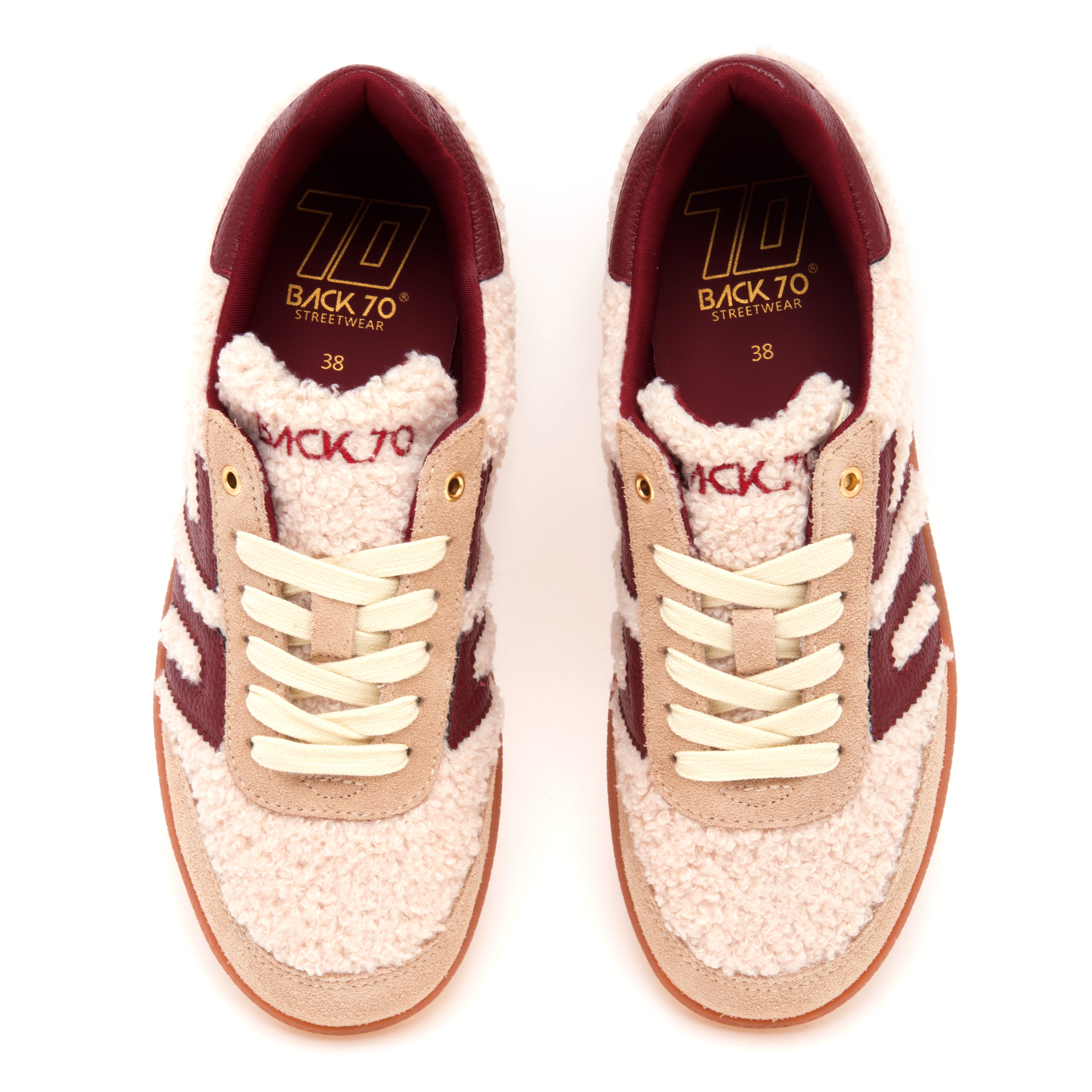 Back 70 Cloud da donna scalda l’inverno con una combinazione morbida e ricercata: la tomaia in teddy color beige si abbina a inserimenti in pelle scamosciata per un piacevole gioco di texture, mentre logo e talloncino in pelle grain bordeaux (martellata) aggiungono un accento cromatico deciso e distintivo. La calzata è avvolgente grazie a linguetta e collarino imbottiti in schiuma; la soletta anatomica in memory foam rivestita in morbida pelle accompagna ogni passo con un’ammortizzazione confortevole. Sotto, la suola in gomma flessibile (1,5 cm in punta, 2,5 cm al tallone) favorisce una camminata naturale. I lacci in cotone siglano il look con stile classico—e in confezione è incluso un paio extra per variare con facilità. Caratteristiche principali: # Modello donna Back 70 Cloud. # Tomaia in teddy beige con dettagli in pelle scamosciata. # Logo e talloncino in pelle martellata bordeaux. # Suola in gomma flessibile: ca. 1,5 cm (punta) · 2,5 cm (tallone). # Lacci in cotone + un paio extra inclusi. # Linguetta e collarino imbottiti in schiuma per calzata aderente. # Fodera in morbida pelle per comfort a contatto piede. # Linguetta imbottita sul tallone per supporto e protezione. # Soletta anatomica in memory foam rivestita in pelle per ammortizzazione.