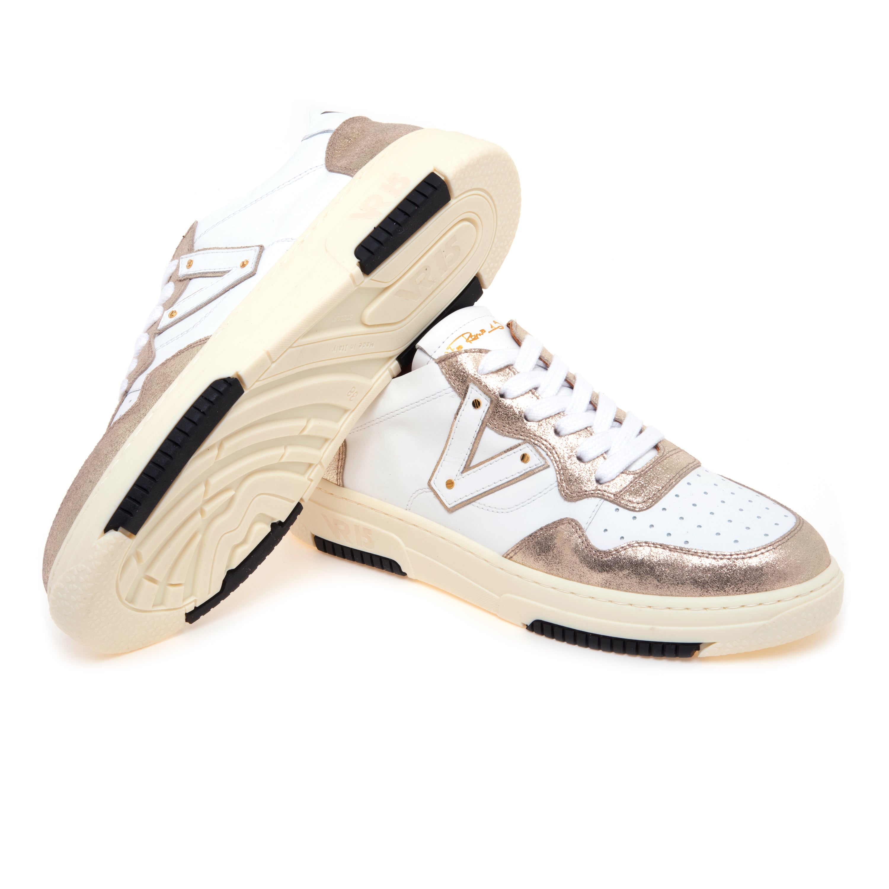 La sneaker Via Roma 15 prende ispirazione dalle scarpe da basket rétro e le reinterpreta in chiave contemporanea, trovando il giusto equilibrio tra stile e versatilità. Realizzata interamente in pelle, è arricchita da inserti in camoscio color platino a contrasto e dall’iconica “V” laterale, dettaglio che dona carattere e immediata riconoscibilità al modello. Il talloncino in pelle con logo VR15 completa il design valorizzando l’identità del brand, mentre la suola in gomma personalizzata assicura comfort, resistenza e aderenza nell’uso quotidiano. Interno e sottopiede in pelle — quest’ultimo estraibile — garantiscono traspirabilità e una calzata confortevole. Un modello Made in Italy che unisce cura artigianale e attitudine urbana. Caratteristiche principali: # Tomaia 100% pelle con inserti in camoscio platino. # Iconica “V” laterale. # Talloncino in pelle con logo VR15. # Fodera in pelle. # Sottopiede estraibile in pelle. # Suola in gomma personalizzata con logo, per comfort e durata. # Made in Italy.