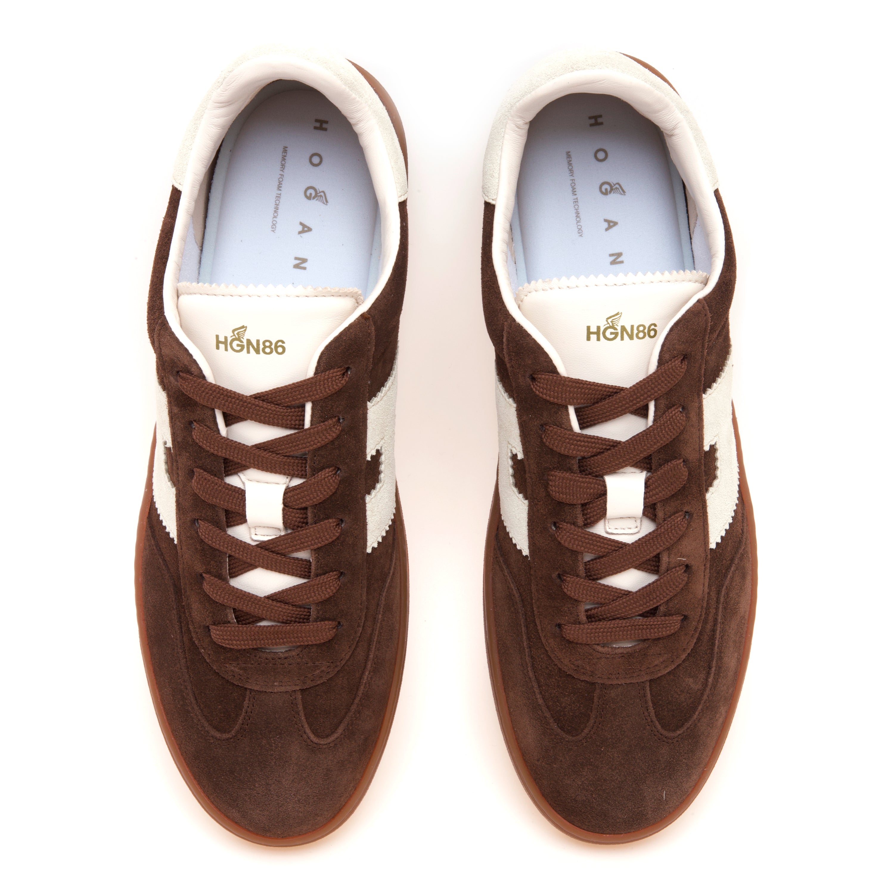A livello tecnico, il modello è dotato di suola in gomma TPU color ambra, dal profilo leggero e flessibile, con monogramma obliquo Hogan inciso sul battistrada, segno grafico riconoscibile che aggiunge personalità alla scarpa. Il sottopiede in memory foam da 8 mm, rivestito in tessuto, garantisce un’ammortizzazione elevata e una camminata stabile in ogni situazione.