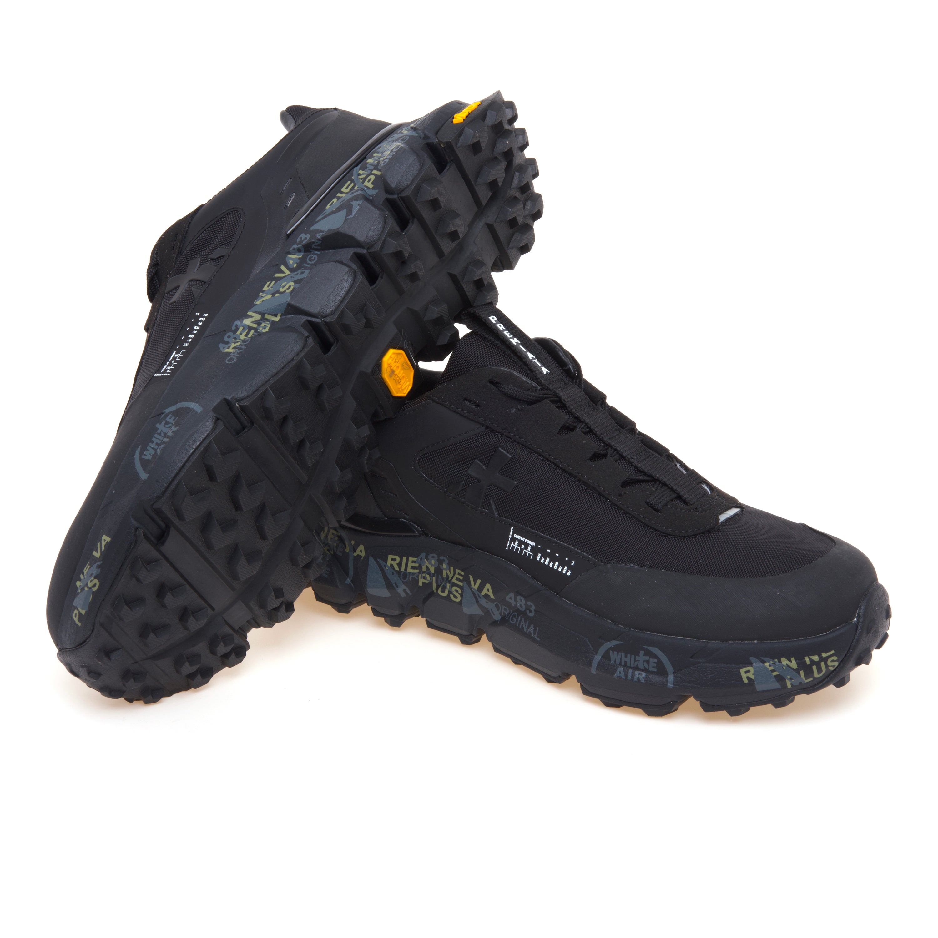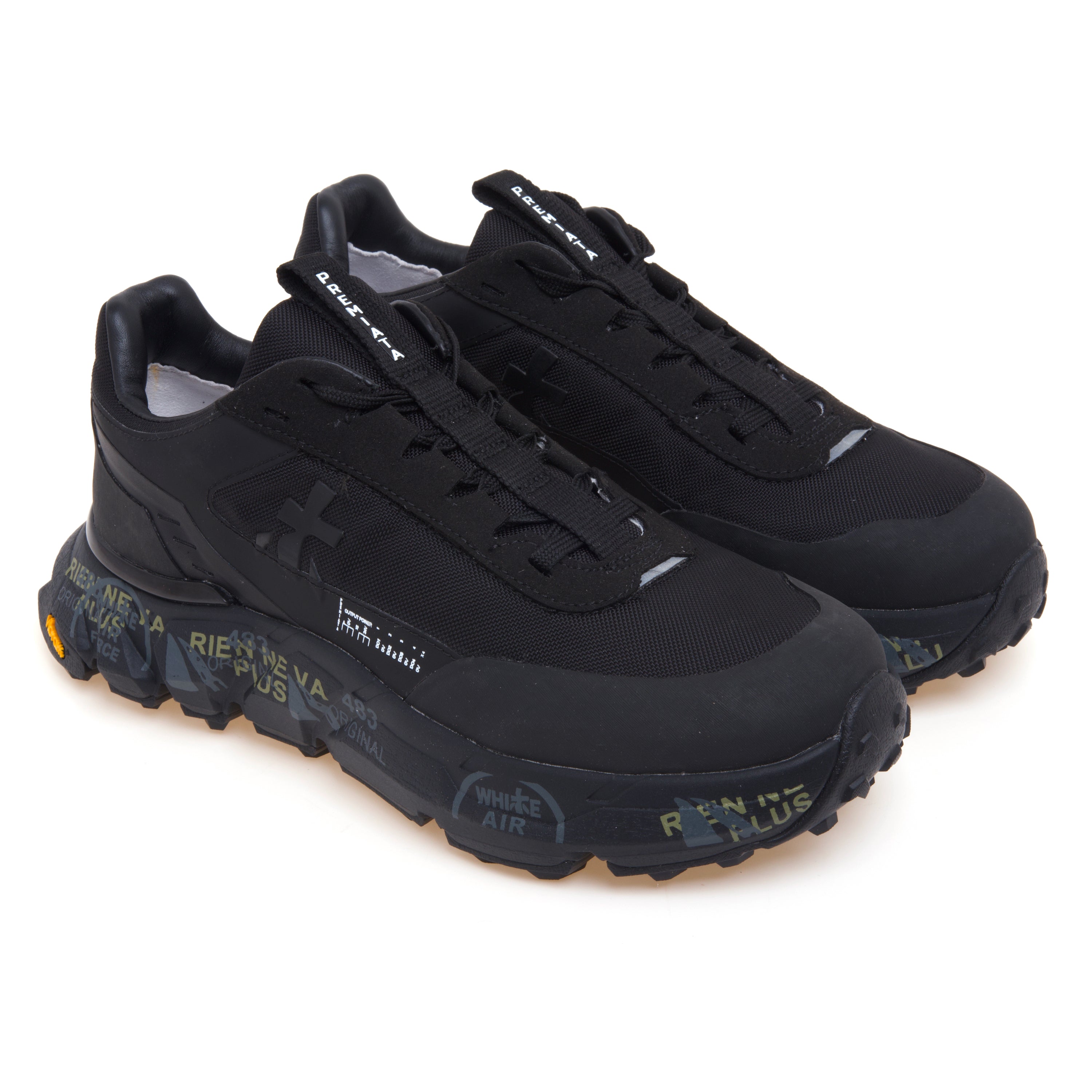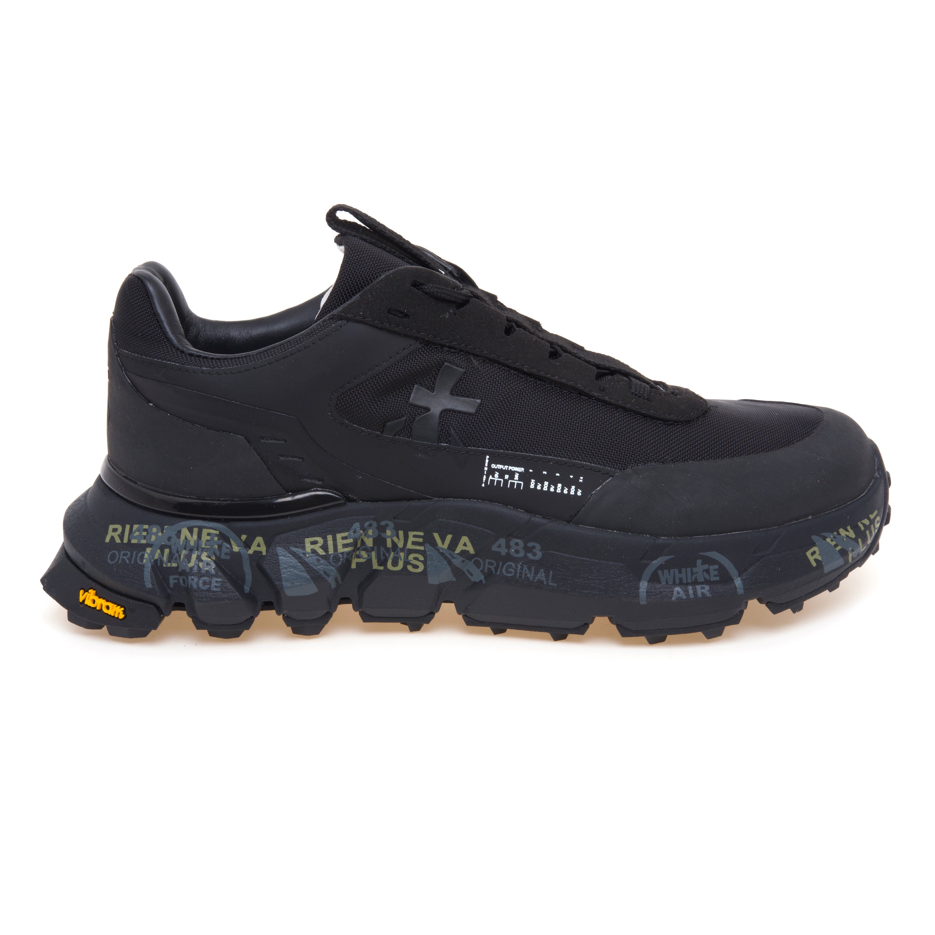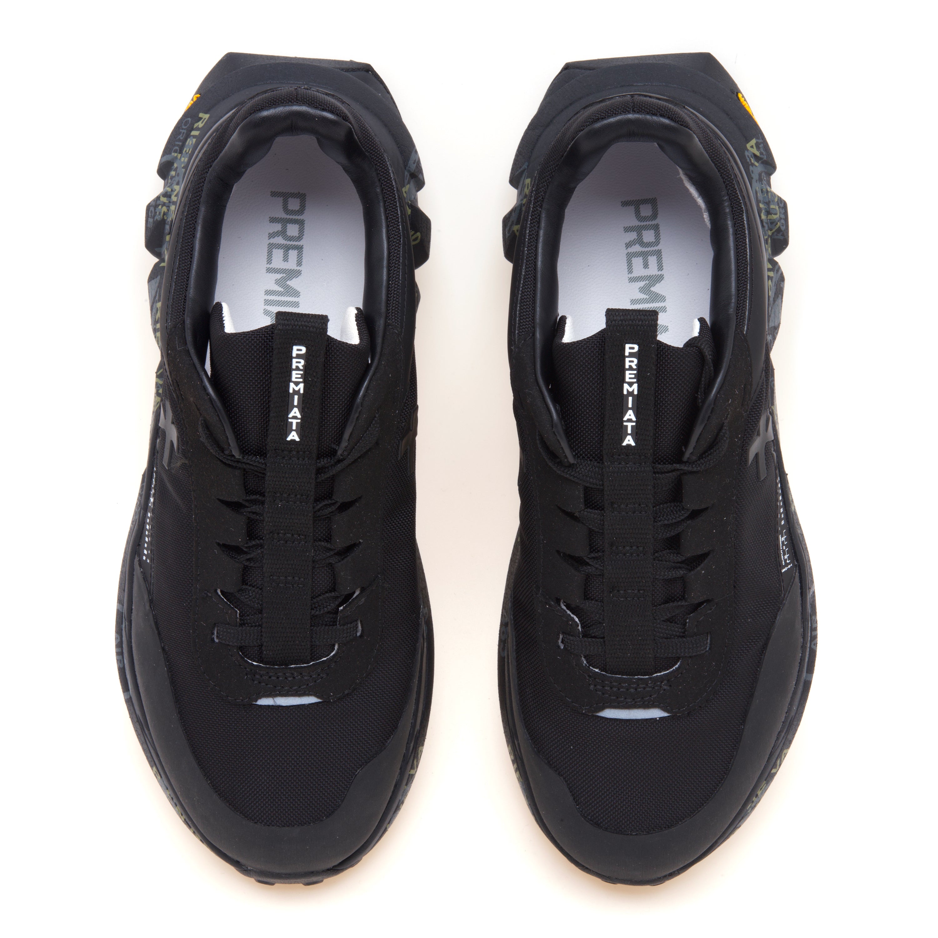 Sul lato è applicato l'iconico logo Premiata, realizzato in gomma termosaldata.
