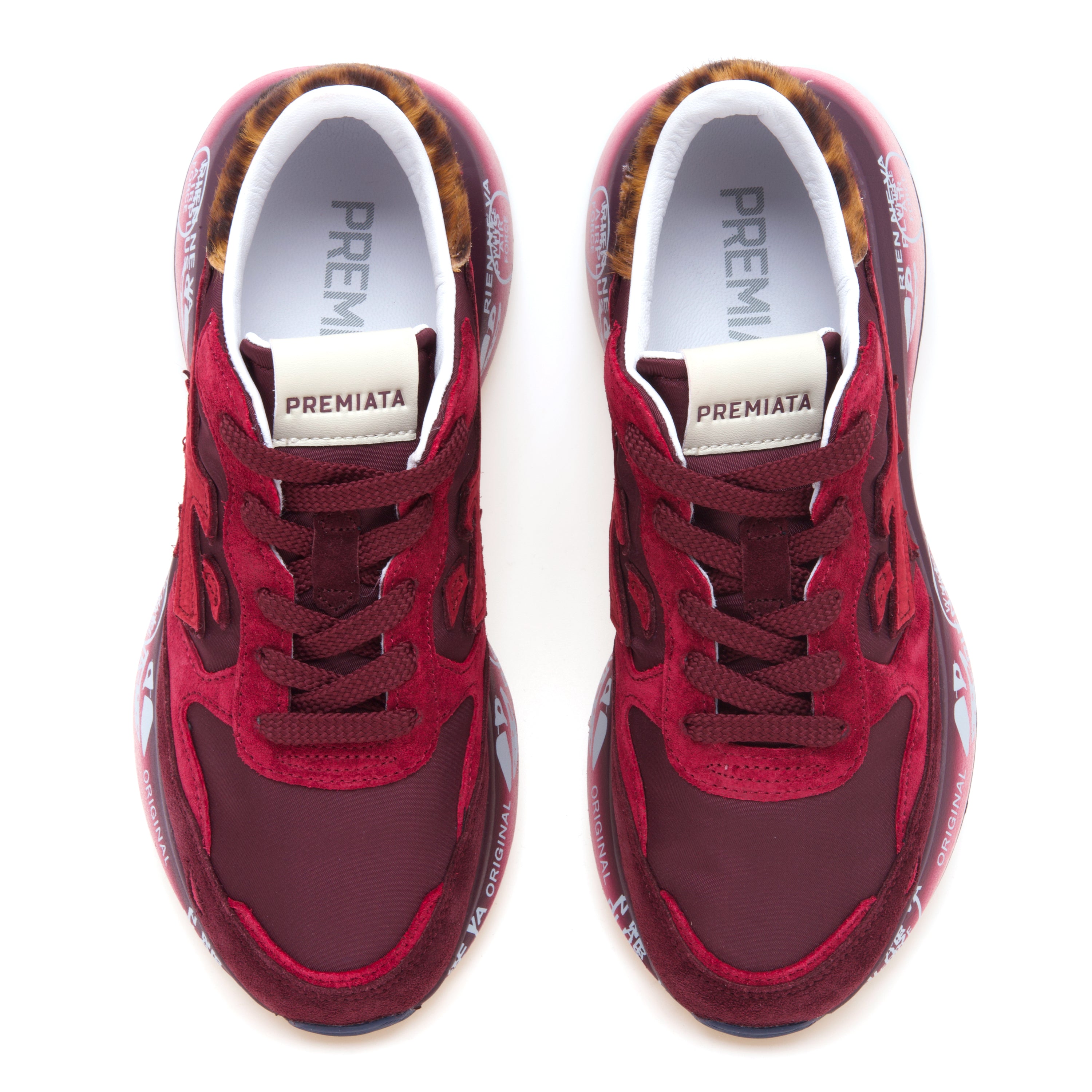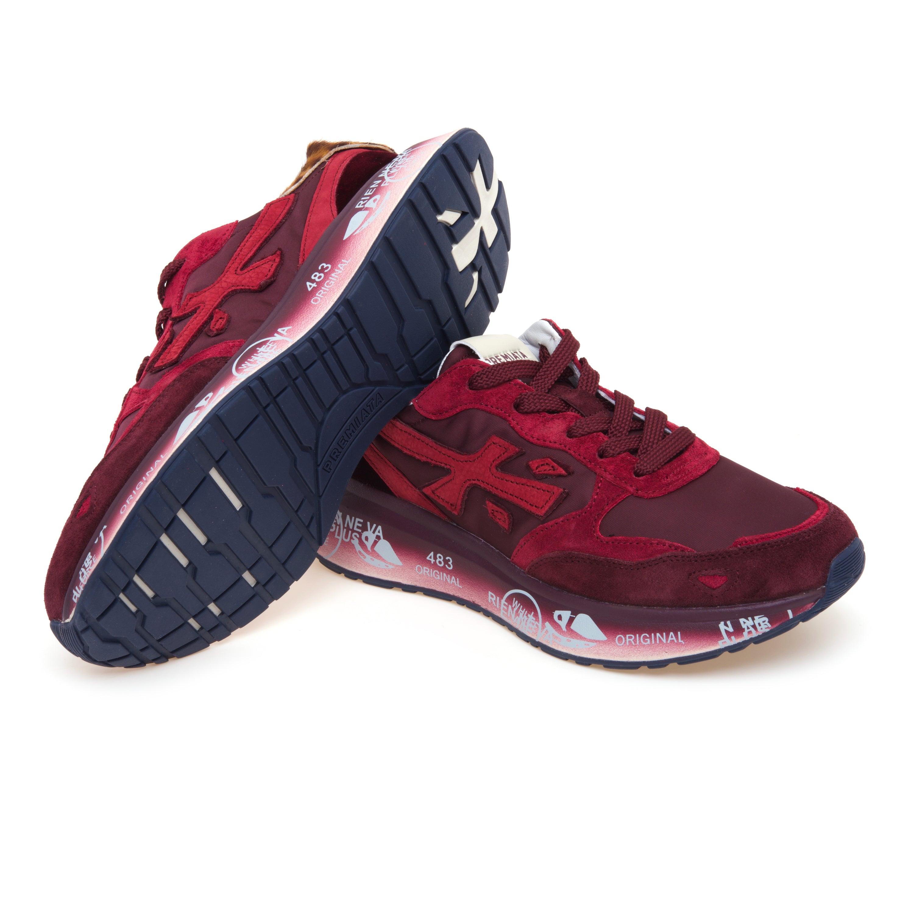 Design sportivo e animo fashion; La nuova sneaker Premiata Lauryn trova ispirazione dalle scarpe da running ma offre un mix in perfetto equilibrio tra stile e funzionalità grazie all'uso di materiali di alta qualità e una suola in gomma extra light estremamente confortevole. Realizzata in camoscio e tessuto tecnico tono su tono, si distingue per il talloncino in cavallino maculato e la suola in gomma. La suola in gomma è leggera e flessibile e caratterizzata dall'iconica livrea che distingue tutti i modelli Premiata. # Fodera in camoscio e tessuto tecnico tono su tono. # Suola in gomma.