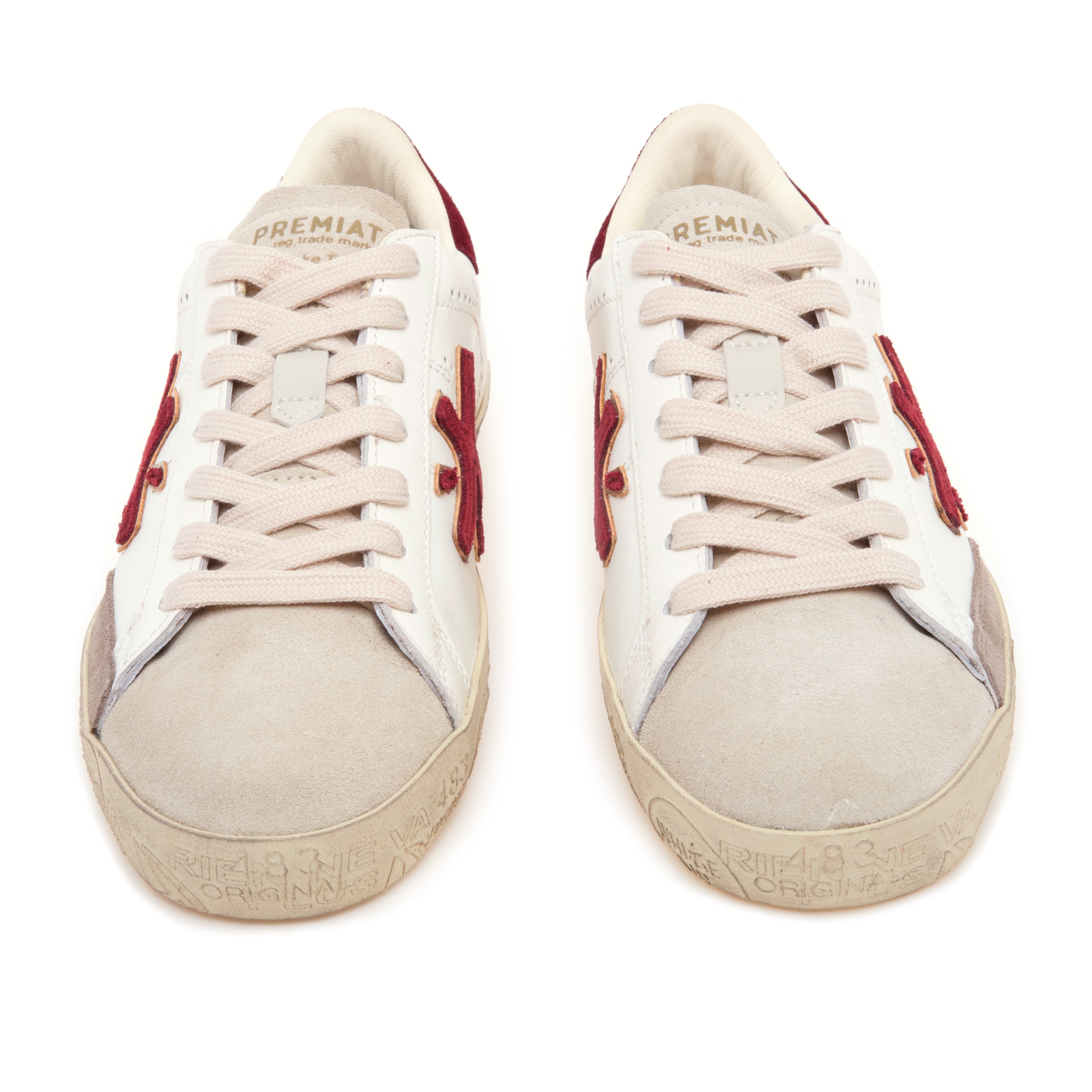 Caratterizzata da un look essenziale e senza tempo, Premiata Steven è una sneaker in pelle con suola a cassetta e maxi logo in camoscio bordeaux applicato lateralmente e in colore coordinato con il talloncino. Linguetta e punta sono invece realizzati in morbido suede color beige. La suola, realizzata in gomma, presenta l'iconica livrea che contraddistingue ogni modello Premiata, ma, in rilievo e colore tono su tono per mantenere lo stile iconico mantenendo allo stesso tempo un design minimale. Confortevole ed estremamente facile da abbinare, Premiata Steven è una sneaker da indossare tutti i giorni sia nel tempo libero, sia in ufficio ma anche per rendere meno formale un look elegante. # Tomaia in pelle effetto vintage. # Fodera in pelle. # Sottopiede estraibile in pelle. # Suola in gomma.