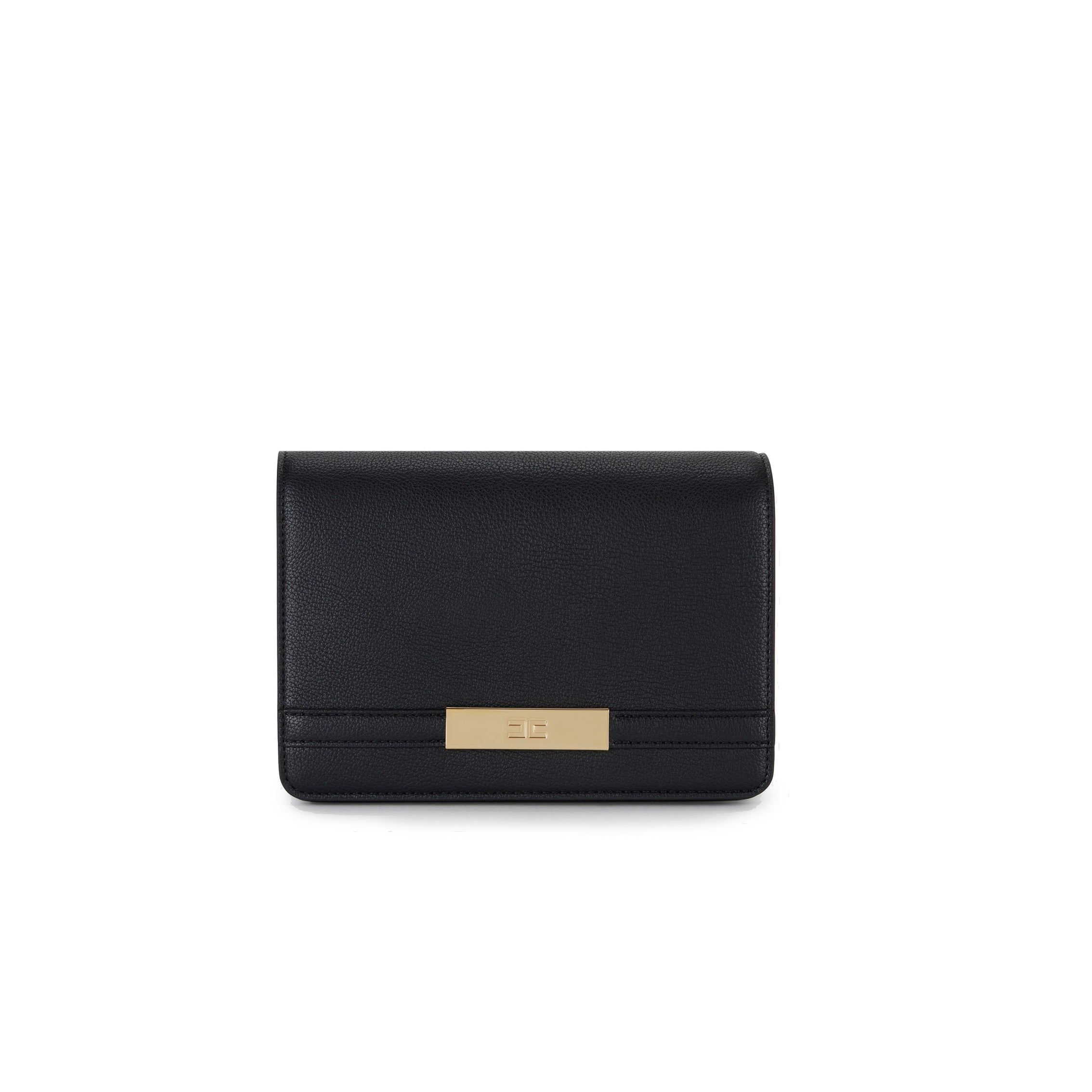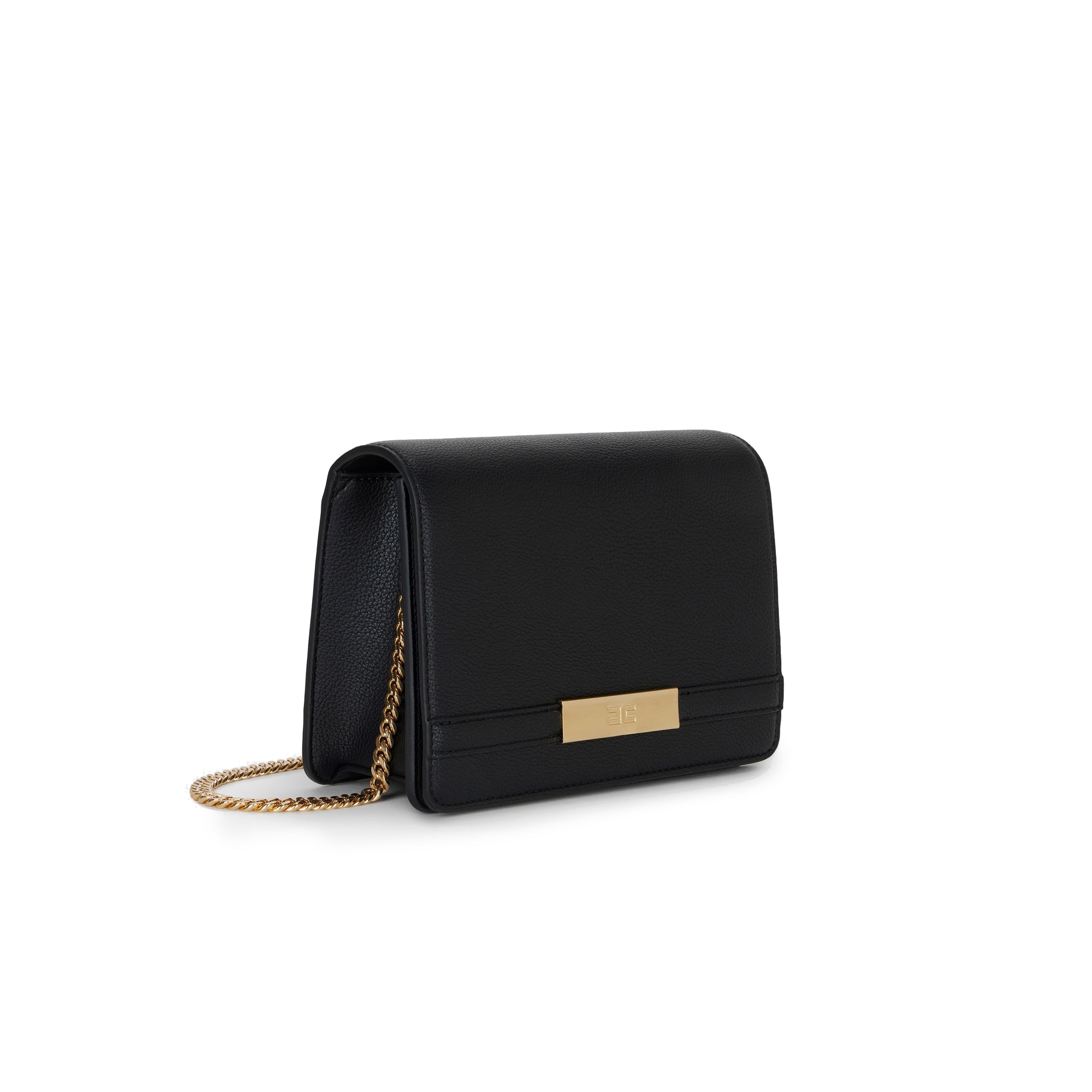 Realizzata in ecopelle, vanta una shape essenziale impreziosita dalla tracolla a catena groumette in metallo dorato e da una placca frontale con logo che aggiunge luminosa visibilità.