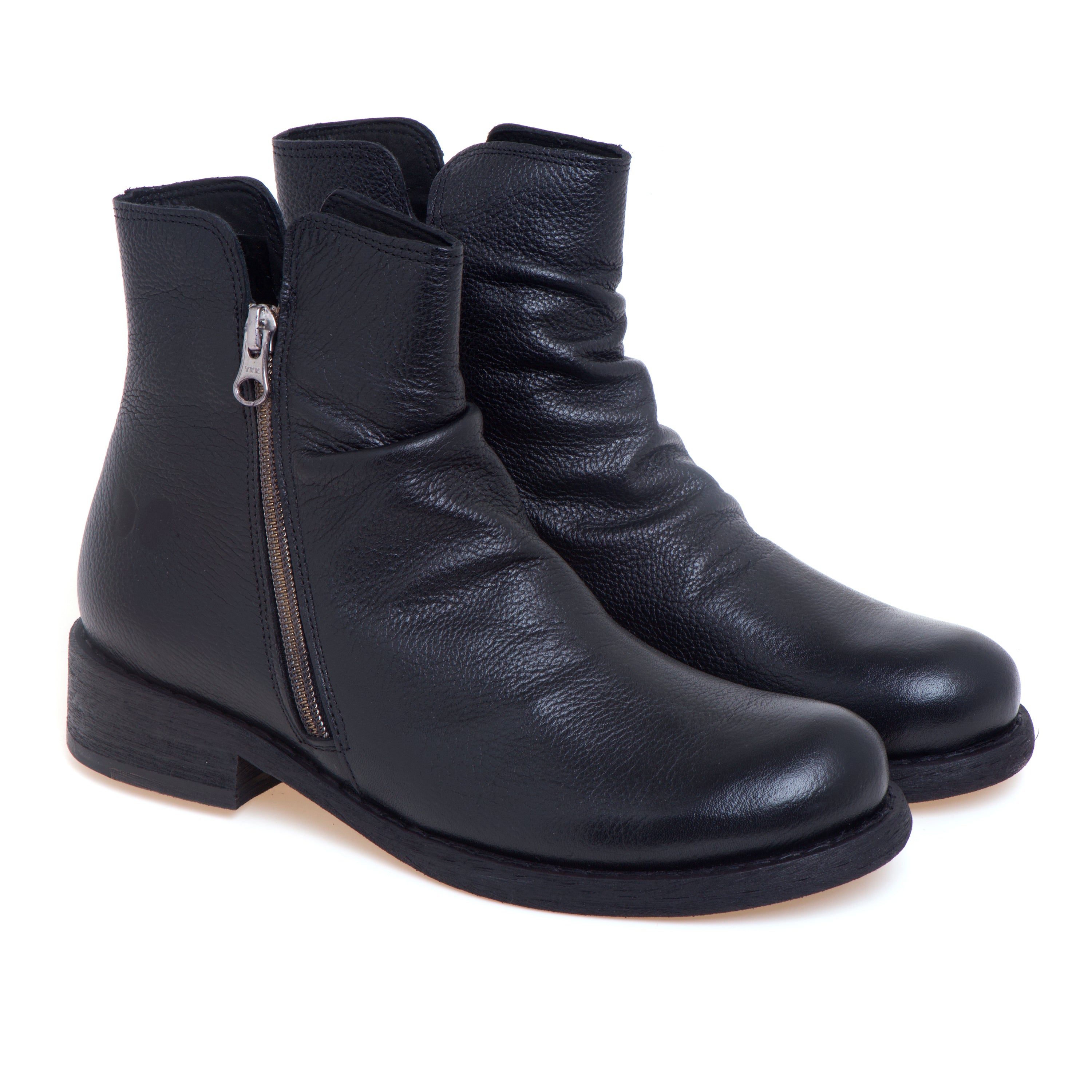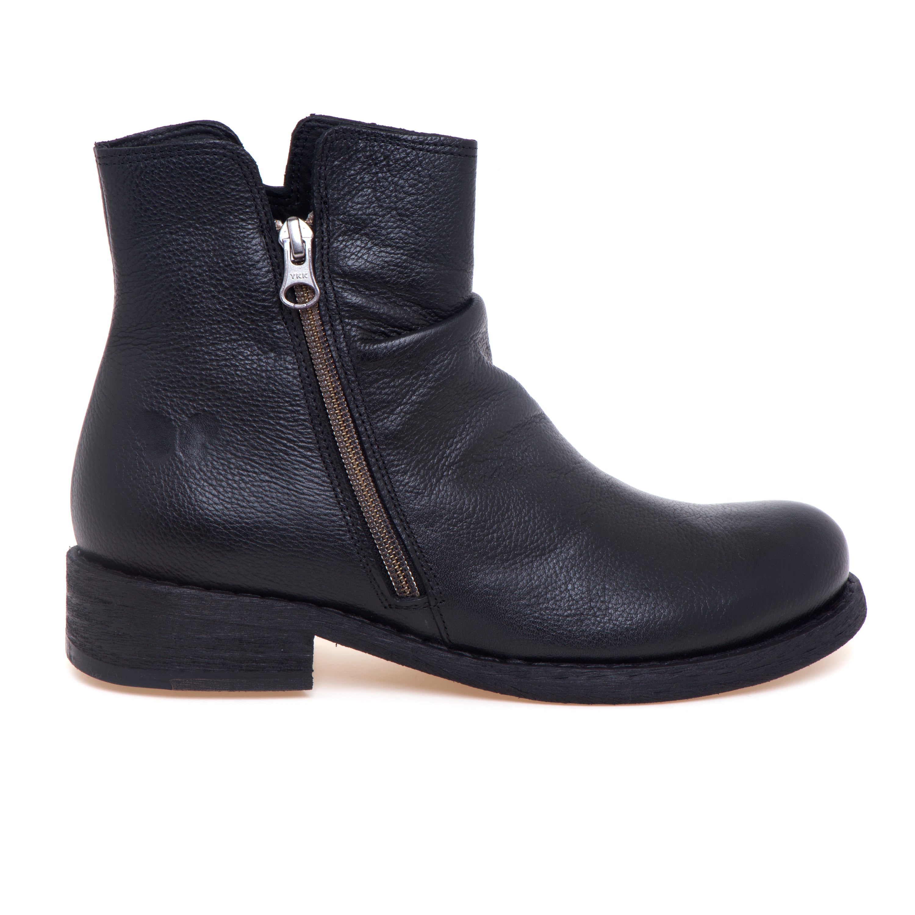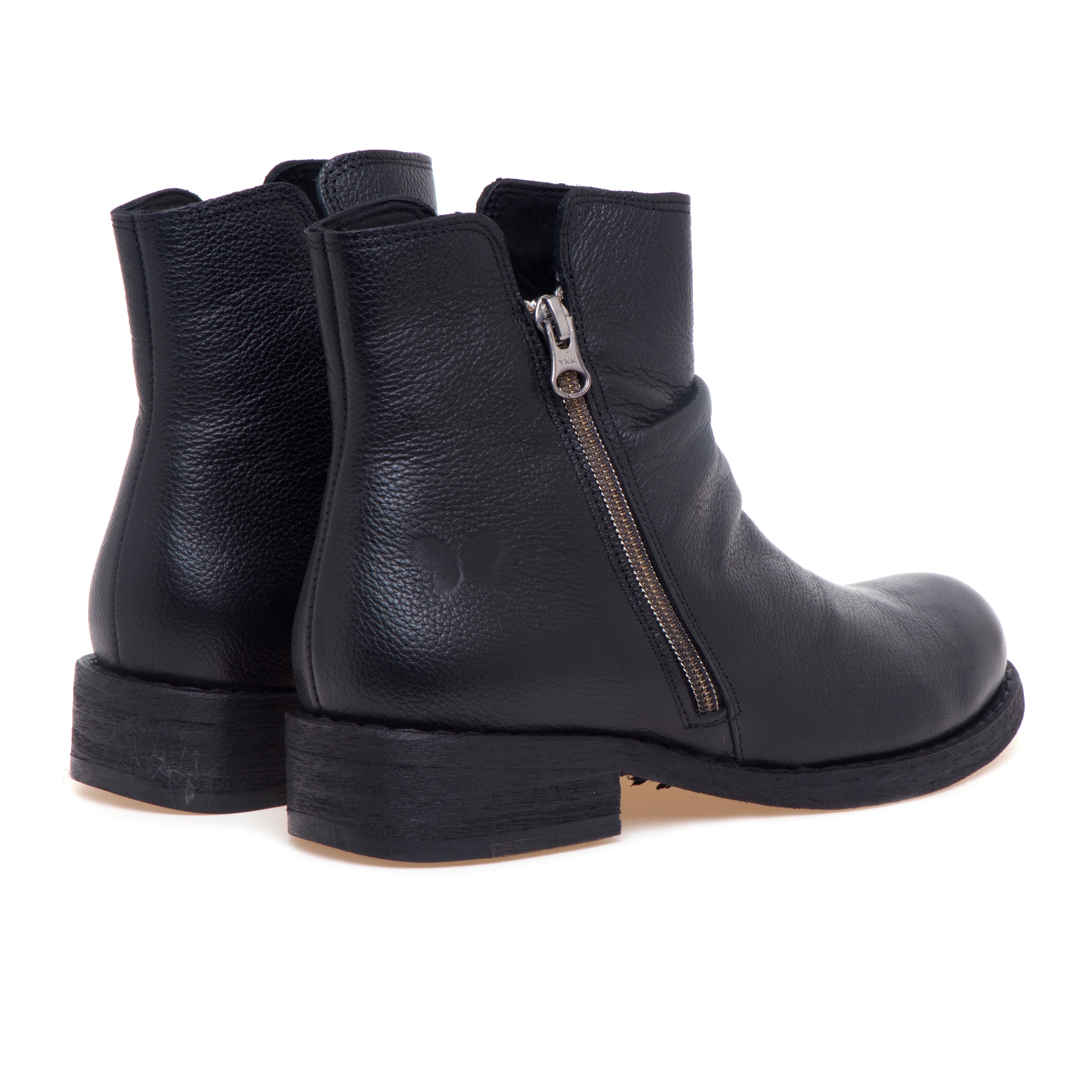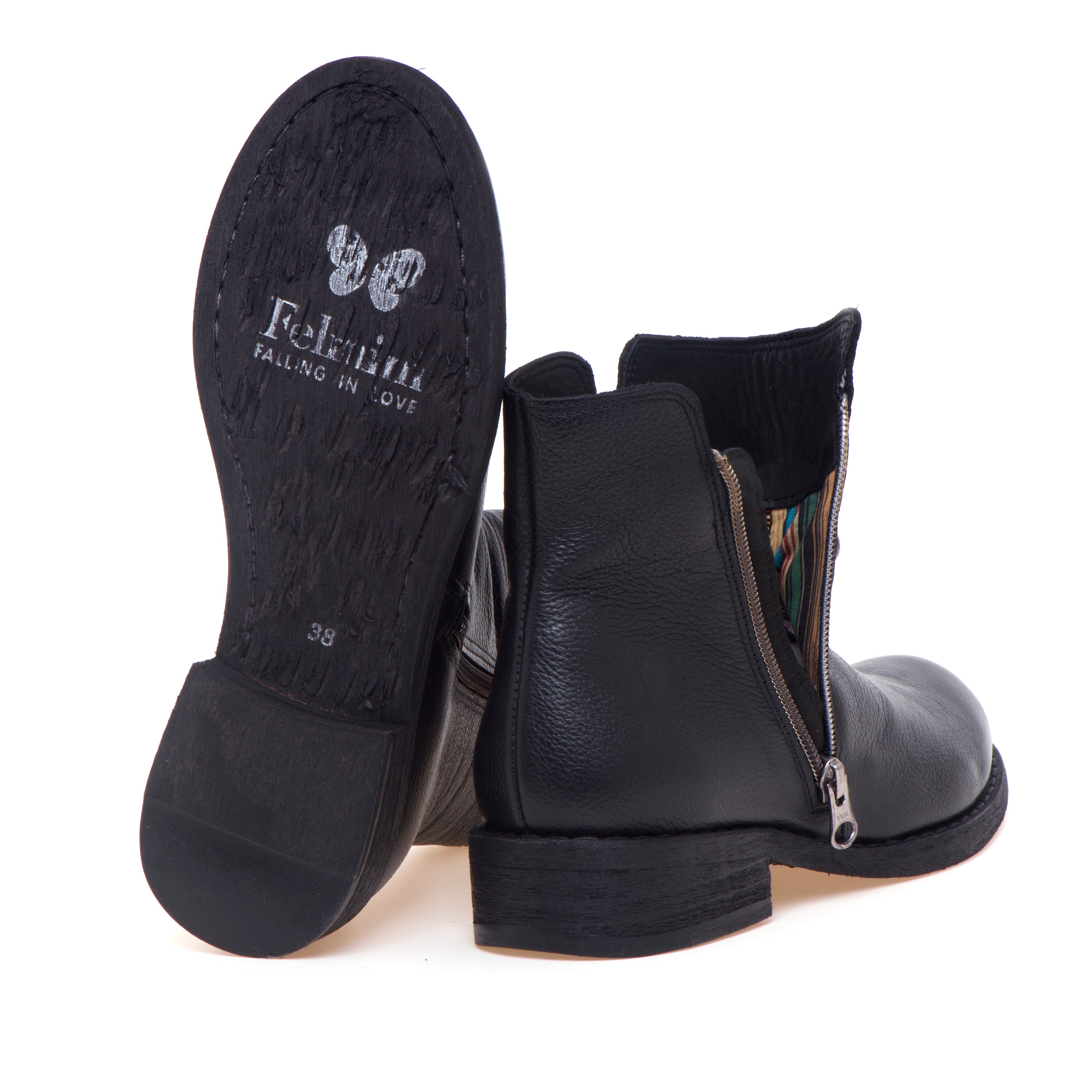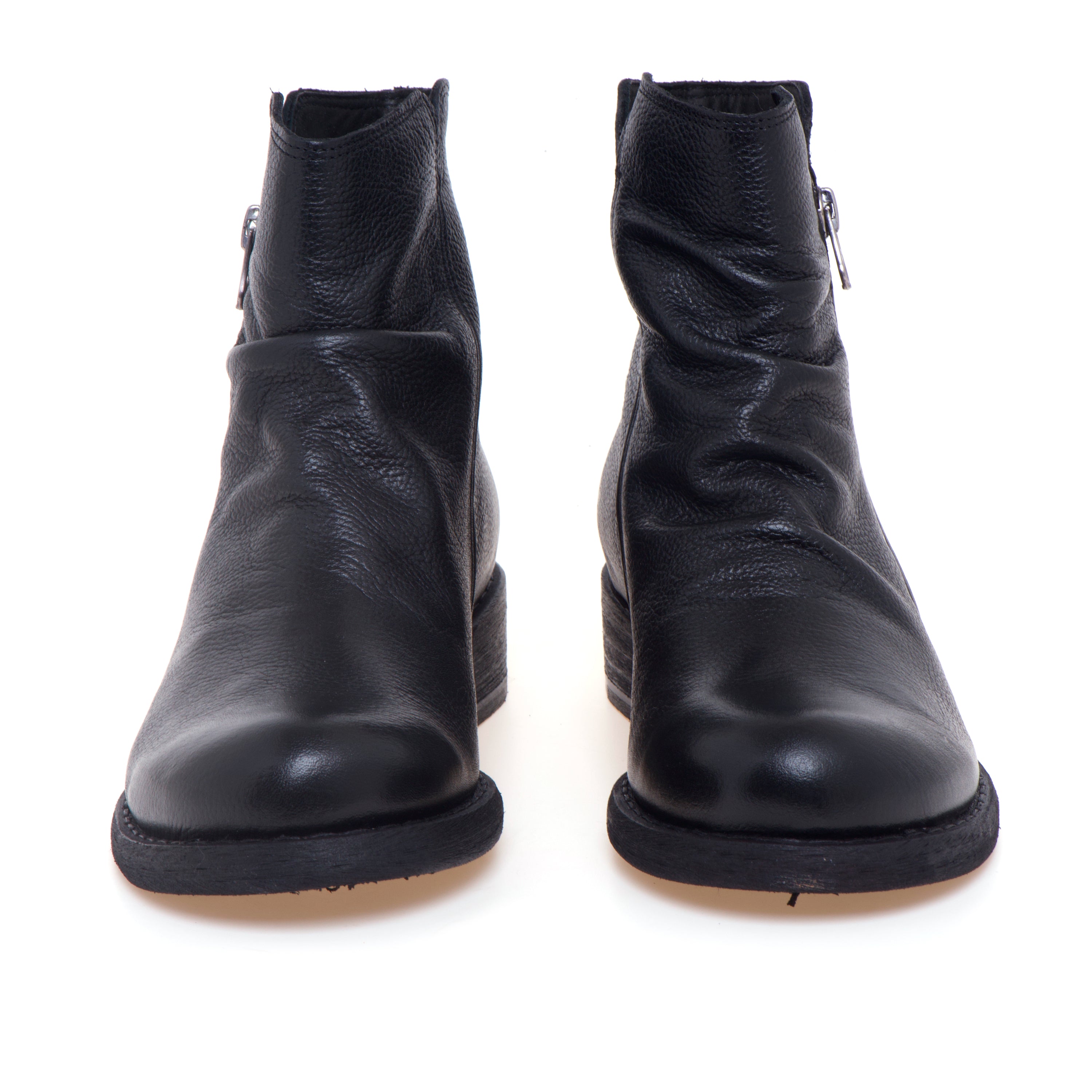 Tronchetto Felmini in pelle dal carattere essenziale, definito dalla pelle arricciata sul collo del piede che dona movimento alla tomaia. La forma arrotondata favorisce una calzata confortevole anche per l’uso prolungato, mentre la zip funzionale sul lato esterno rende l’indosso rapido e pratico. Interni curati con fodera in tessuto e sottopiede in pelle; la suola in gomma assicura stabilità e grip per la routine quotidiana.