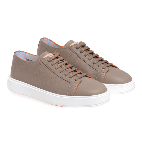 Hammered leather sneaker with orang...
