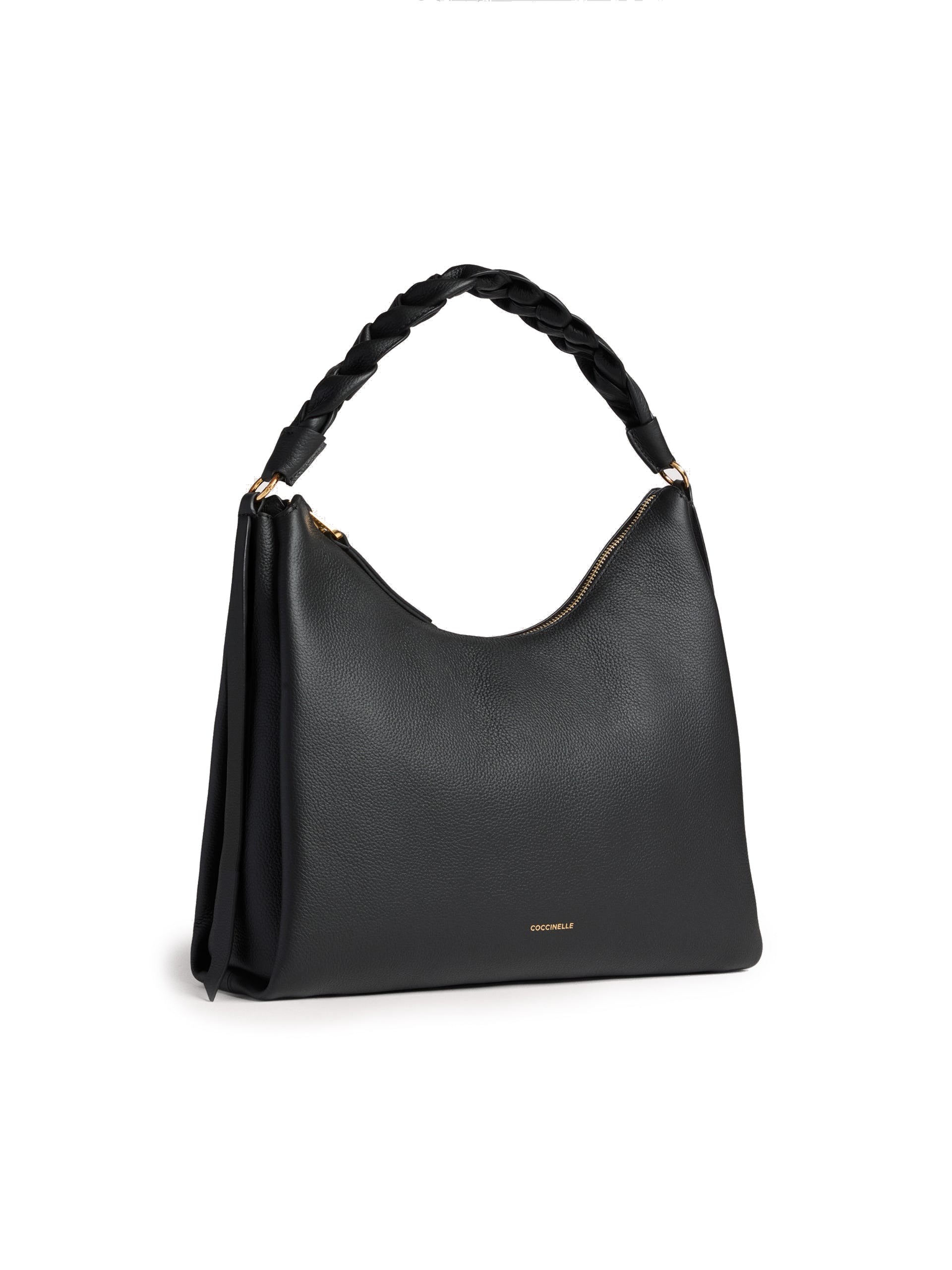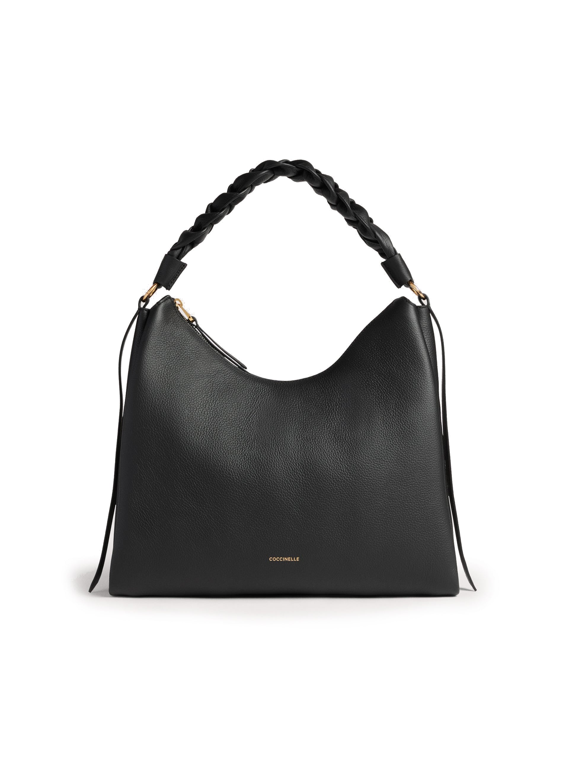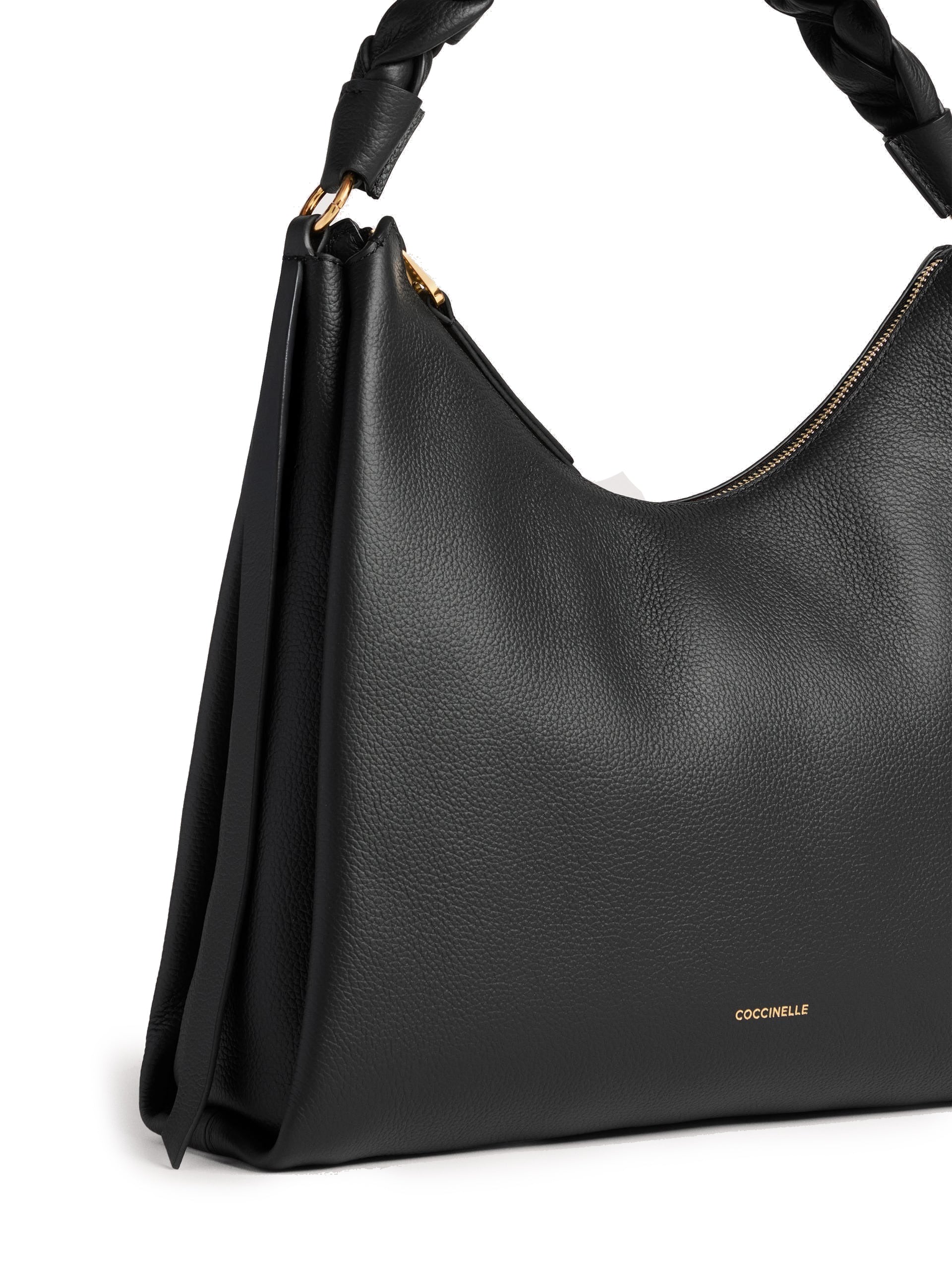 Il pellame martellato valorizza i volumi morbidi e mantiene un aspetto ordinato anche nell’uso quotidiano, mentre l’apertura superiore con zip custodisce gli effetti personali con praticità. Le proporzioni sono studiate per l’uso urbano, con un formato medio che accoglie l’indispensabile senza rinunciare alla leggerezza visiva tipica del design Coccinelle.