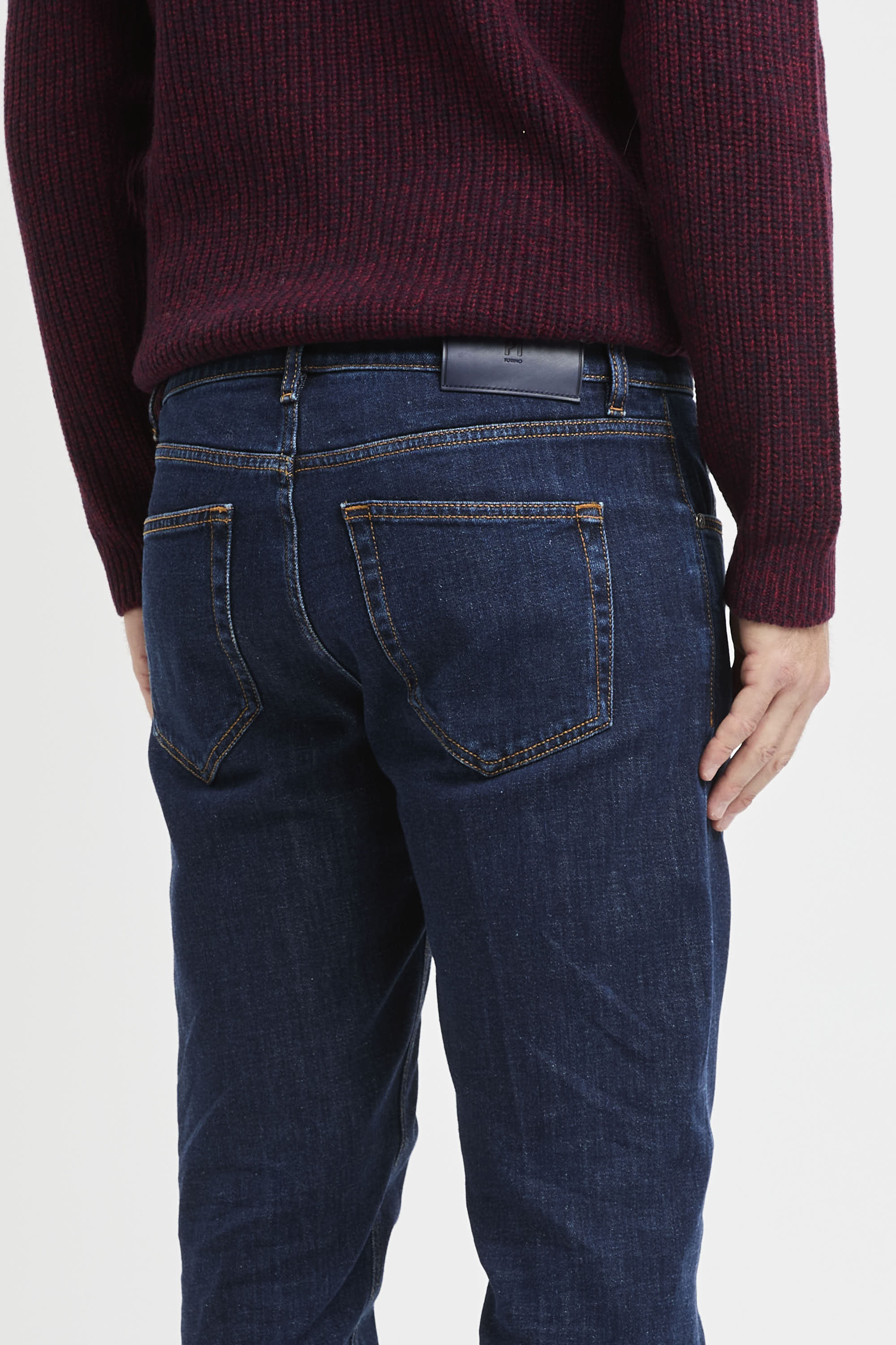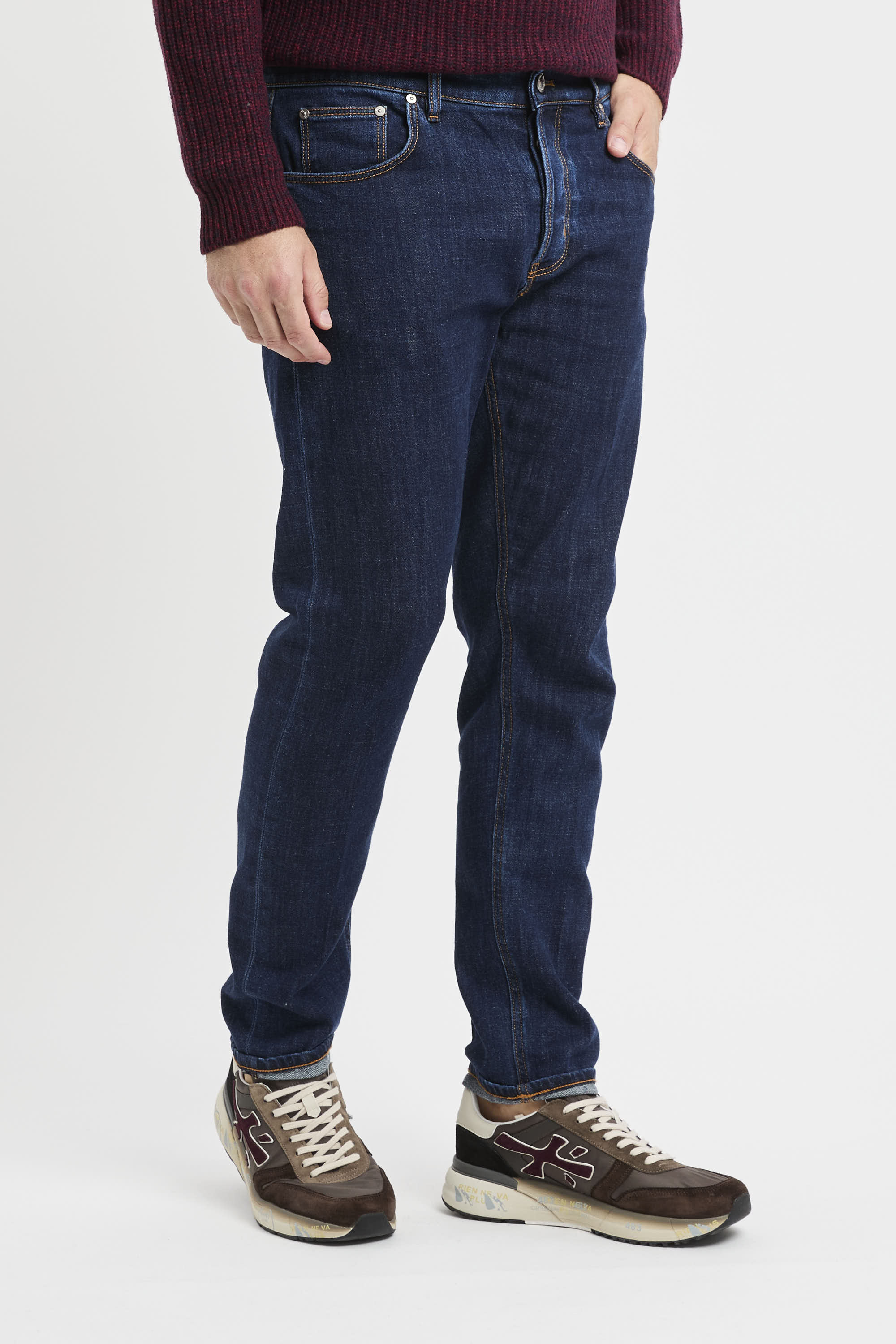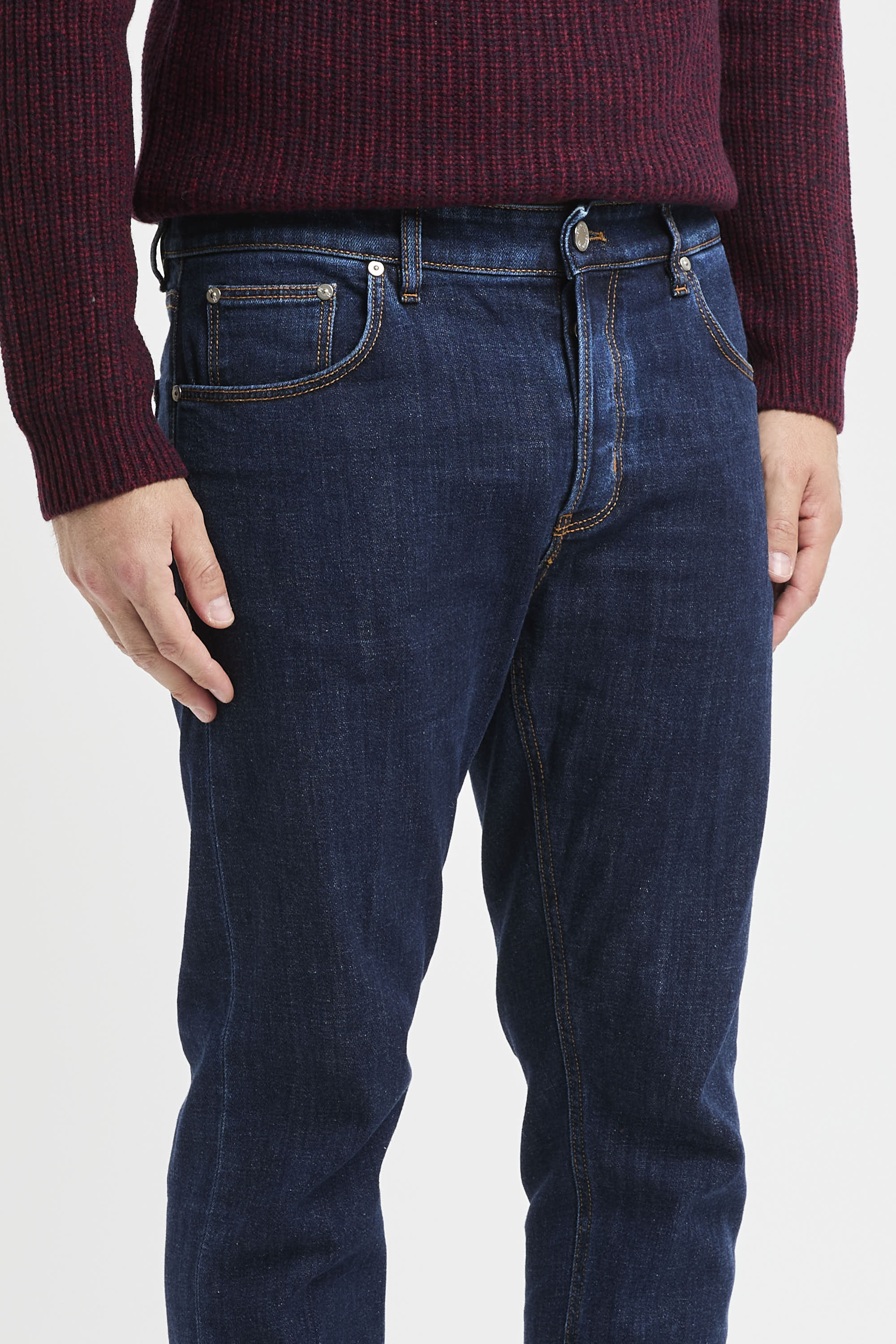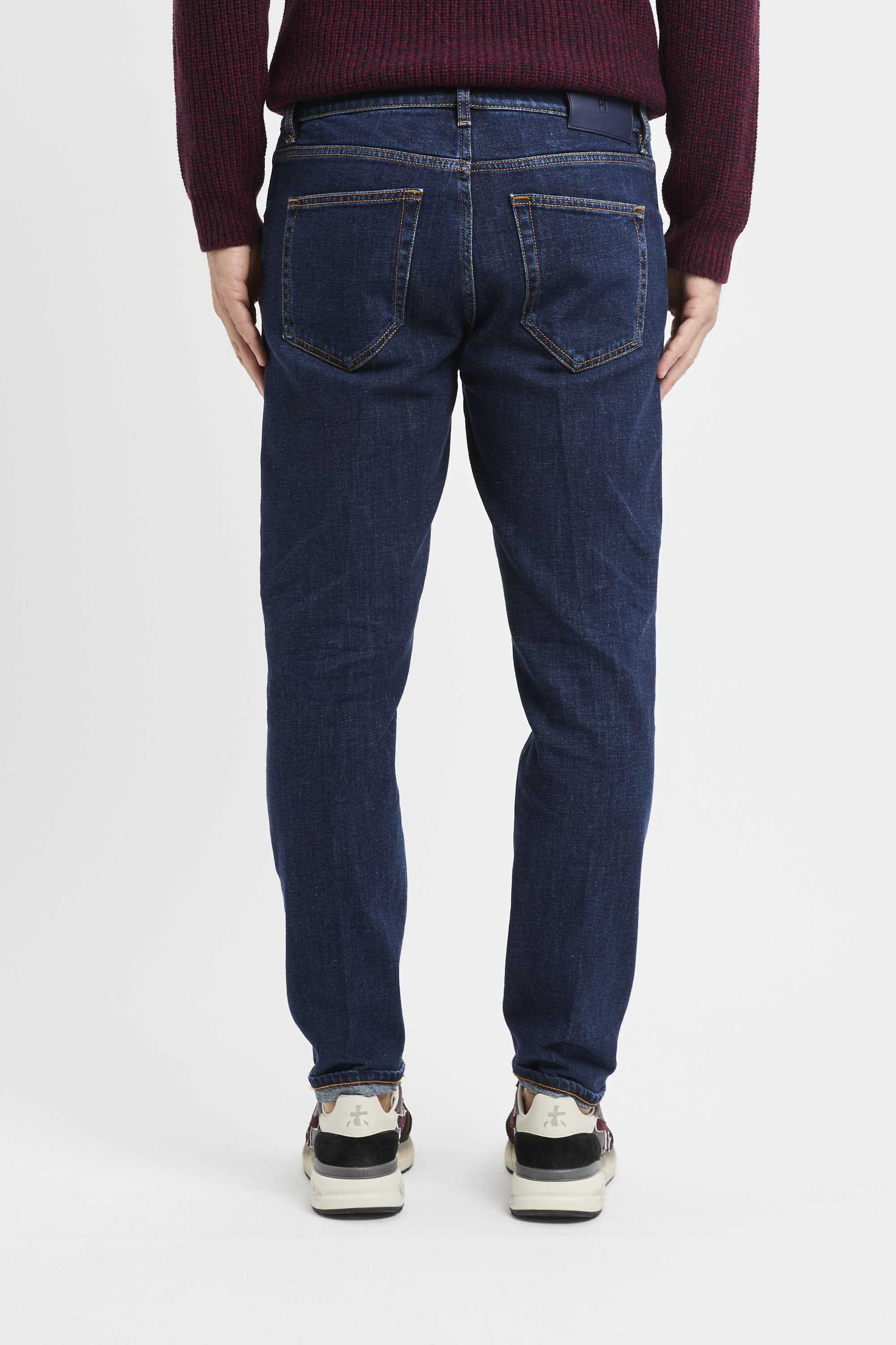 Equilibrio tra pulizia estetica e praticità quotidiana per i jeans PT in denim blu elasticizzato dal fit tapered.