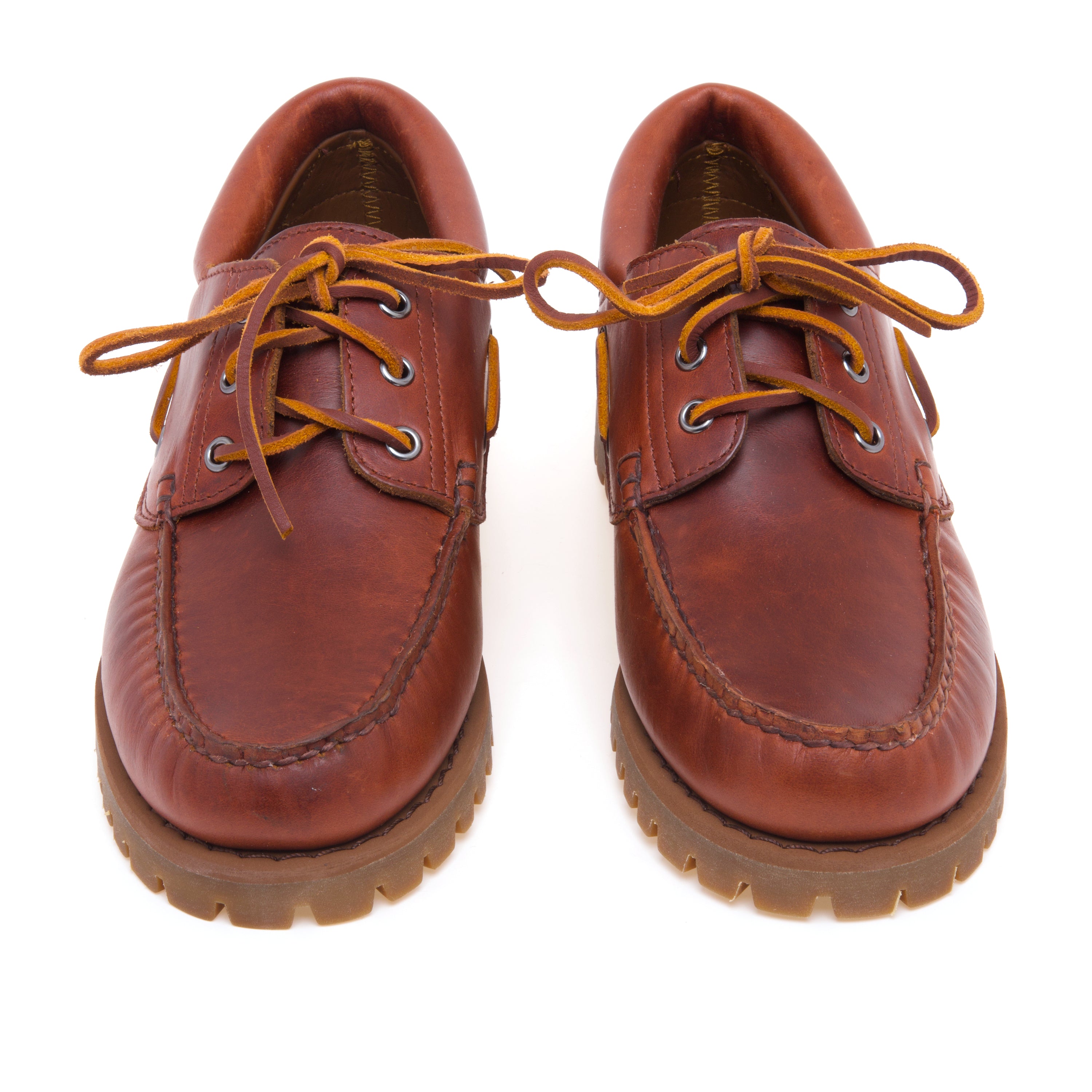 Sebago Acadia è un mocassino allacciato solido e affidabile, pensato per affrontare con stile fondi e climi diversi. La tomaia in pelle conciata a caldo, trattata con una ricca combinazione di oli e cere, sviluppa una naturale lucidatura nel tempo; la costruzione cucita a mano sottolinea la cura artigianale.