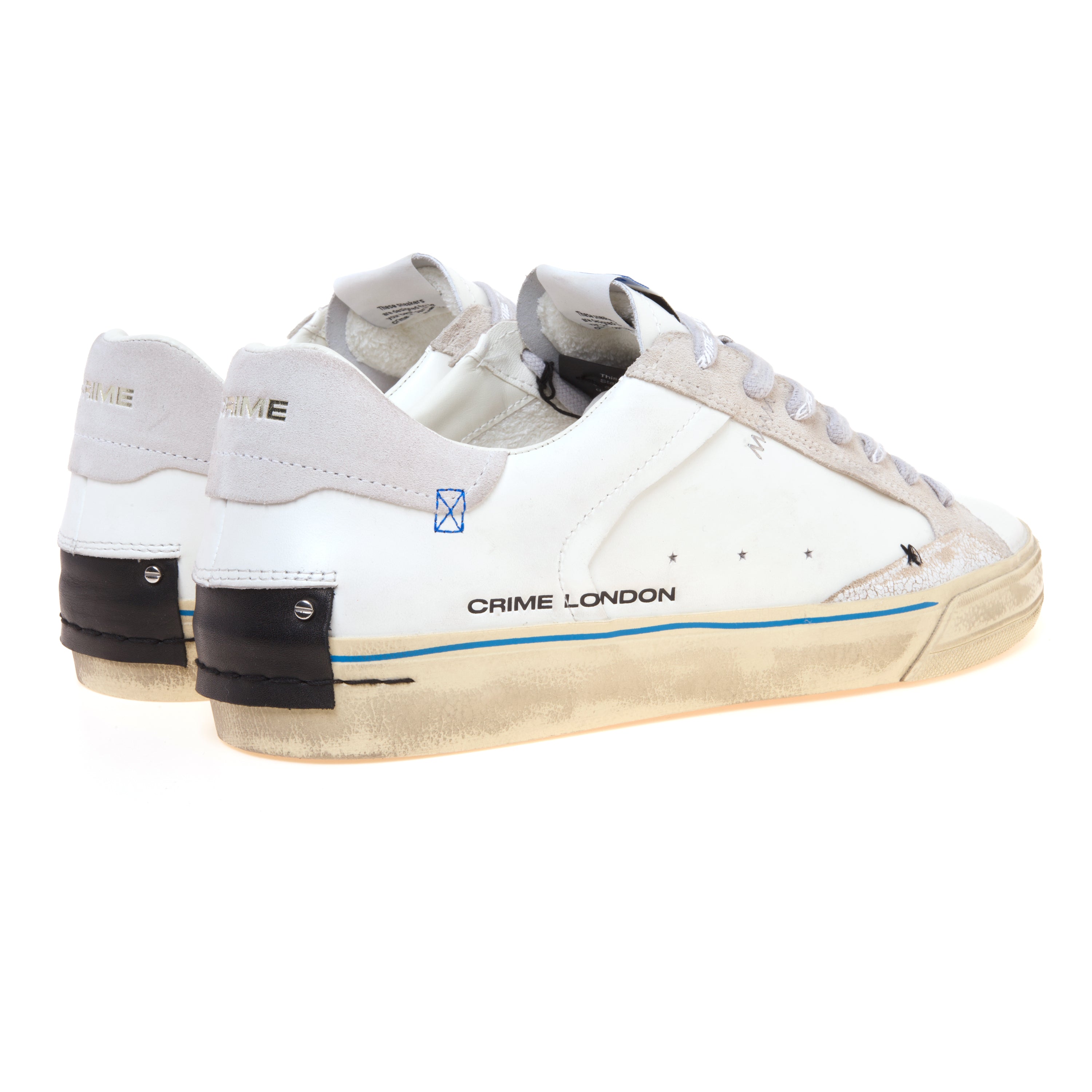La sneaker è rifinita con suola fasciata beige in gomma con fondo color miele, con altezza di circa 2,5–3 cm, caratterizzata dal tipico effetto vintage che contraddistingue molte collezioni Crime London. La vestibilità regular rende questo modello facilmente abbinabile a look casual e urbani.