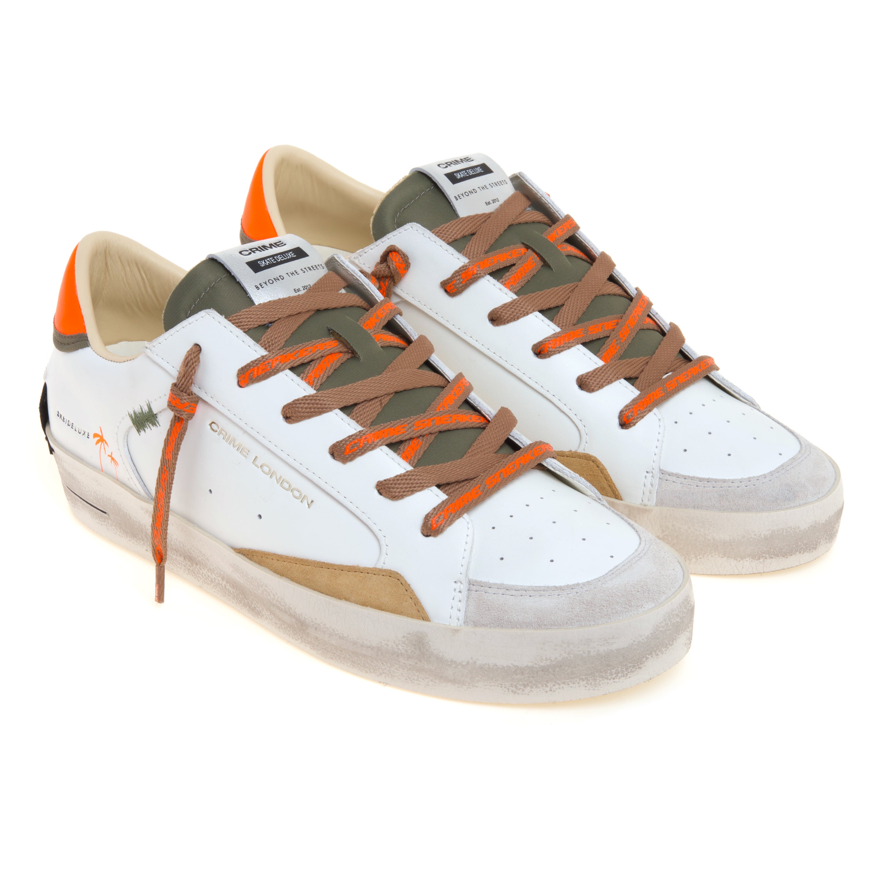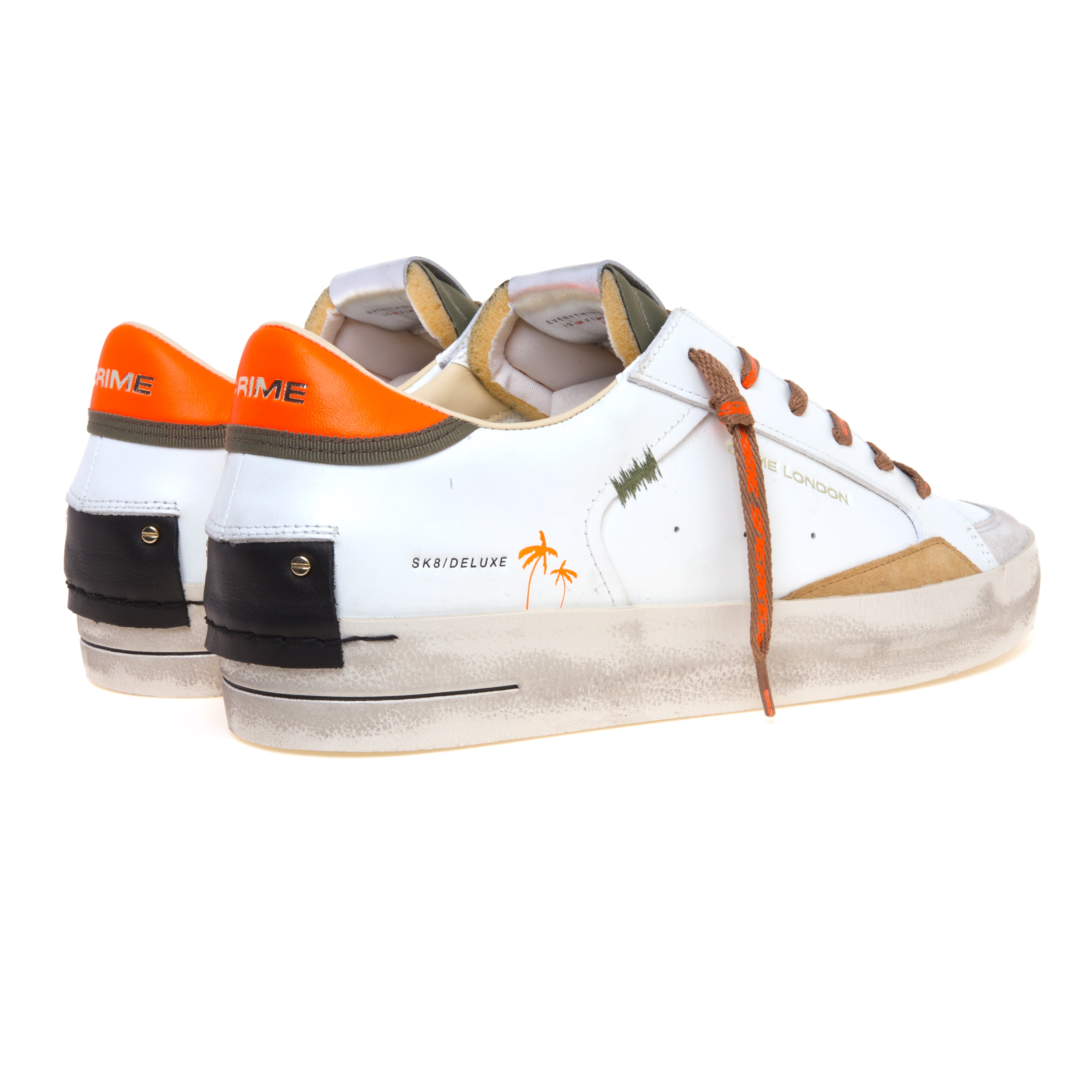 crime london Sneaker Crime London SK8 Deluxe in pelle con dettagli arancio fluo, ambra e militare