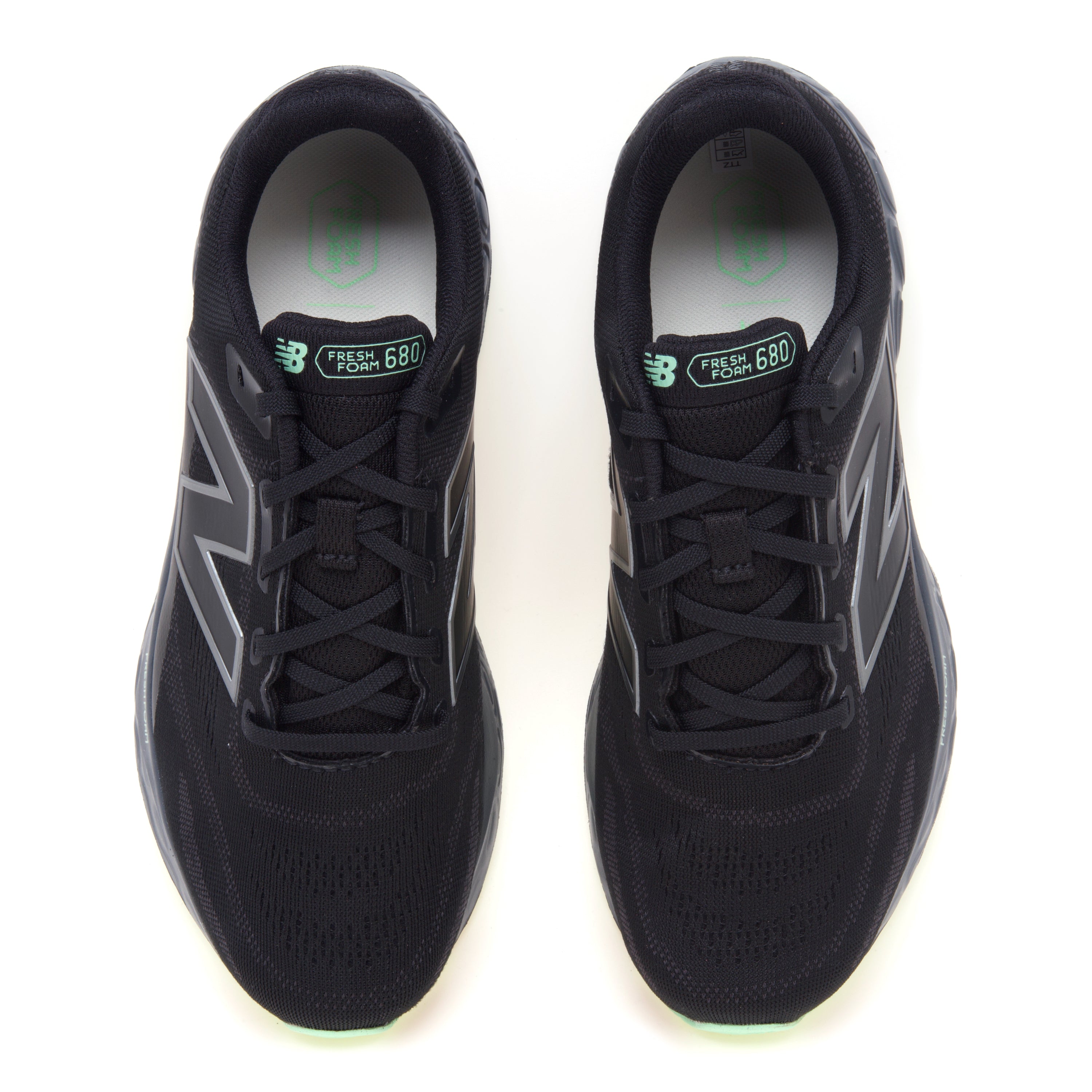 Sneaker da running New Balance 680 in tessuto waterproof con dettagli a contrasto color antracite e verde menta.