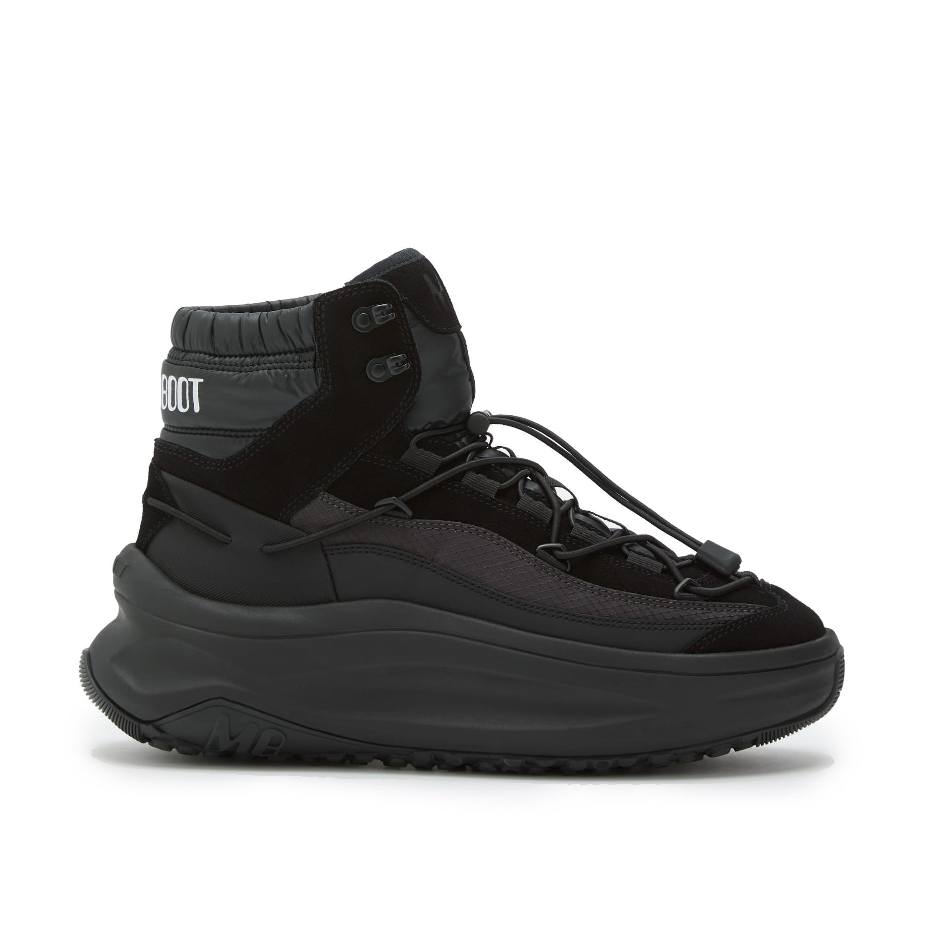 Moon Boot Moon247 Xlace Mid in nero è la sneaker-boot mid-cut che porta il DNA space-age del brand su un terreno più urbano.