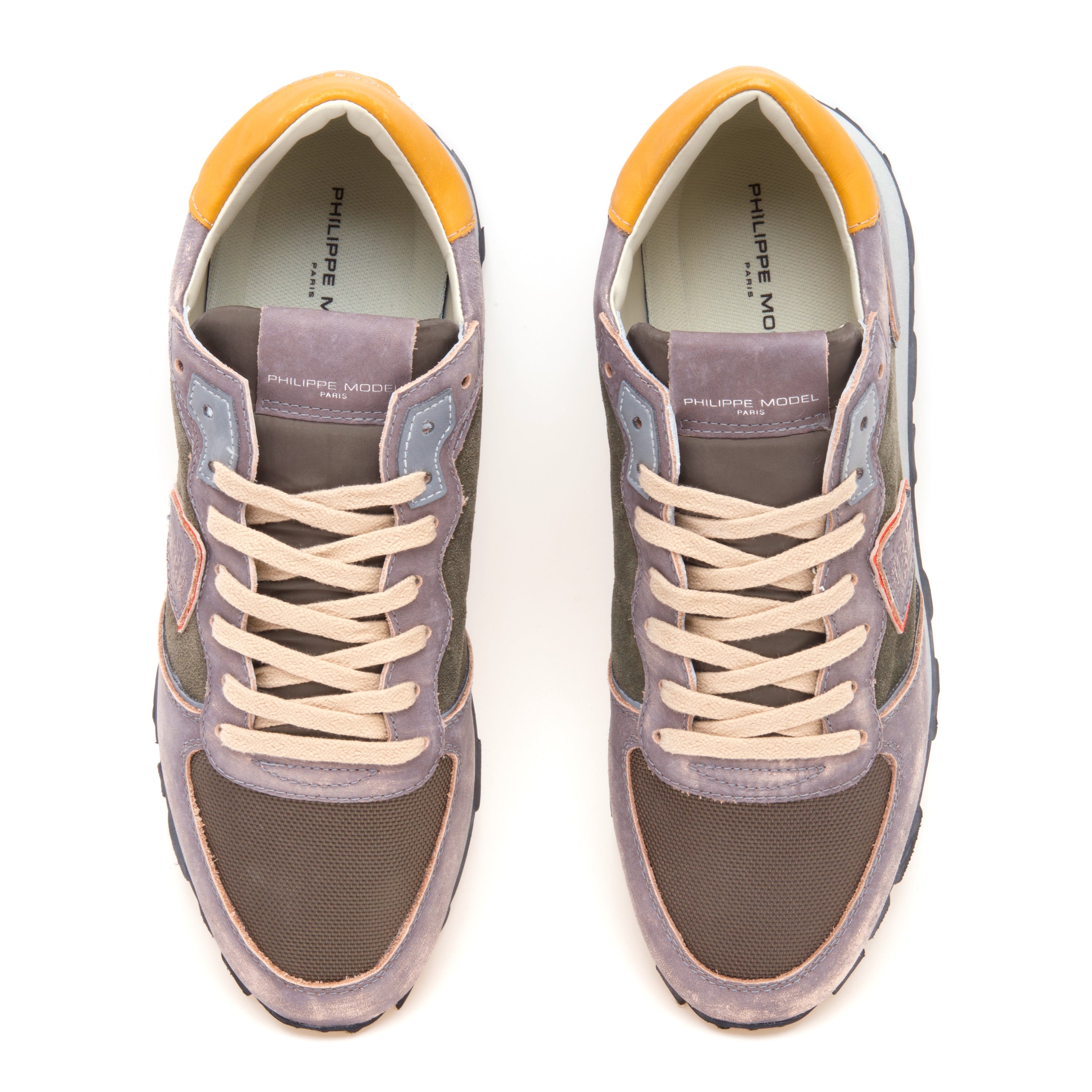 All’interno, la fodera in pelle e spugna di cotone e il sottopiede imbottito estraibile accompagnano il passo senza appesantire il design, fedele al codice Philippe Model.