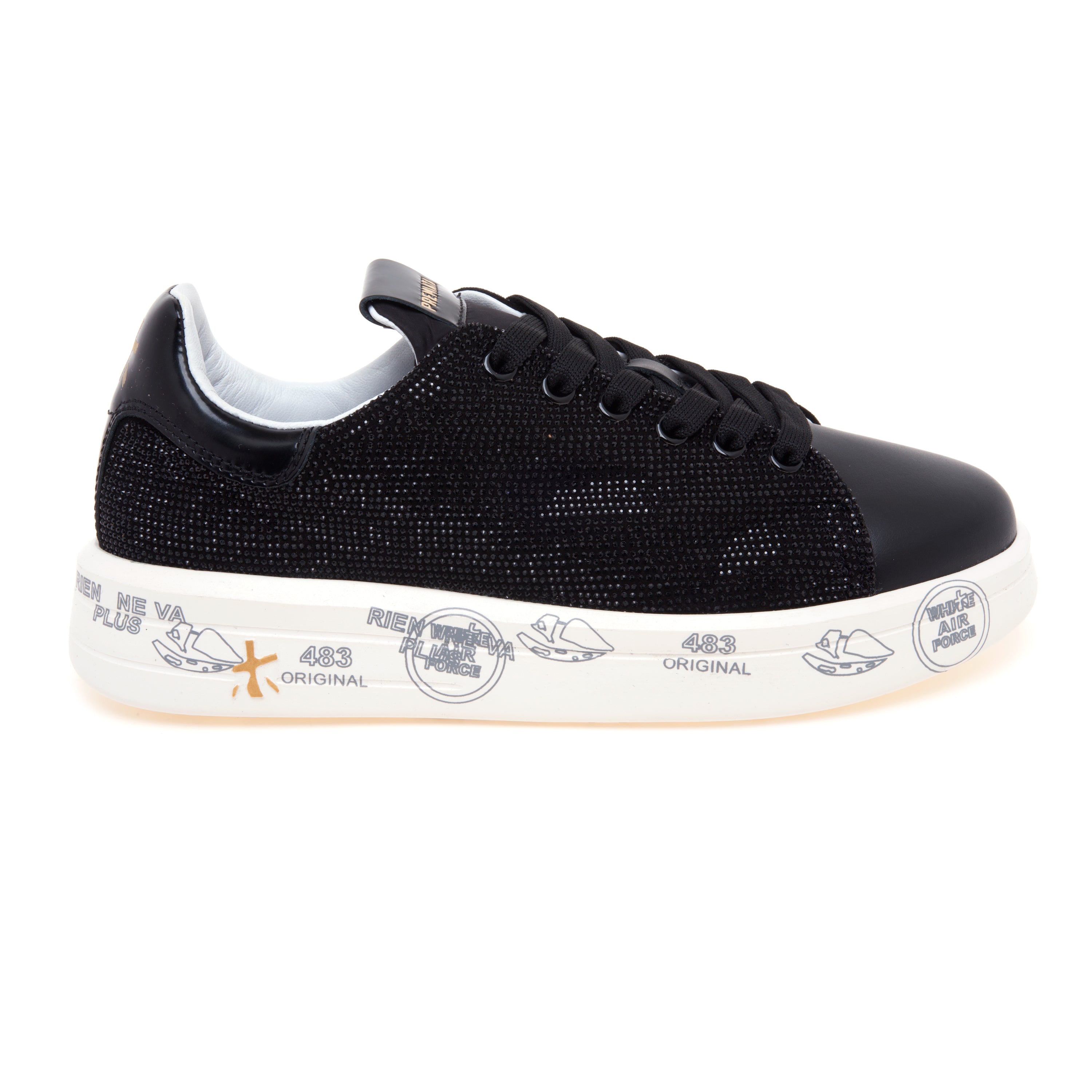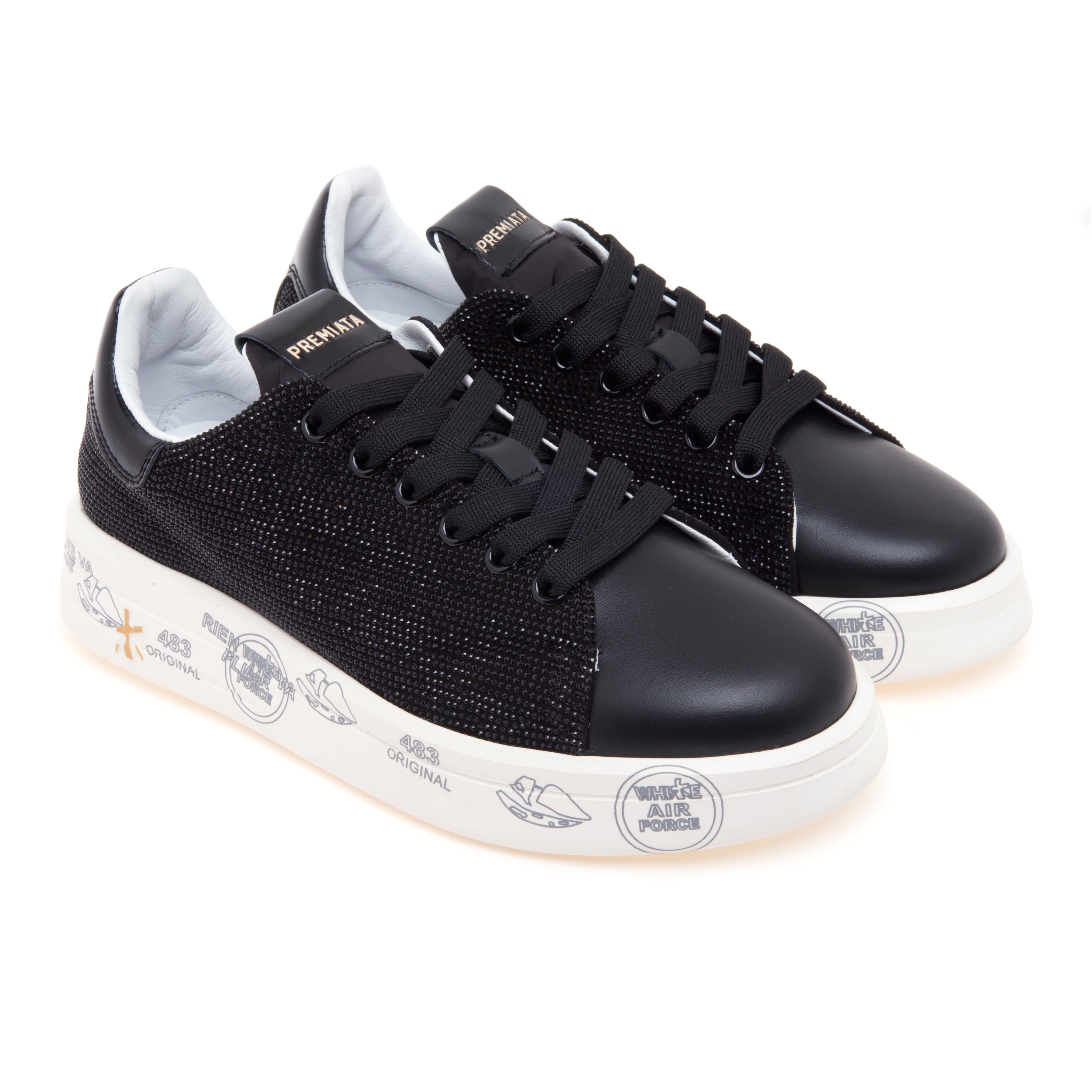 La nuova sneaker Belle, in questa versione full-strass, incarna perfettamente lo stile sporty-chic dei modelli Premiata garantendo una gran versatilità negli abbinamenti e nell'utilizzo, sia in ufficio sia nel tempo libero.