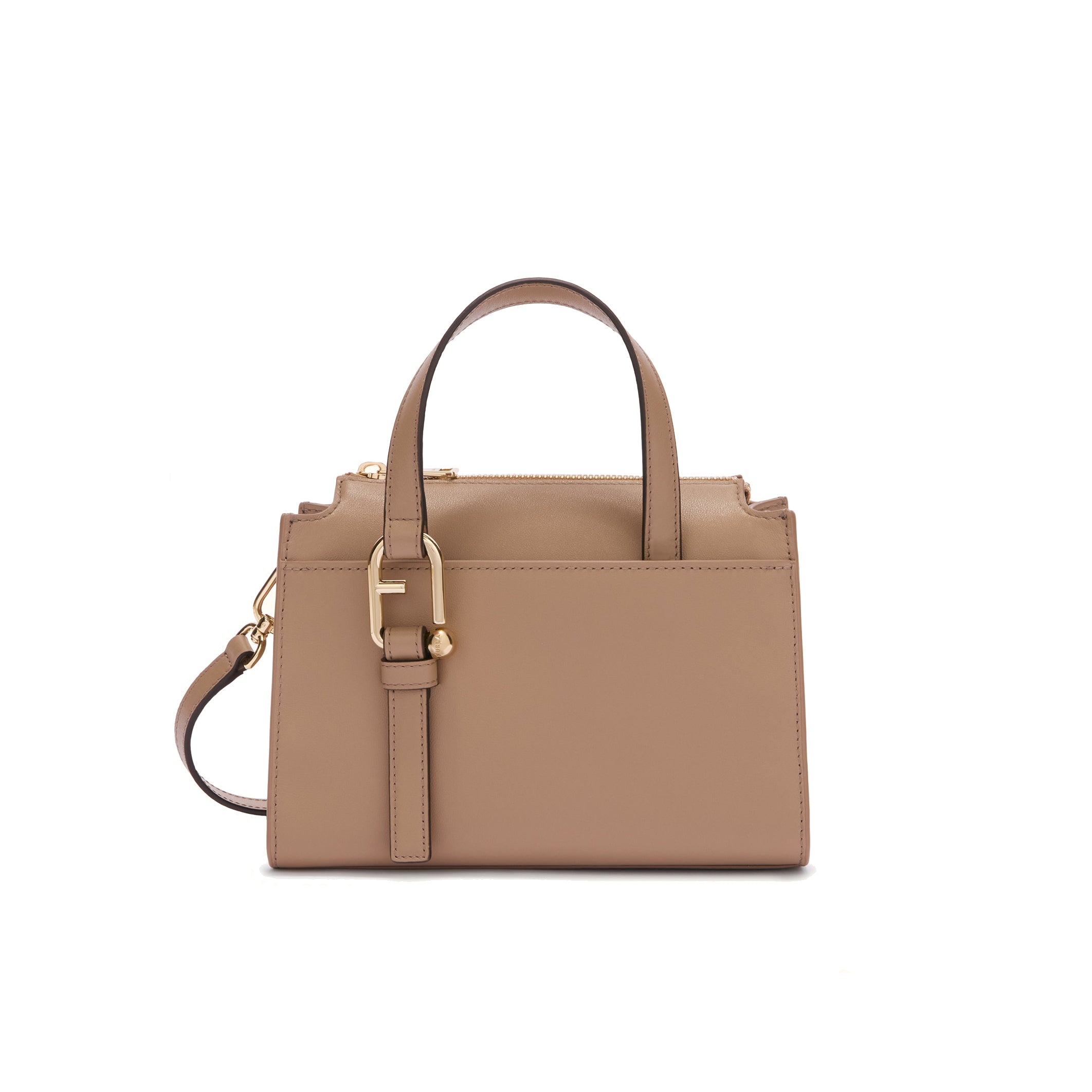 Il tocco unico è dato dall'hardwear Arcosfera sul manico frontale, che unisce l'iconico logo Arco Furla all'elemento rotondo, simbolo distintivo del brand.
