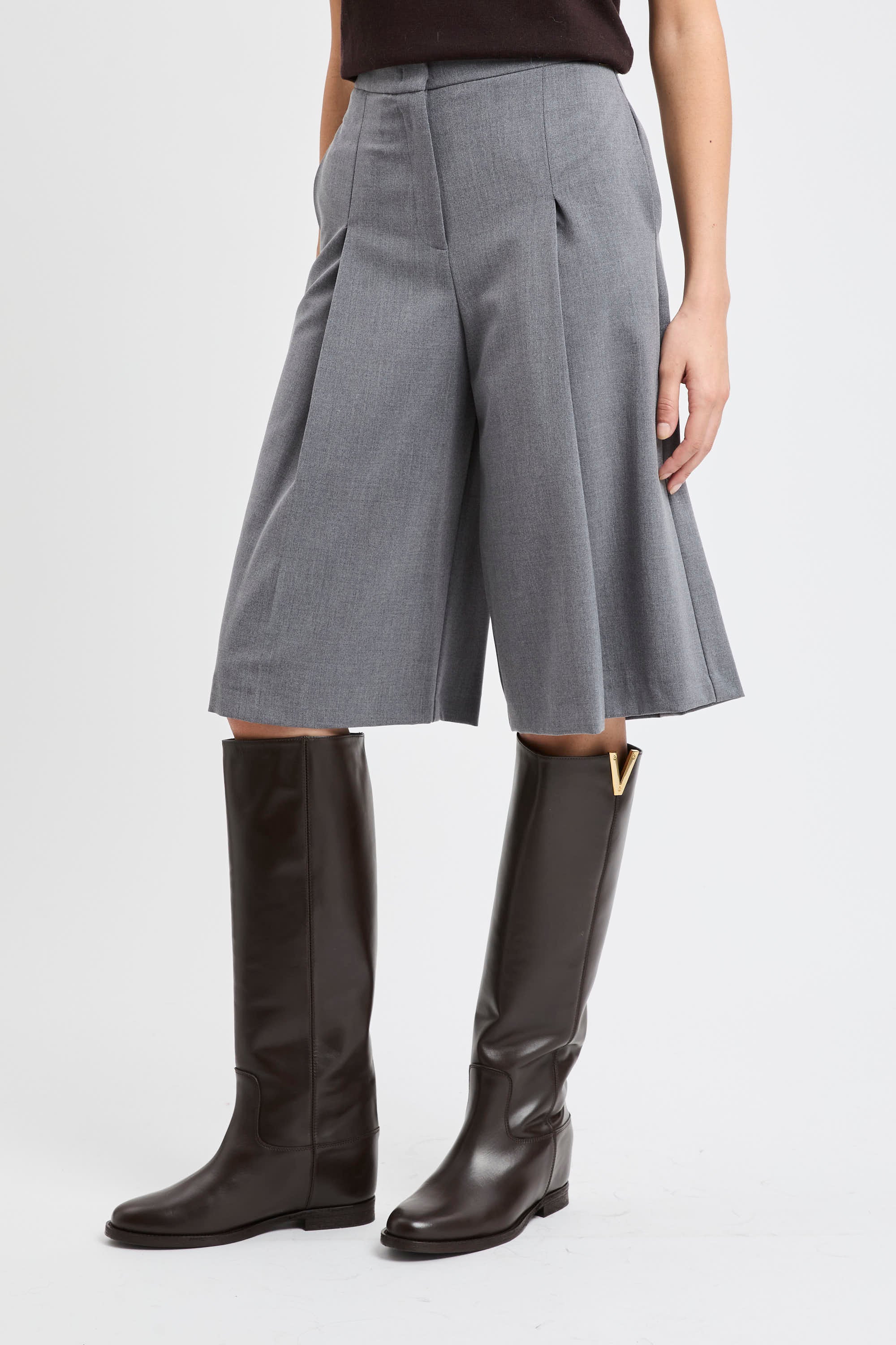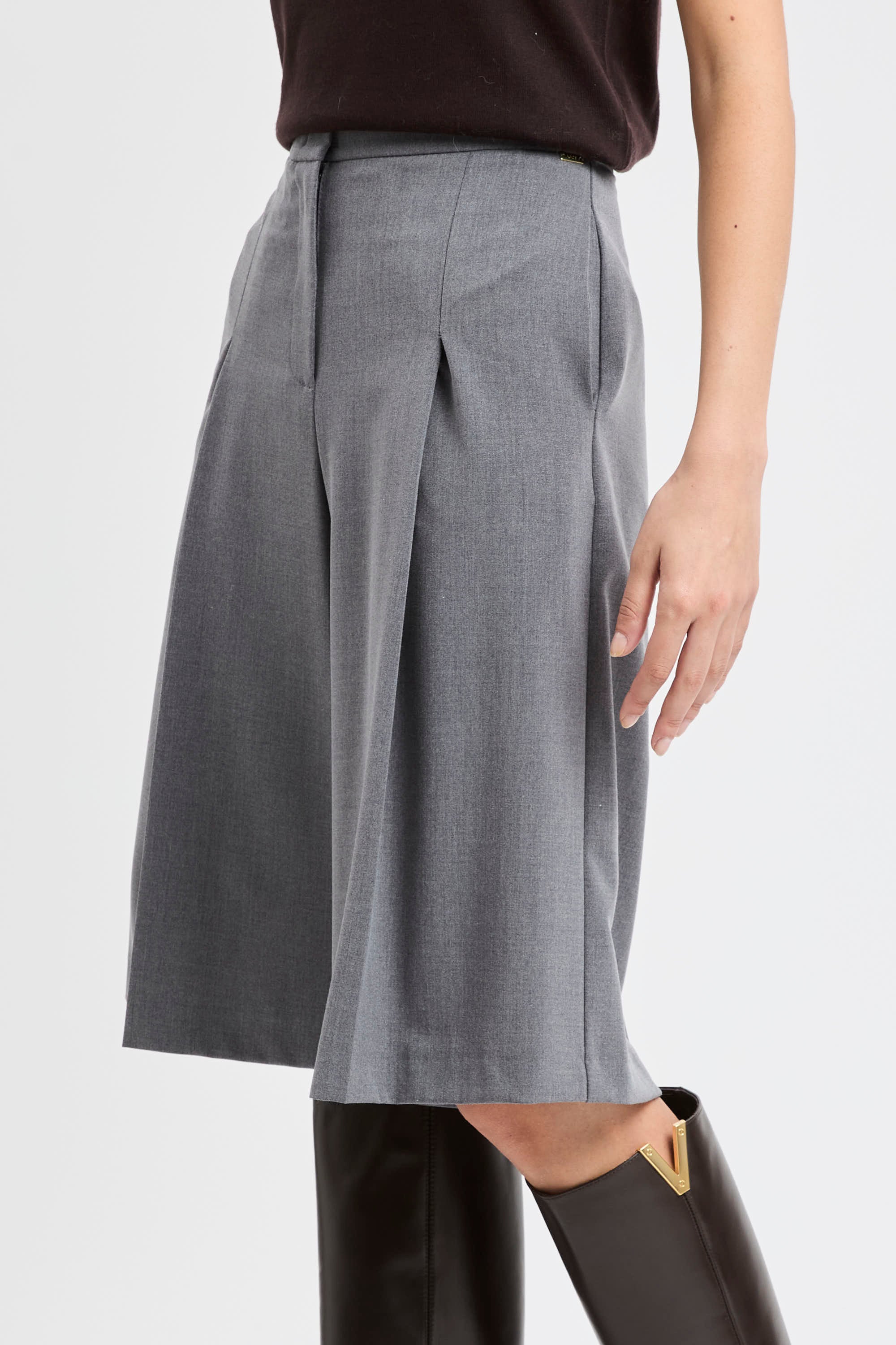 La mano compatta del tessuto — con una punta di elastan —assicura comfort e tenuta della forma. Made in Italy.