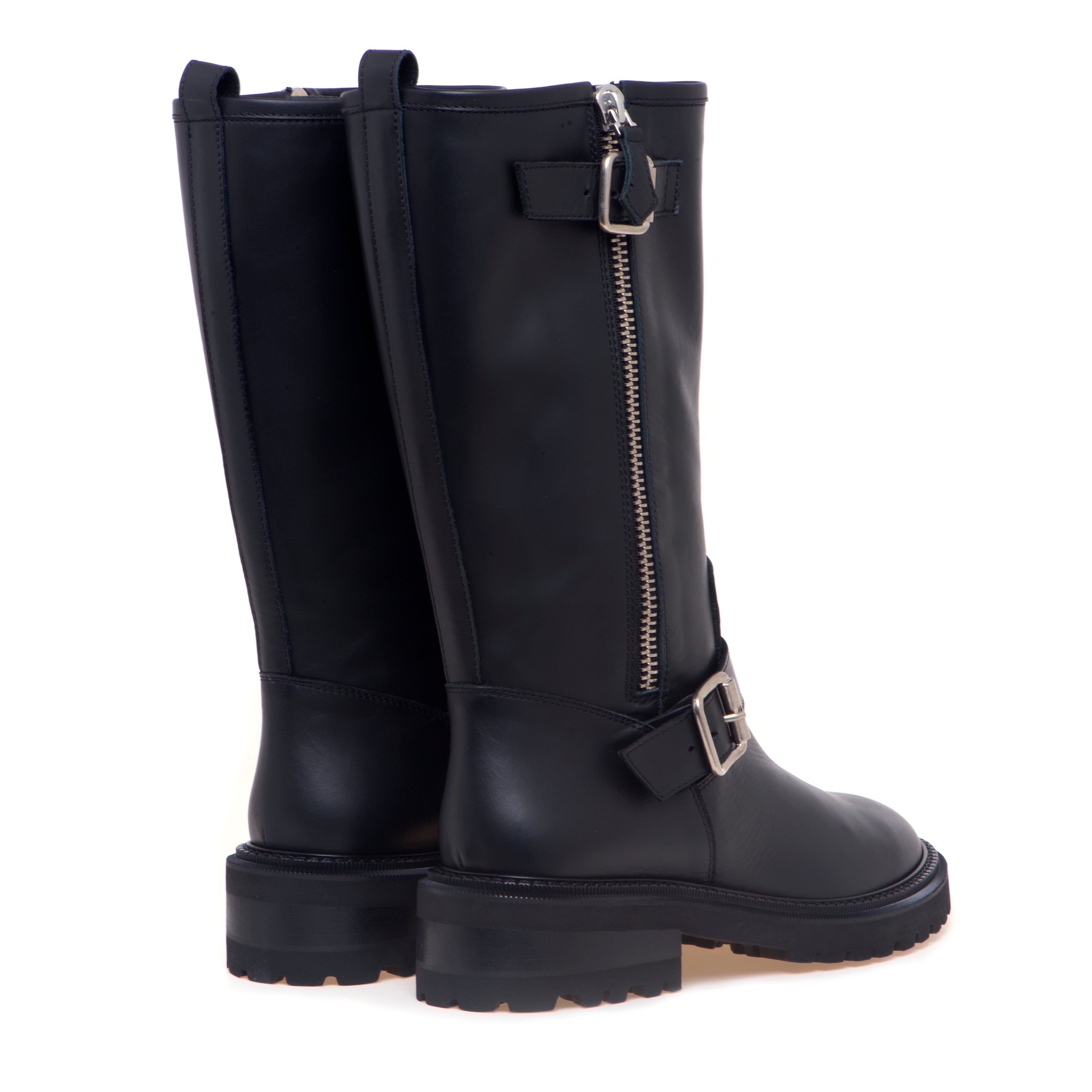 Biker Via Roma 15 in pelle con doppio cinturino e maxi soffiettone con zip