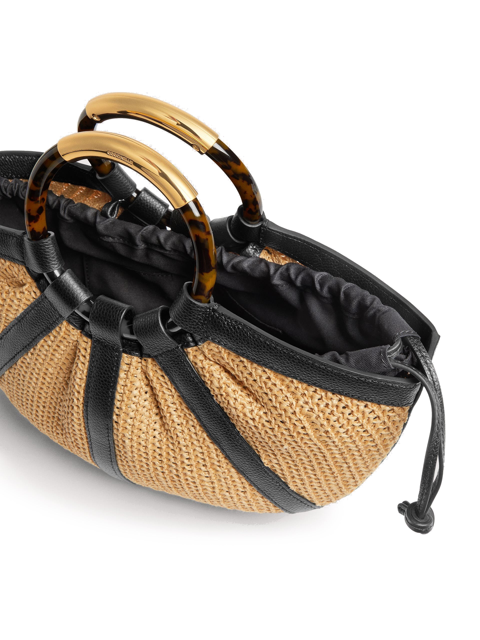Coccinelle Shell Medium è una borsa a mano dal design originale e ispirato alla natura, caratterizzata da una forma che rimanda alla delicata struttura di una conchiglia. La combinazione di paglia e pelle con micro grana definisce una texture ricca e materica, che conferisce al modello un carattere estivo e contemporaneo adatto a molteplici outfit casual-chic.
