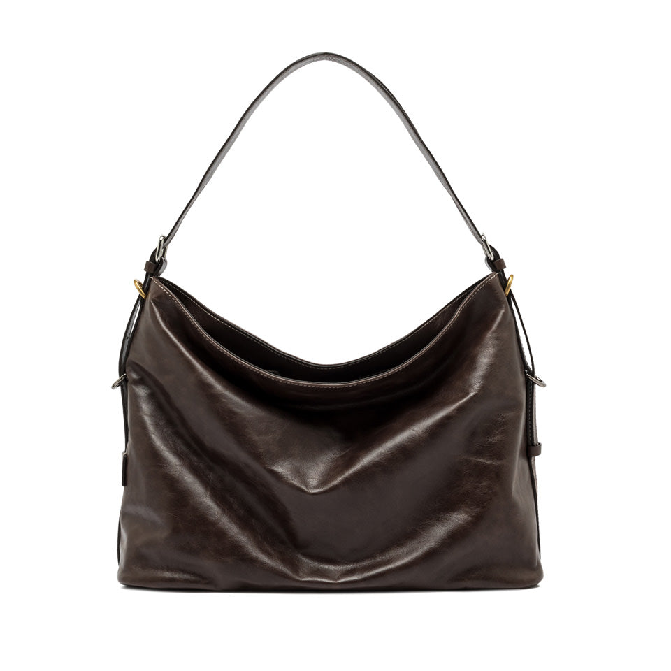 Il manico regolabile consente di portarla comodamente a spalla adattandosi alle diverse esigenze. Un accessorio dal carattere deciso e senza tempo, perfetto per completare look quotidiani o più raffinati.