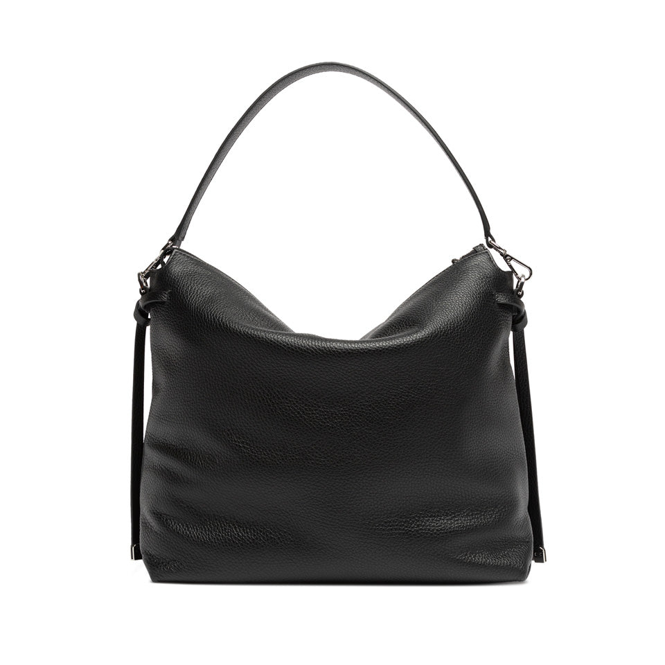 # Manico in pelle + tracolla regolabile e removibile per portabilità a spalla o crossbody.