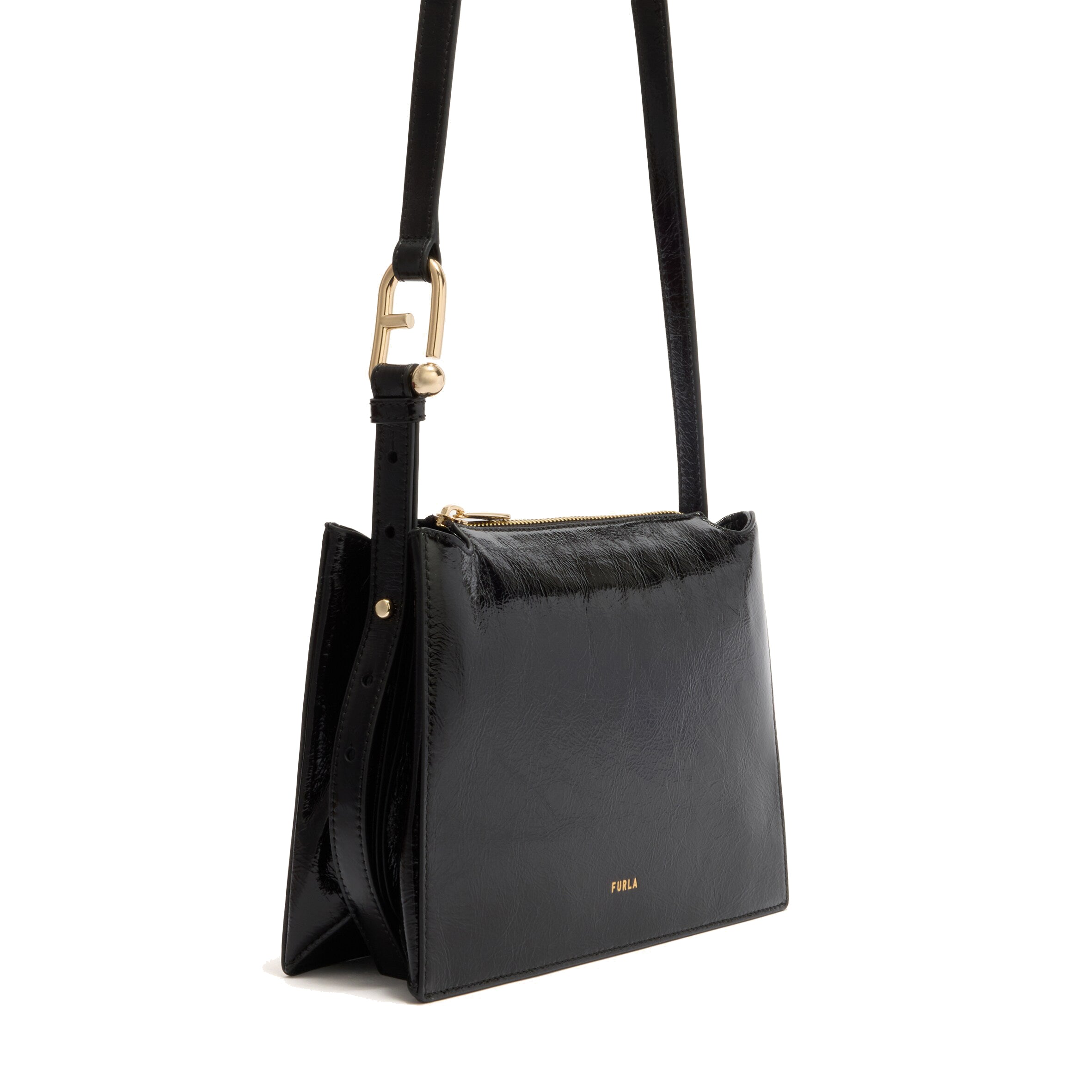 Furla Nuvola è la crossbody compatta che unisce linee geometriche squadrate e una lavorazione in pelle verniciata dall’aspetto morbido.