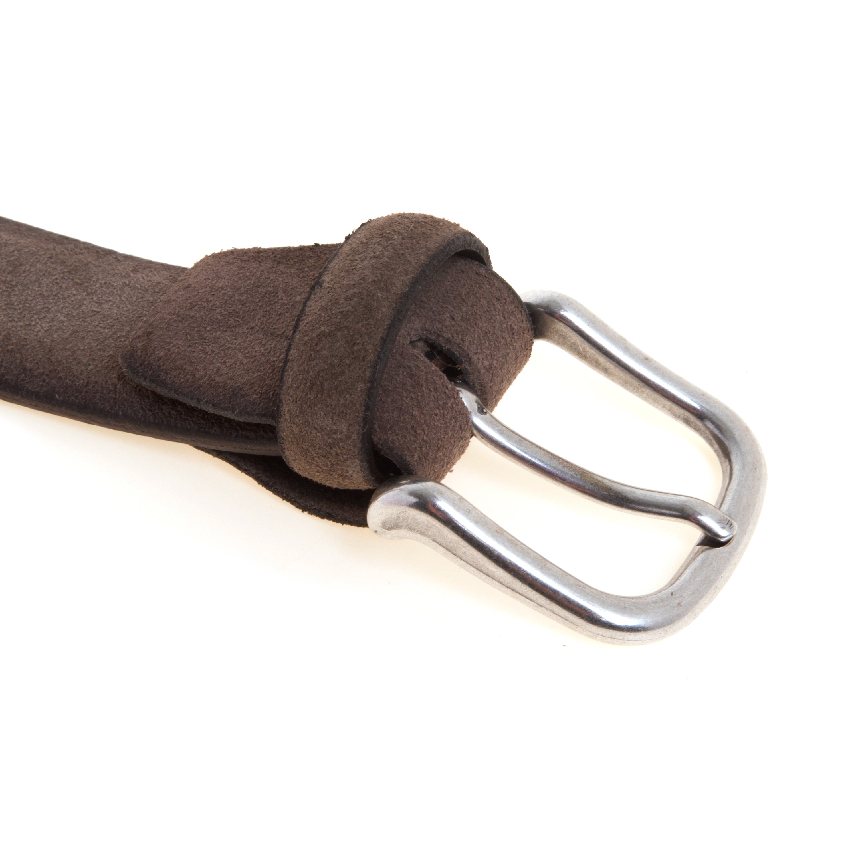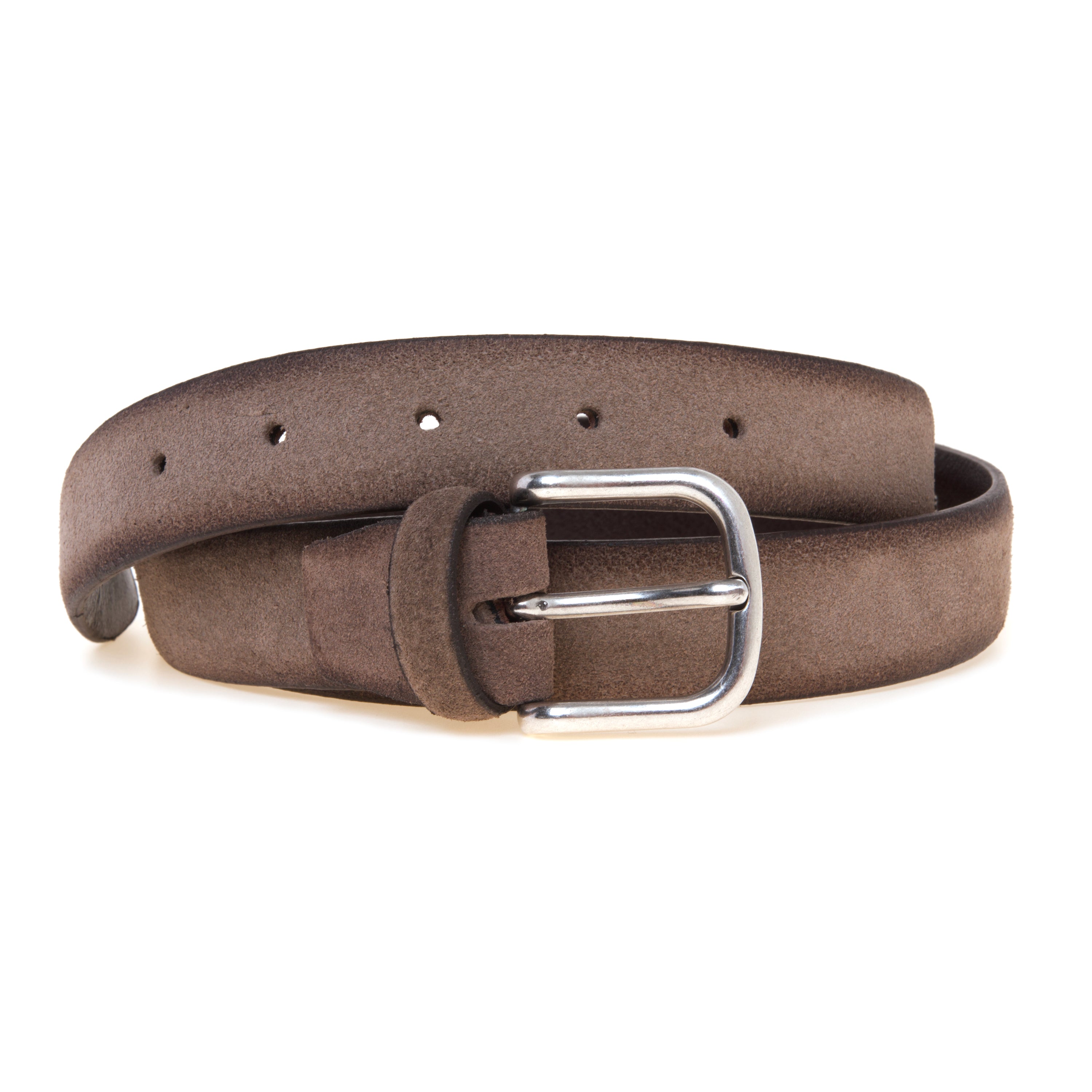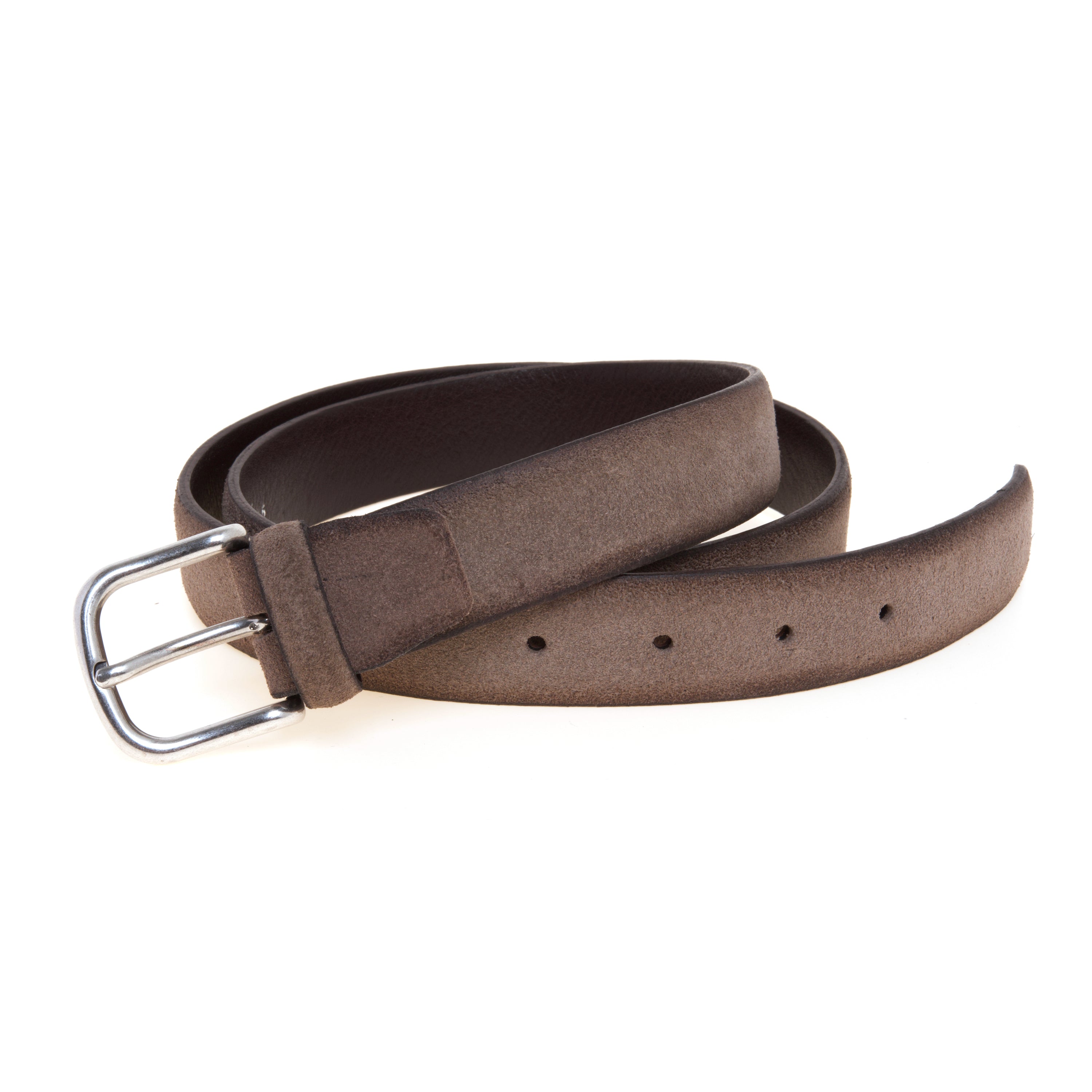 Realizzata in camoscio con bordi leggermente anticati, si distingue per il delicato contrasto cromatico che dona profondità e un raffinato effetto vissuto. La fibbia in metallo, sobria e resistente, completa il design mantenendo un’estetica minimale e facilmente abbinabile. Con un’altezza di 30 mm, questa cintura si adatta perfettamente sia a look casual sia a outfit più curati. La presenza della vite sul retro consente di accorciarla con facilità, garantendo una vestibilità personalizzata e precisa. Interamente realizzata in Italia, esprime l’eccellenza artigianale e la cura dei materiali che contraddistinguono il brand.