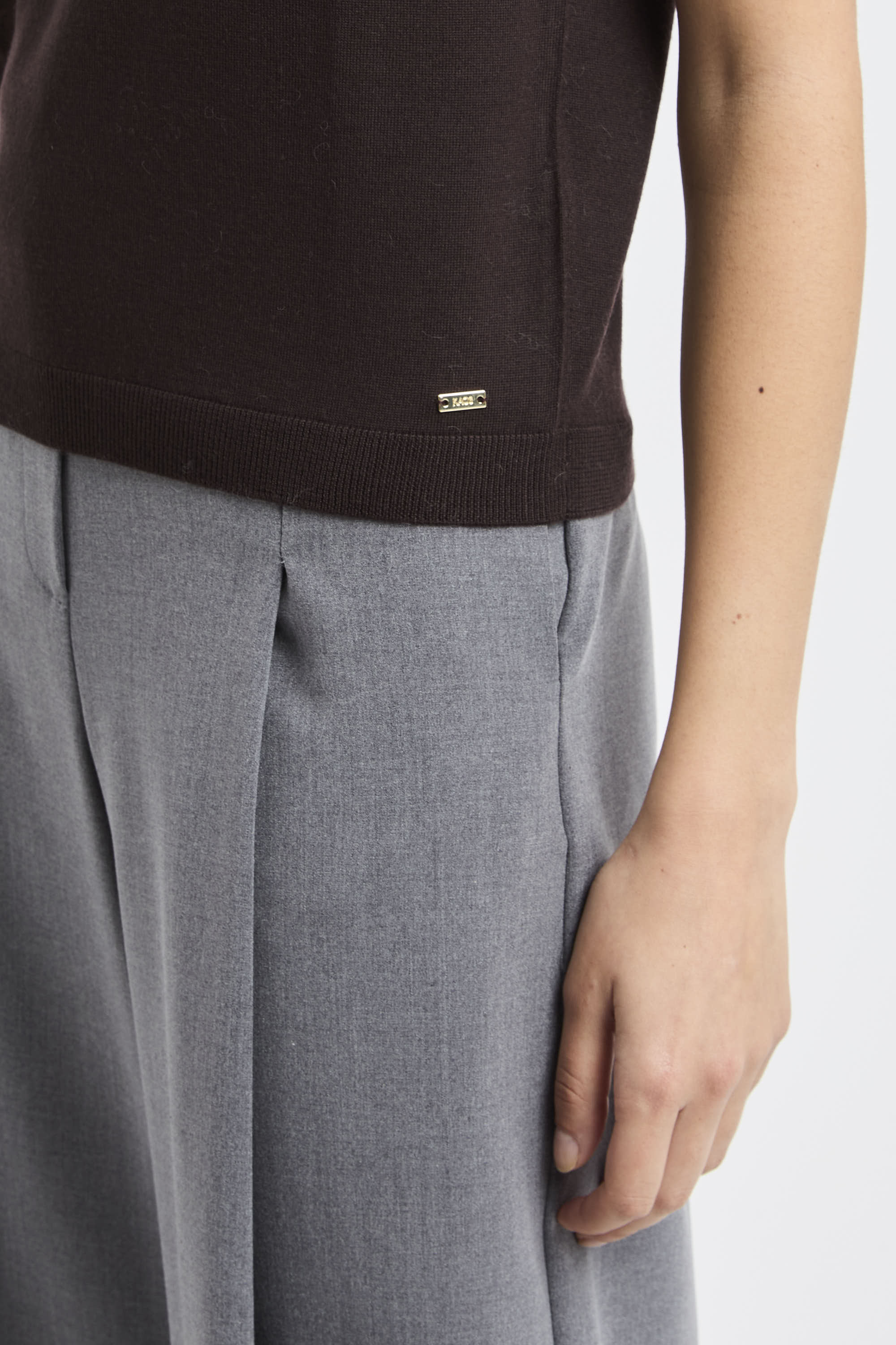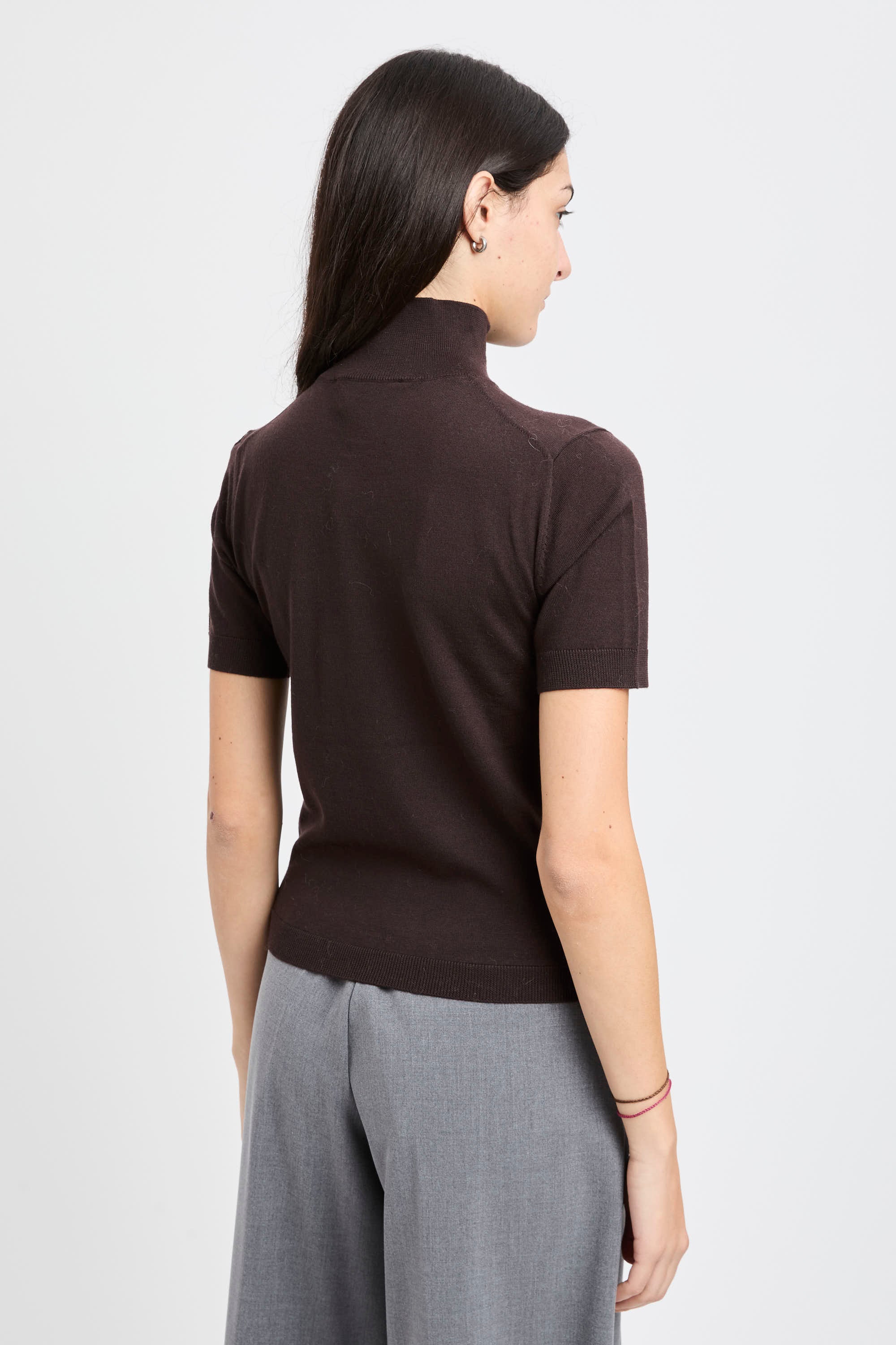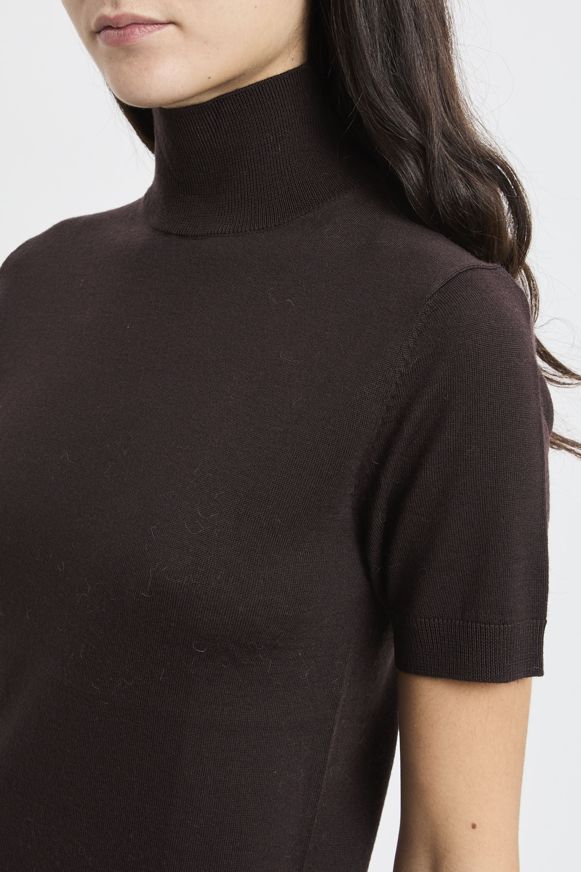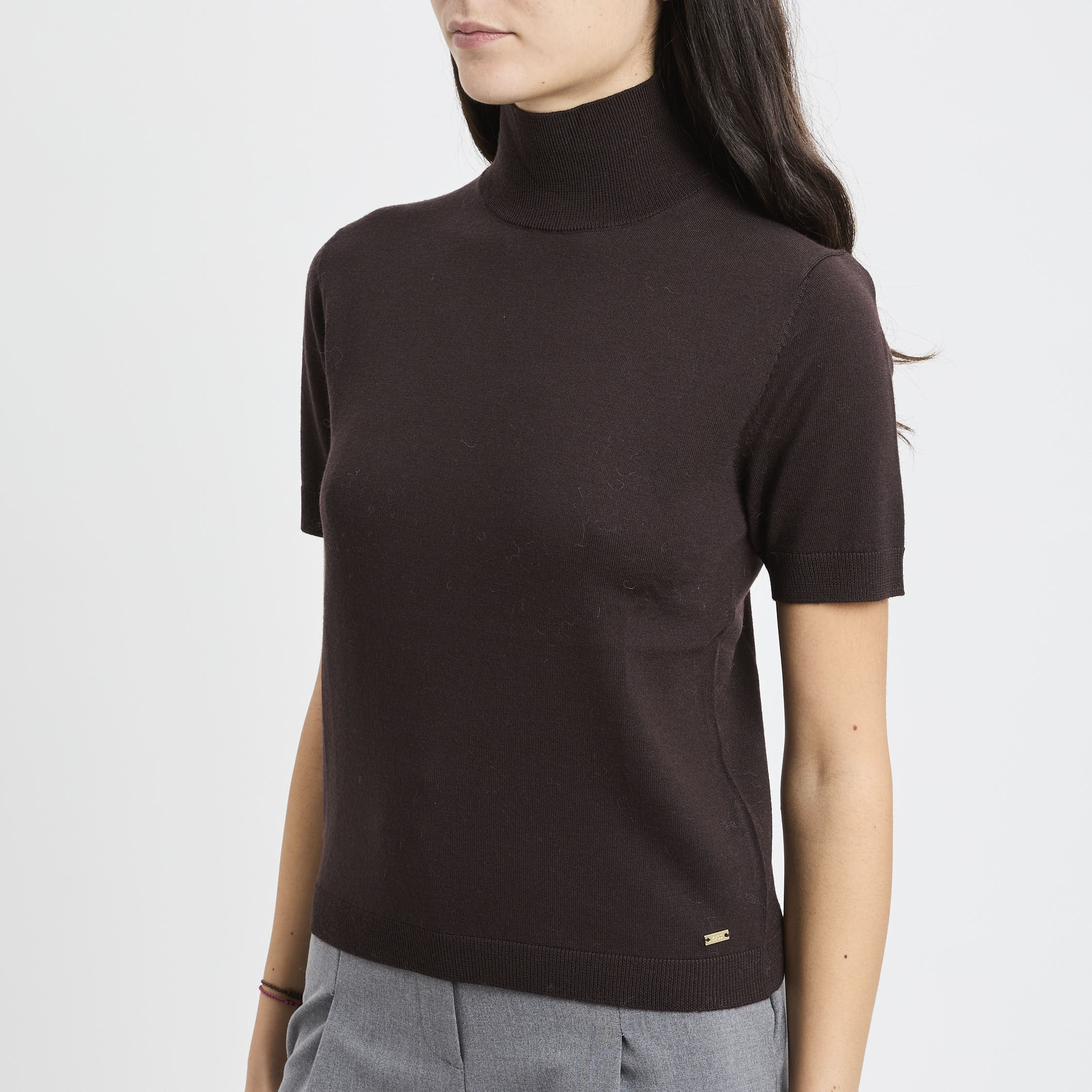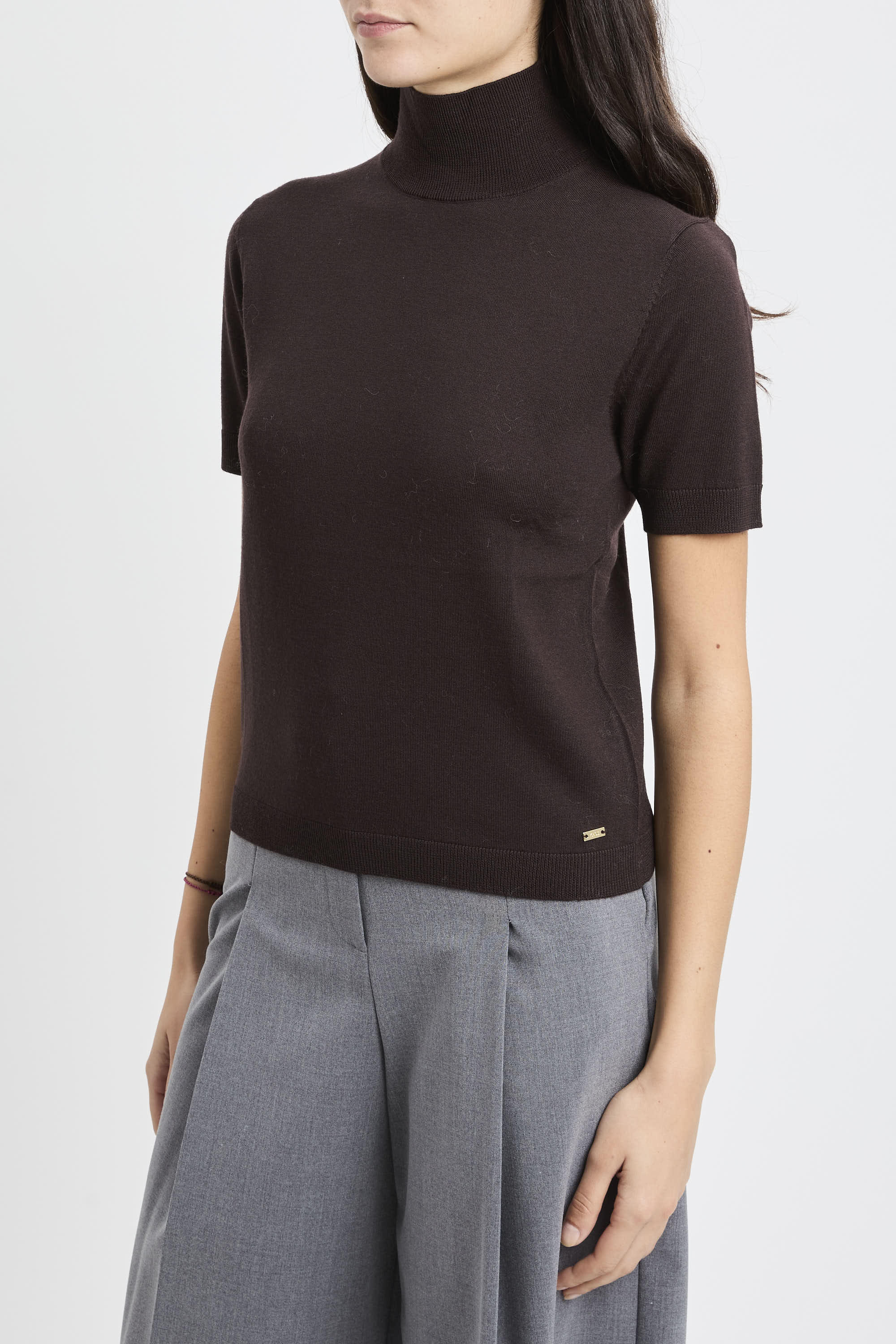 Un essenziale contemporaneo per il guardaroba autunnale: il dolcevita a manica corta Kaos in 100% lana sottile unisce pulizia delle linee e massima versatilità.