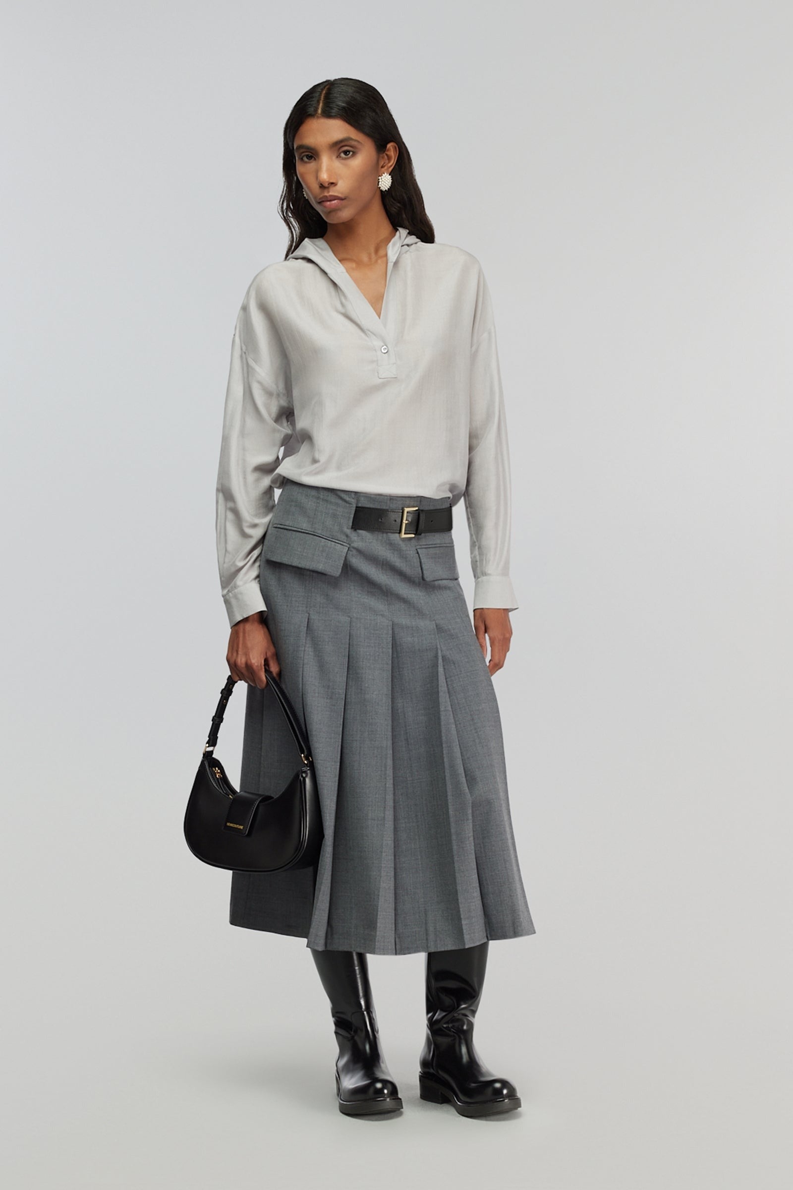 semicouture Gonna midi Semicouture Tracy in fresco di lana con pieghe